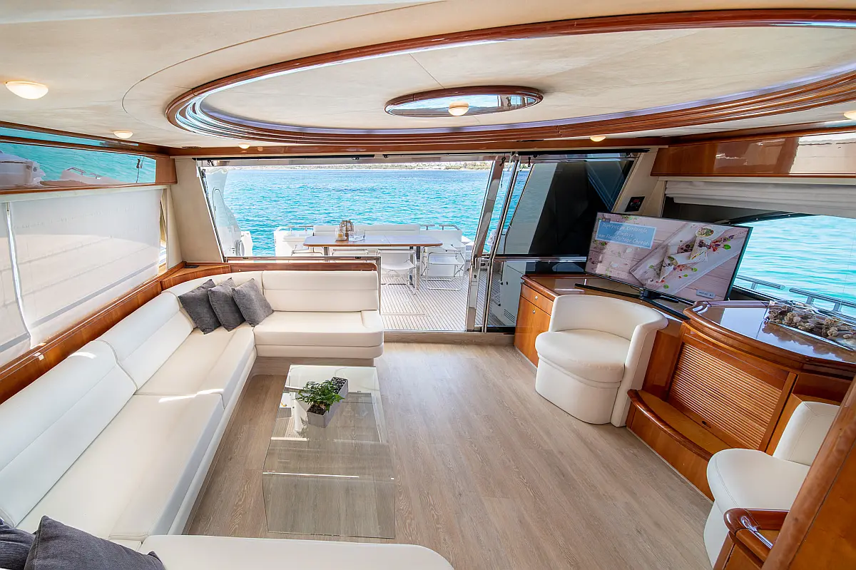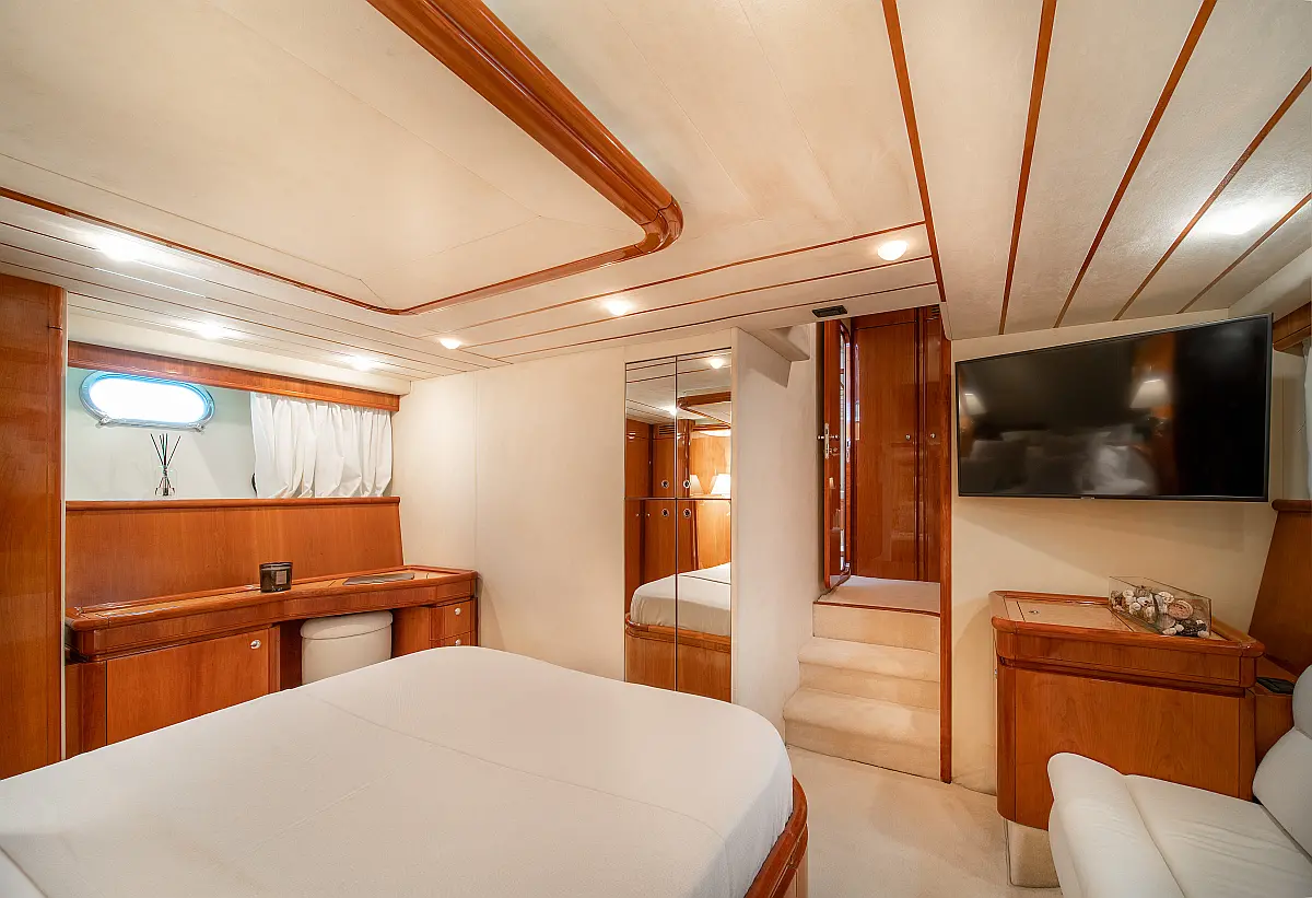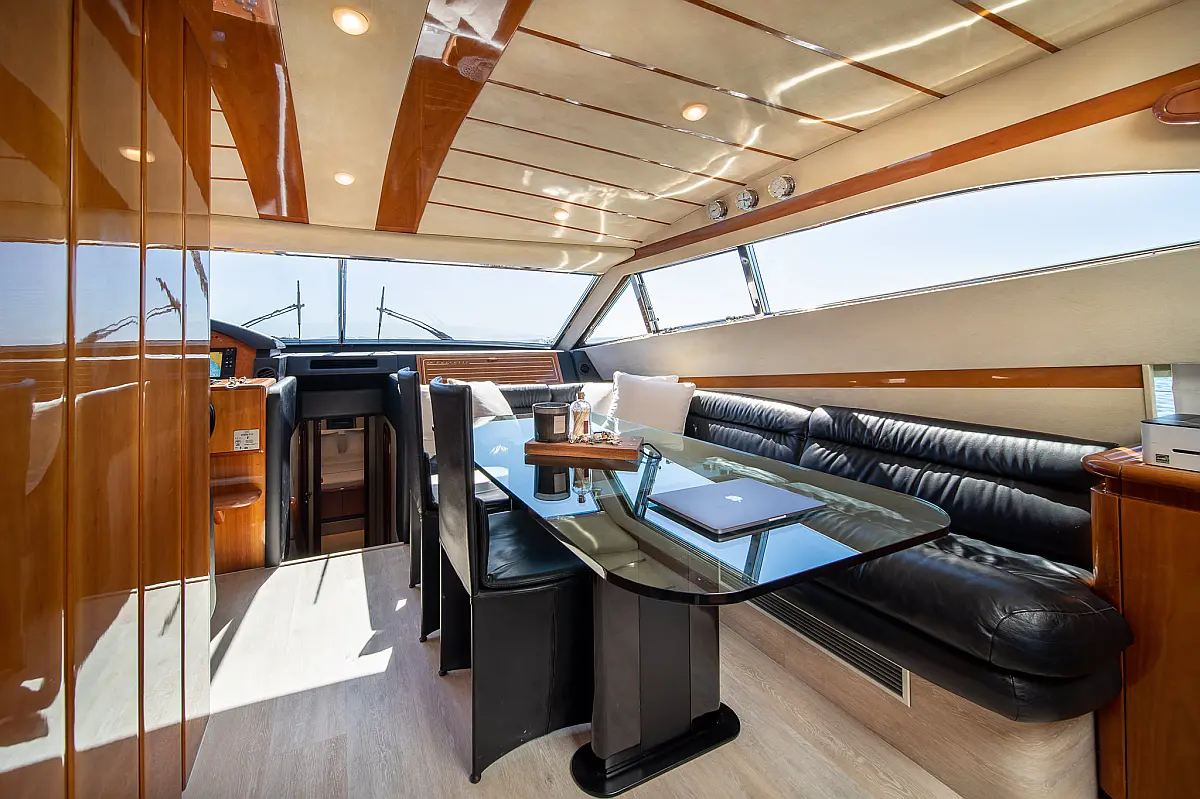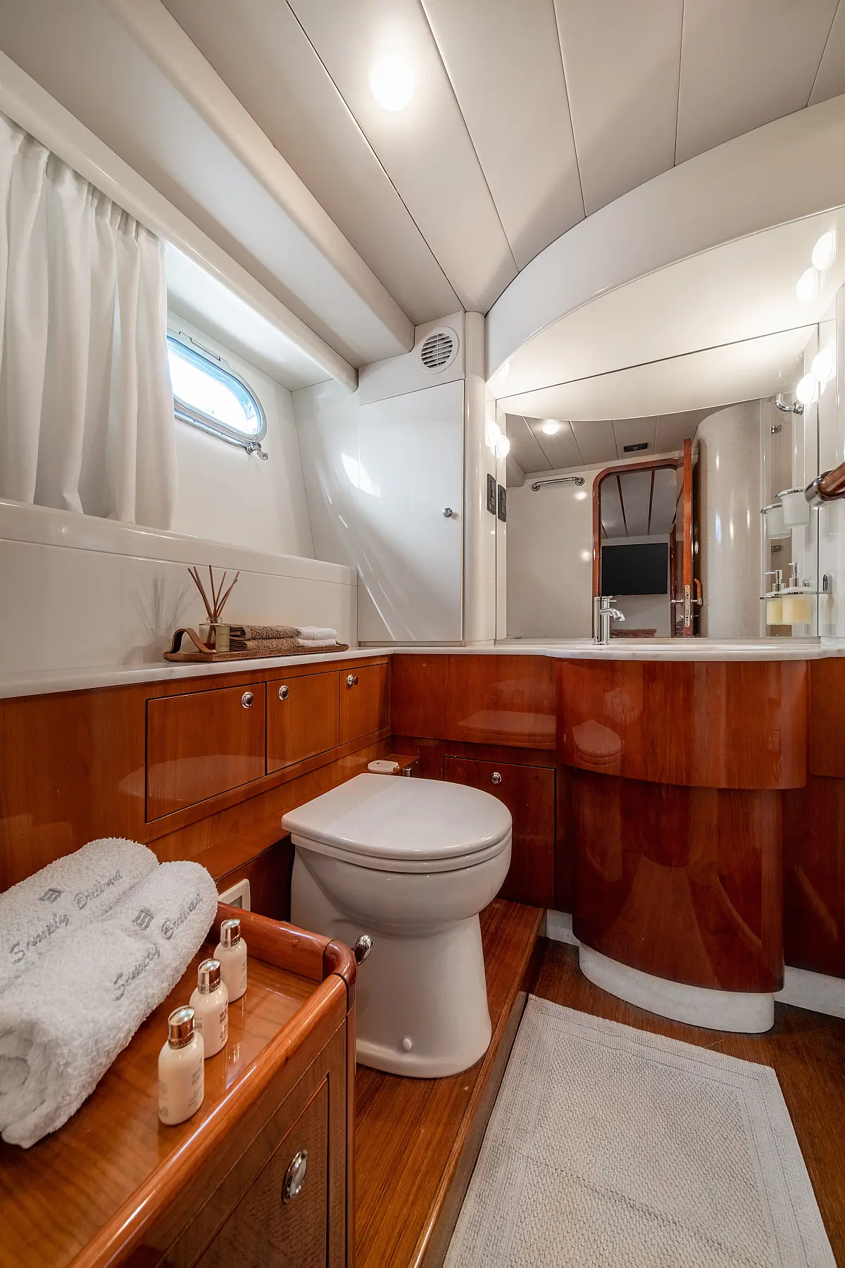 Ledomat, Desalinator, Klima, Gretje, sončni kolektorji, Teak paluba, Električni vitli, Inverter, Bimini, Generator, Hladilnik, Aparat za kavo