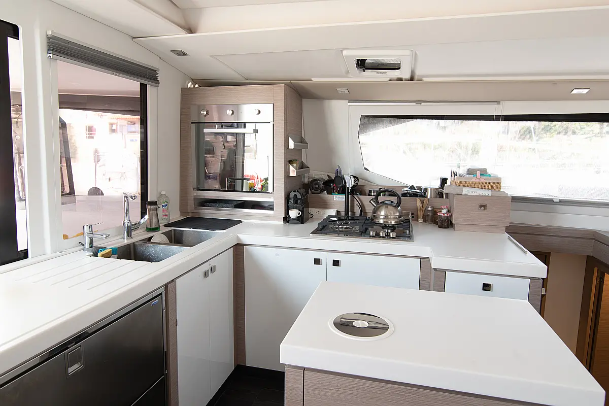 Zvočniki v kokpitu, Žar v kokpitu, Kopalna ploščad, Teak paluba, Blazine v kokpitu, Bimini, Ledomat, Aparat za kavo, Hladilnik, Generator, Inverter, Desalinator, Električni vitli, sončni kolektorji, Klima