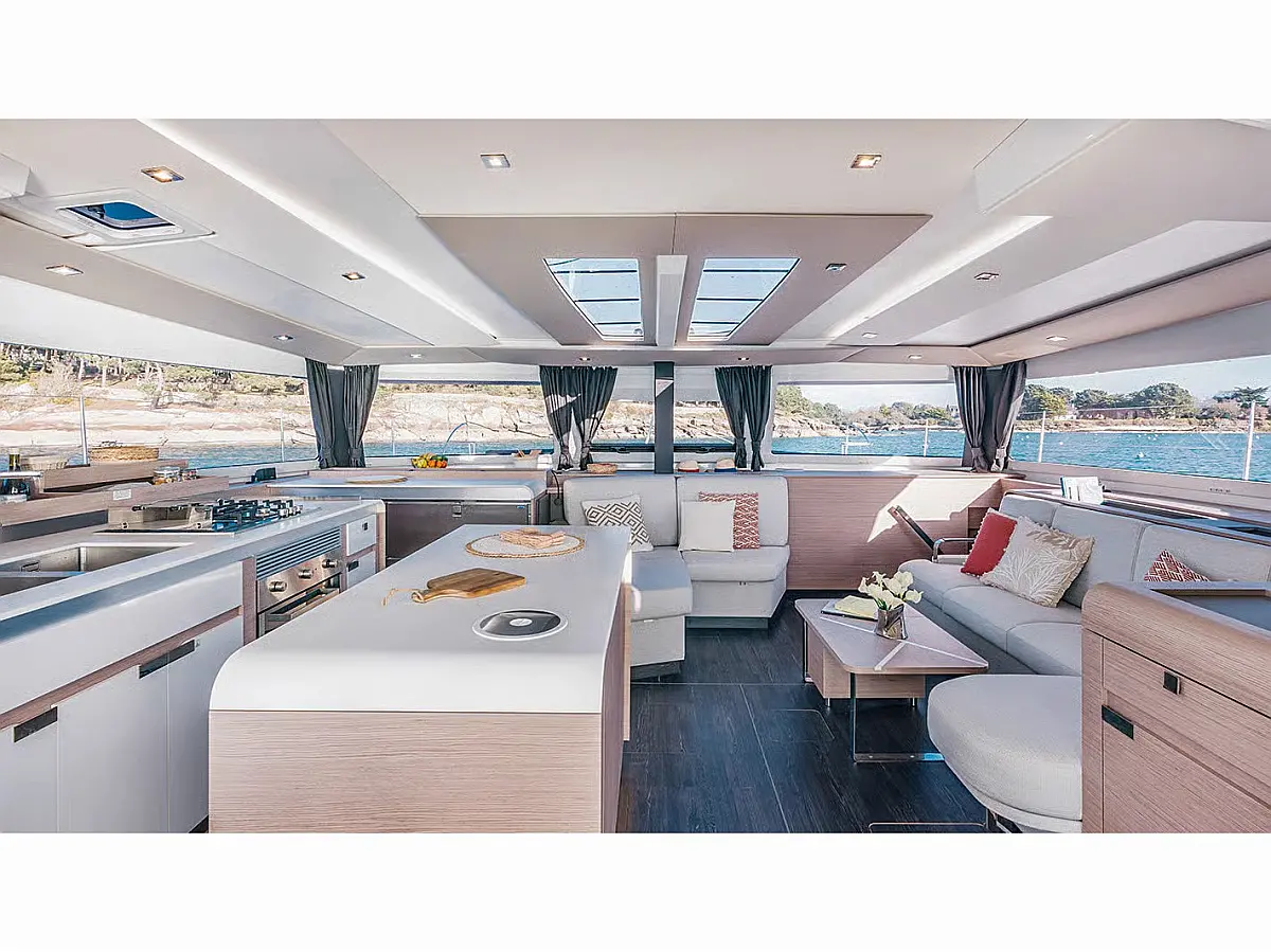 Klima, Generator, Inverter, Desalinator, sončni kolektorji, Bimini, Blazine v kokpitu, Pomožni čoln, Hladilnik, Izvenkrmni motor, Sprayhood, Električni vitli, Aparat za kavo