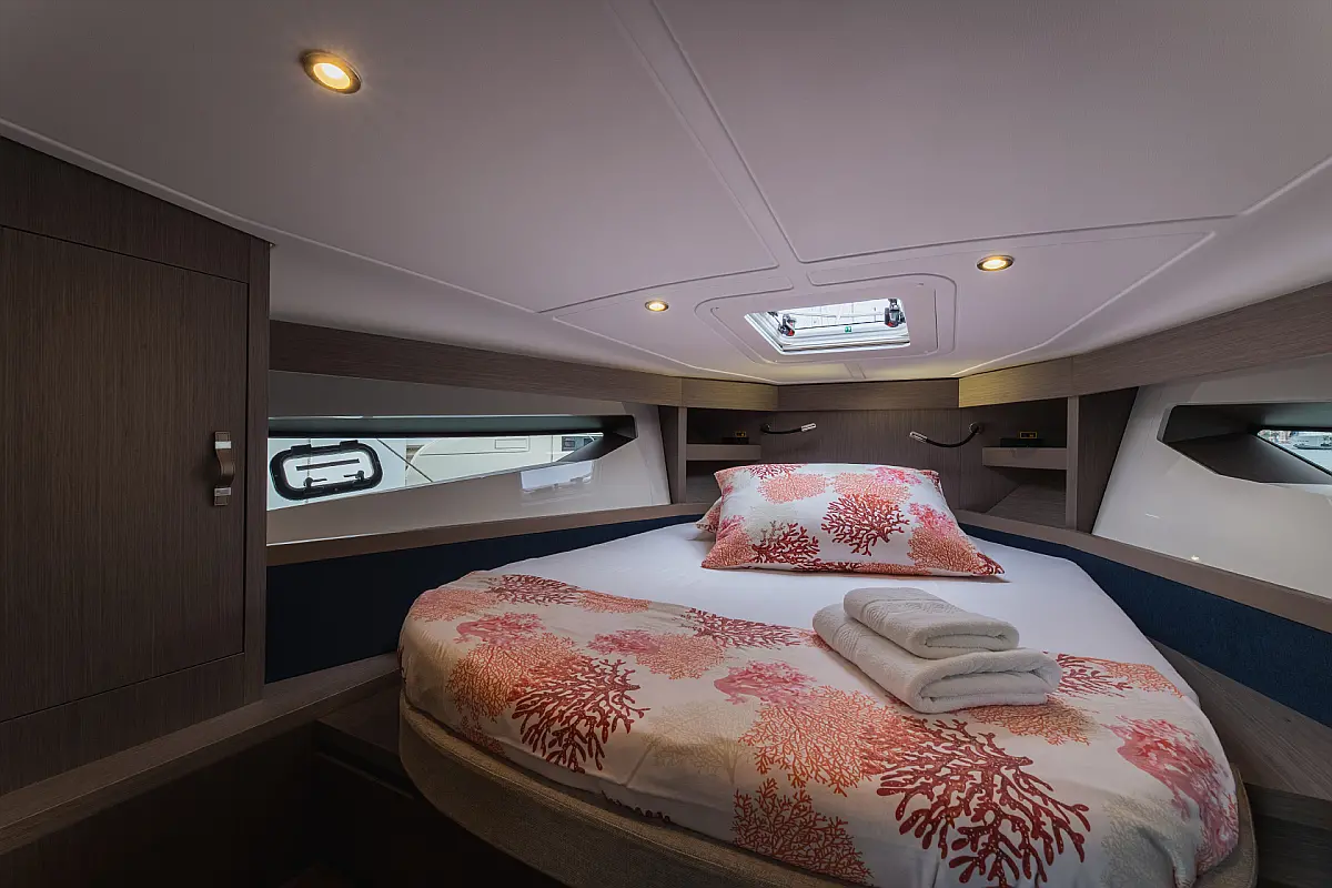 12.55 m dolga Motorni čoln Gran Turismo 41, izdelana leta 2023, je idealna jahta za raziskovanje Hrvaška. S 2 udobnimi kabinami, 1 WC/Tuš in dovolj ležišč za do 6 (4+2) gostov zagotavlja dovolj prostora za sprostitev in zabavo. Ta jahta je na voljo za najem.