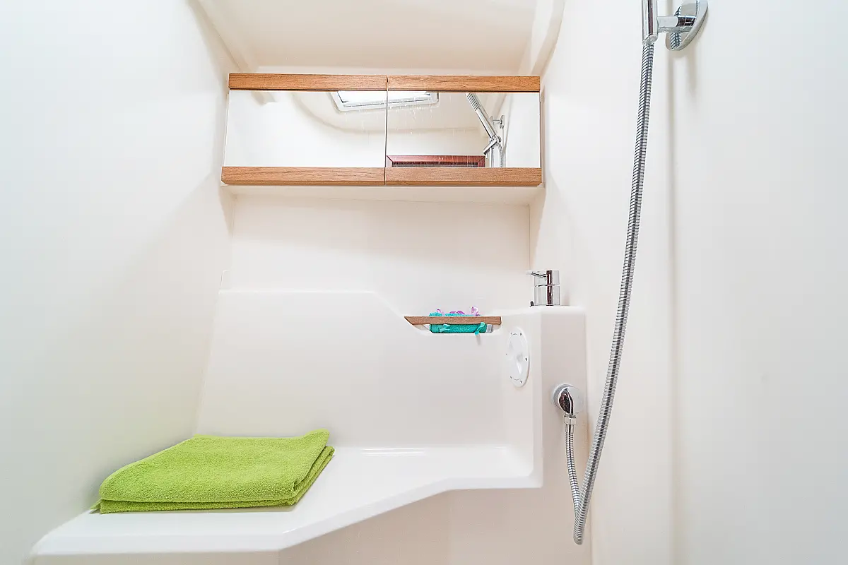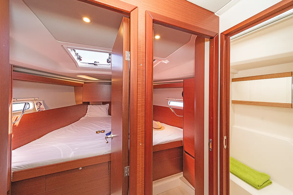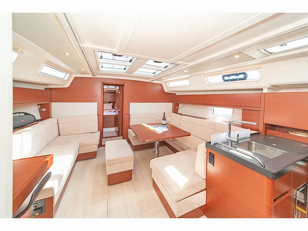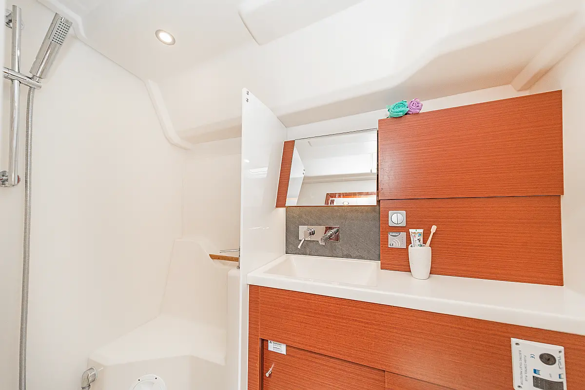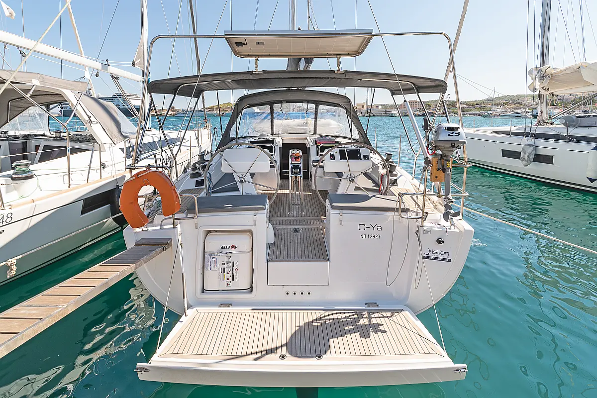 Sprayhood, Bimini, Pomožni čoln, Električni wc, Hladilnik, Blazine v kokpitu, sončni kolektorji, Zvočniki v kokpitu