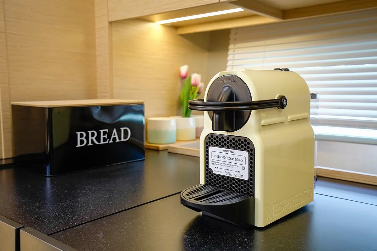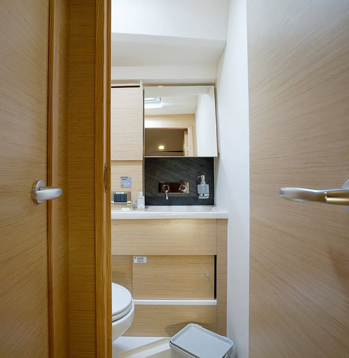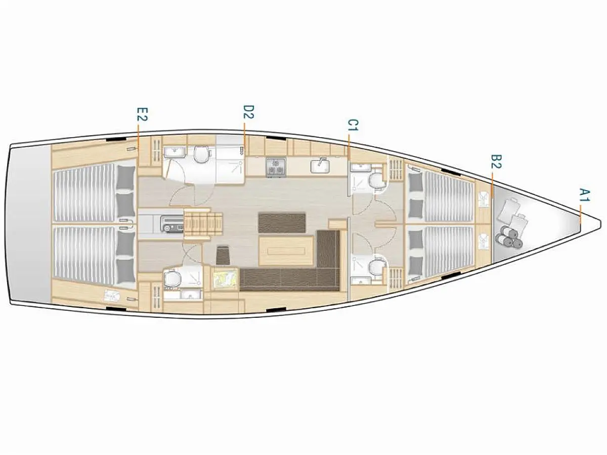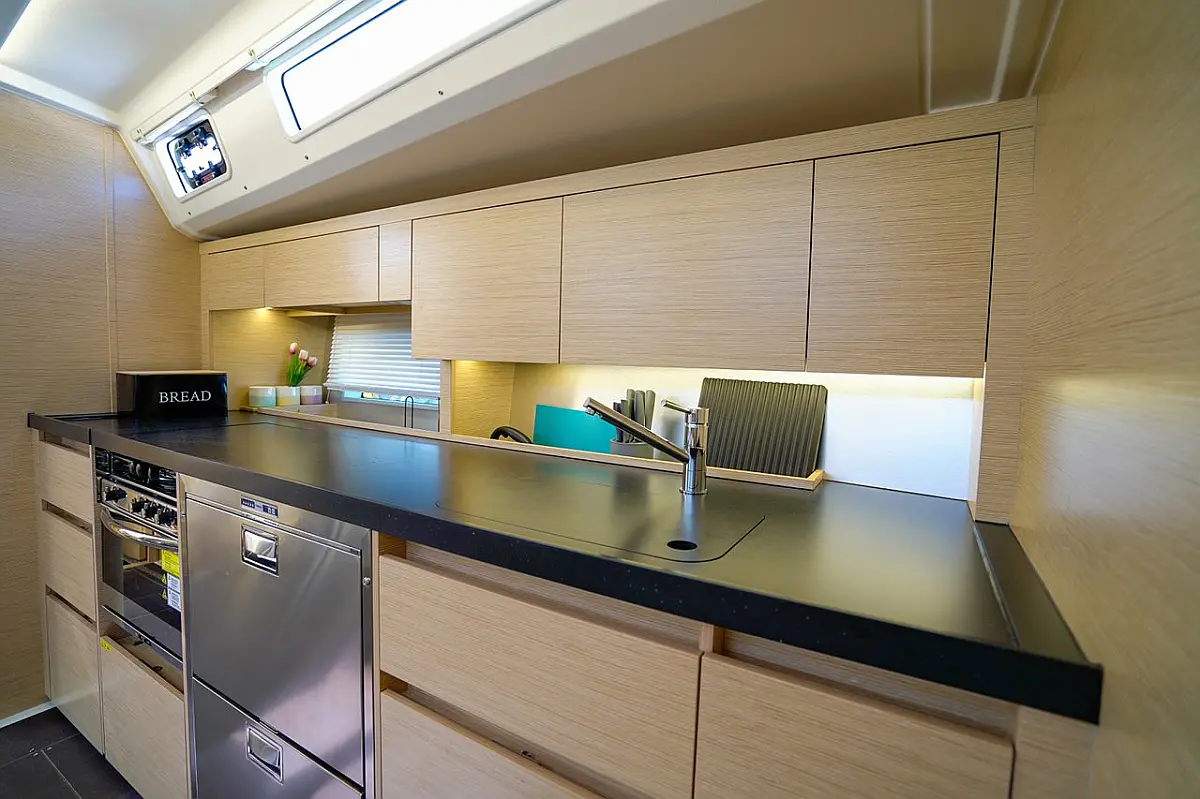 Žar v kokpitu, Blazine v kokpitu, Bimini, Pomožni čoln, Sprayhood, Wi-Fi in internet, Hladilnik, Aparat za kavo, Električni wc, Klima, Generator, Inverter, Gretje