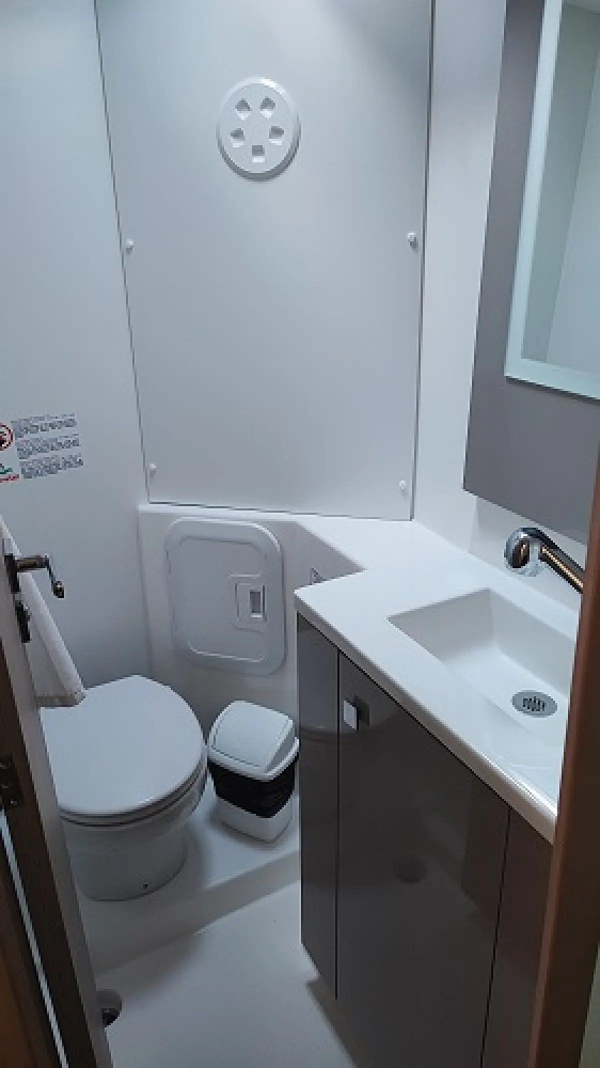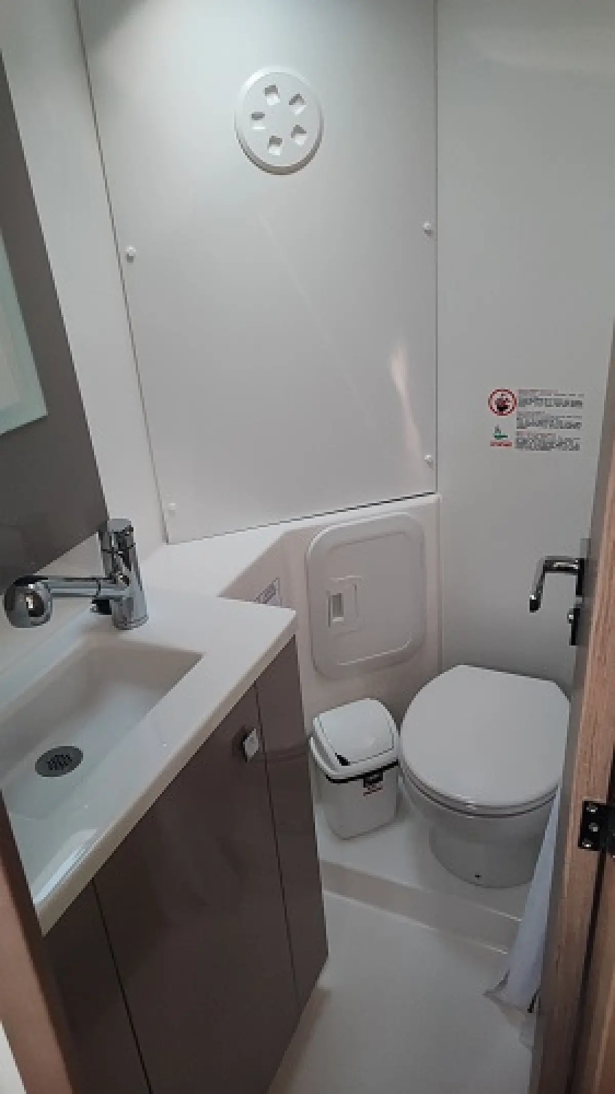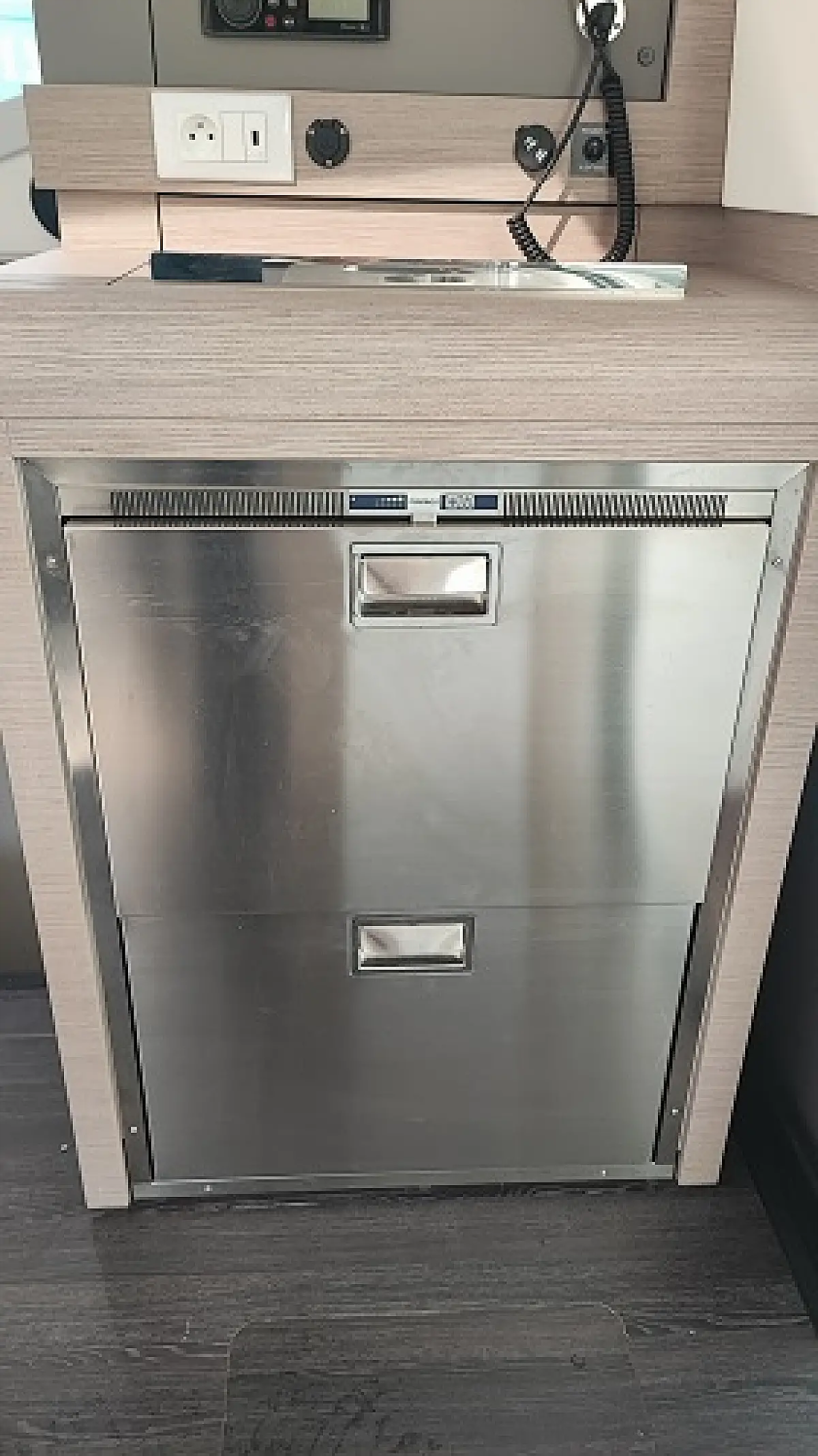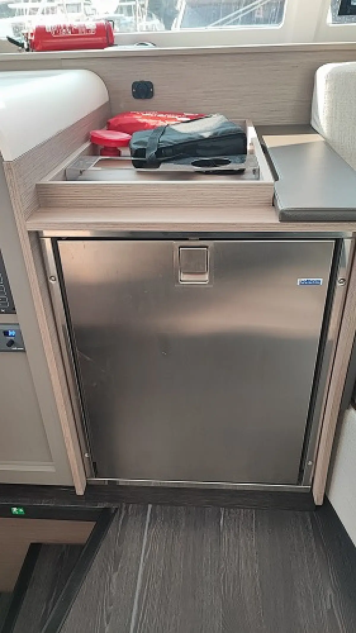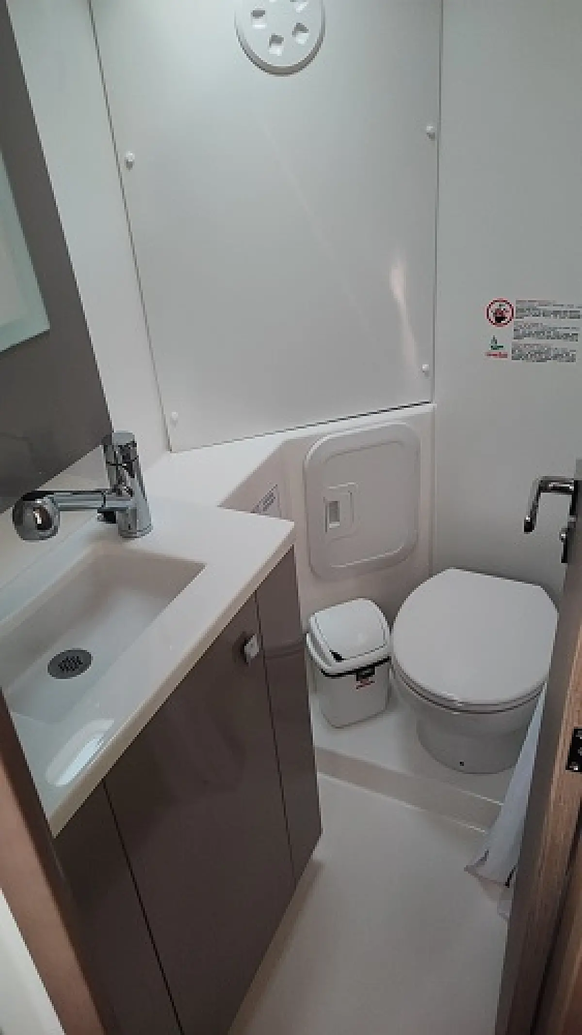Klima, Hladilnik, Bimini, Blazine v kokpitu, Električni wc, Generator, sončni kolektorji, Inverter, Pomožni čoln, Izvenkrmni motor