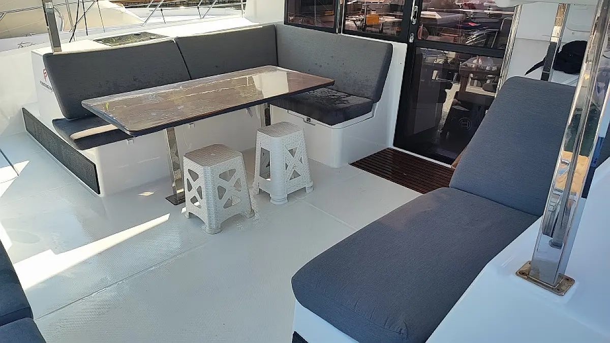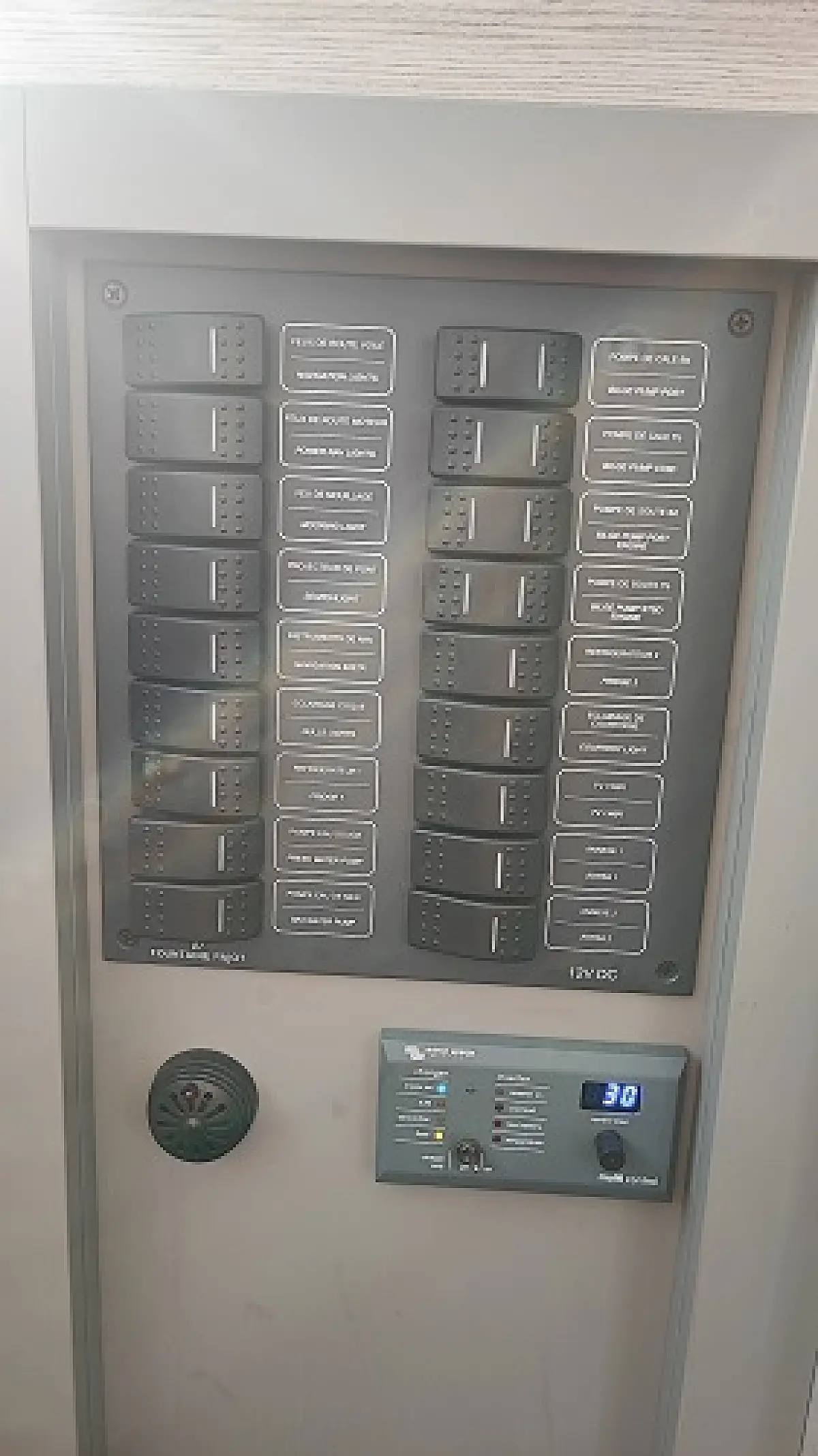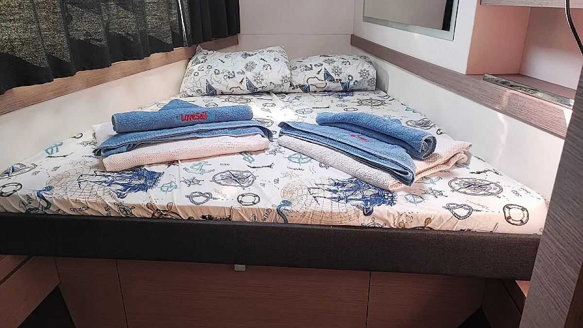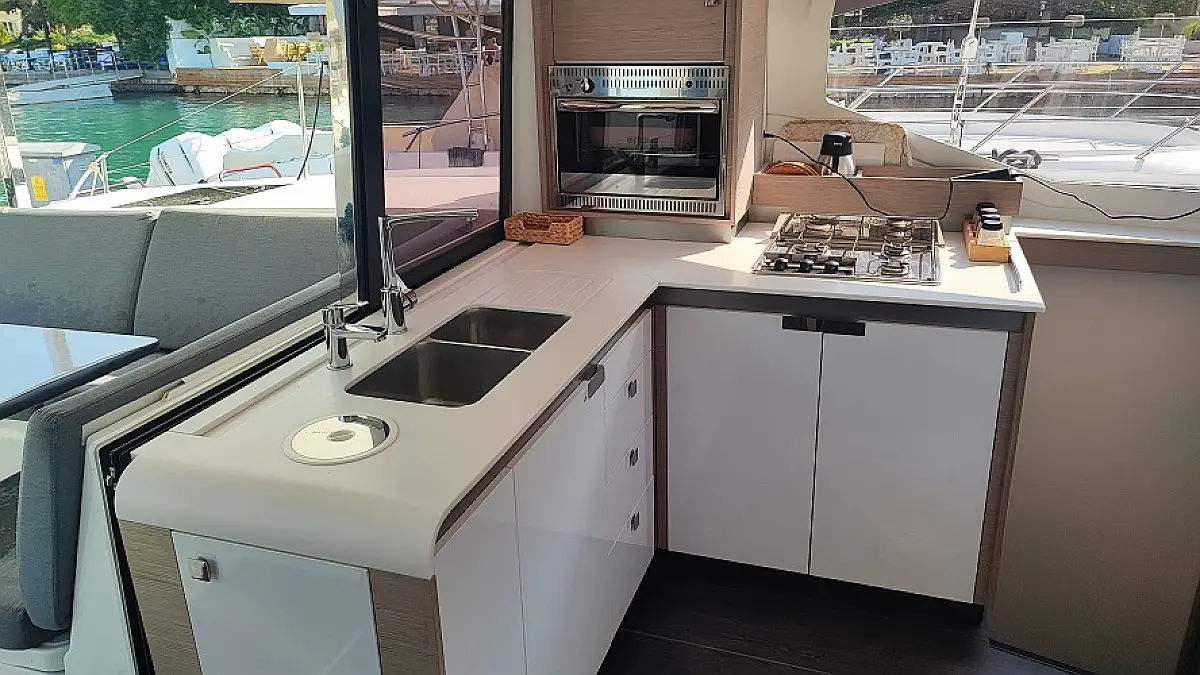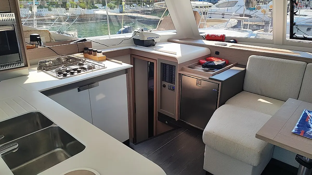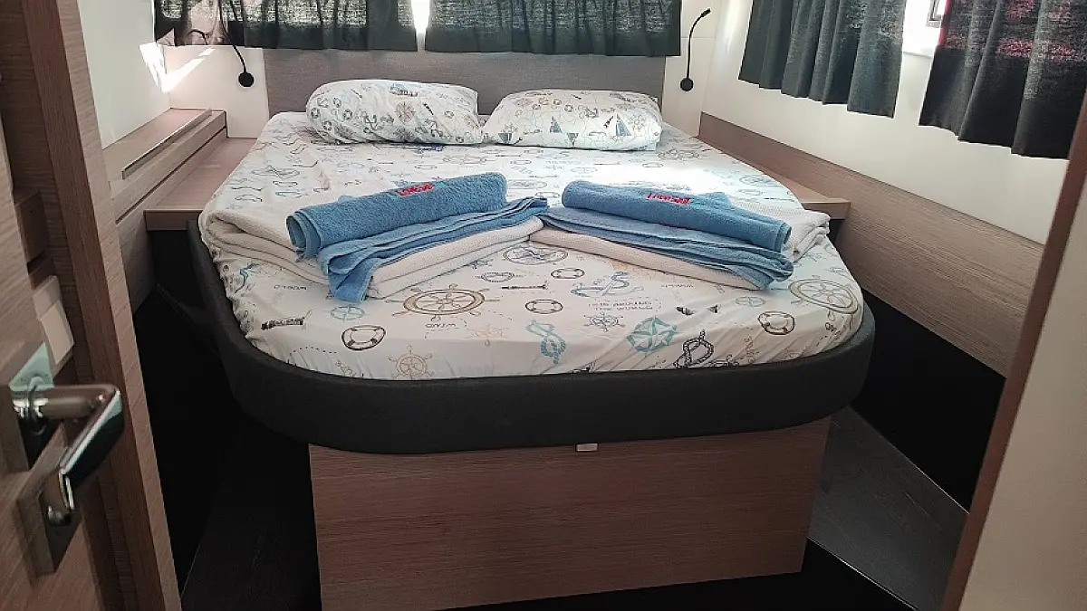 Klima, Hladilnik, Bimini, Blazine v kokpitu, Električni wc, Generator, sončni kolektorji, Inverter, Pomožni čoln, Izvenkrmni motor
