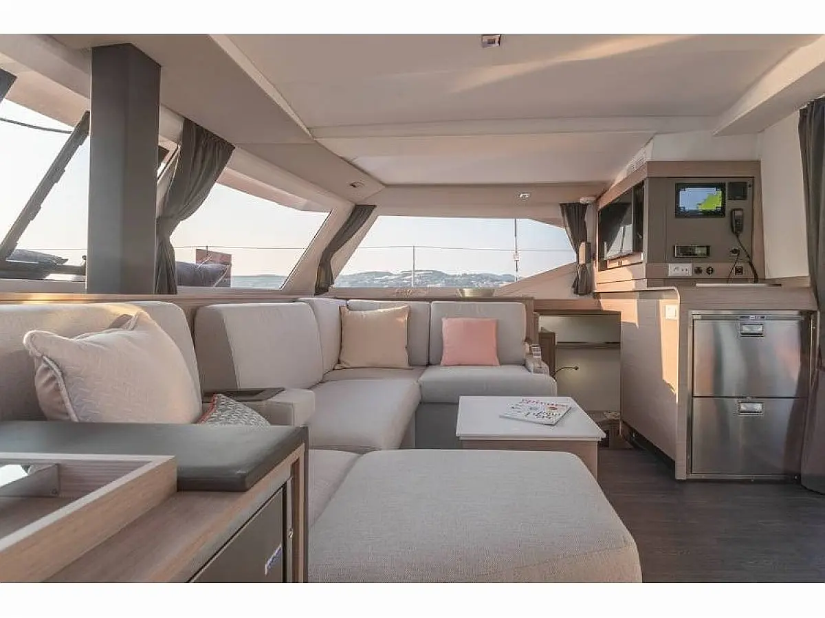 Električni vitli, Inverter, Pomožni čoln, Hladilnik, sončni kolektorji, Električni wc, Izvenkrmni motor, Zvočniki v kokpitu, Desalinator