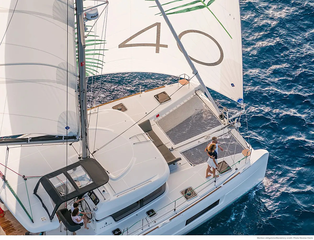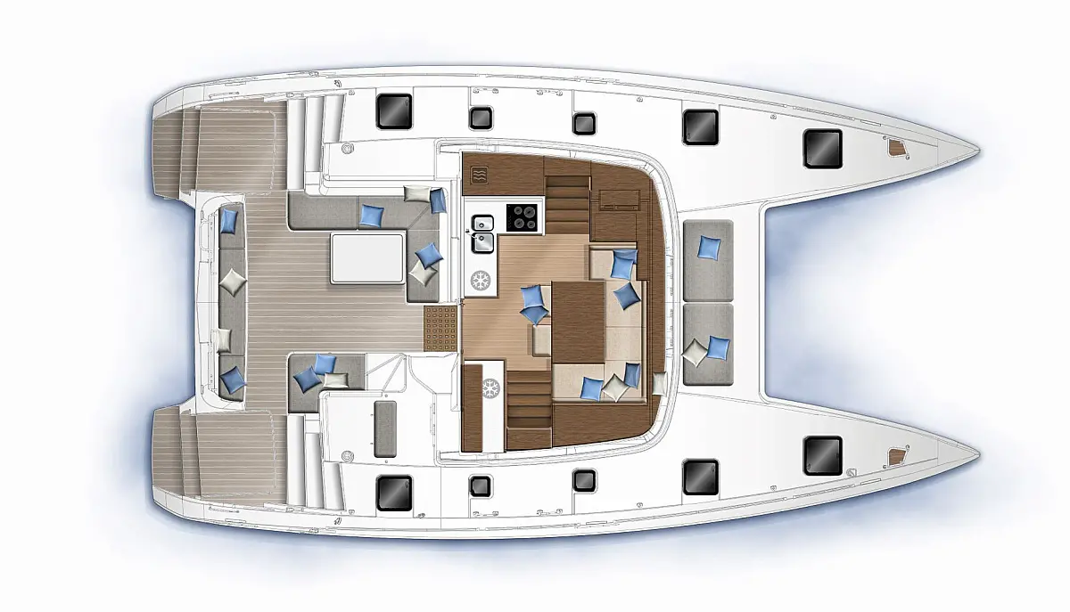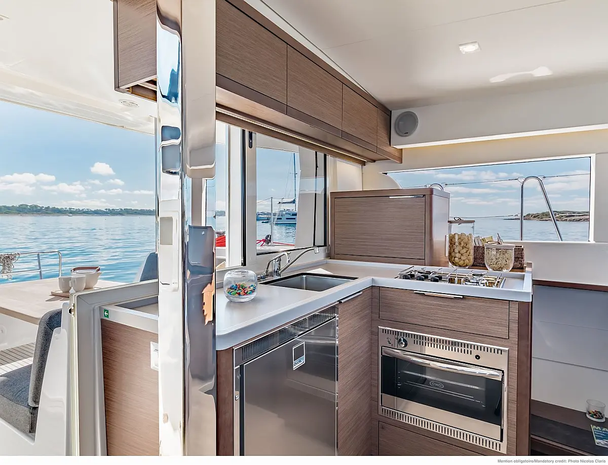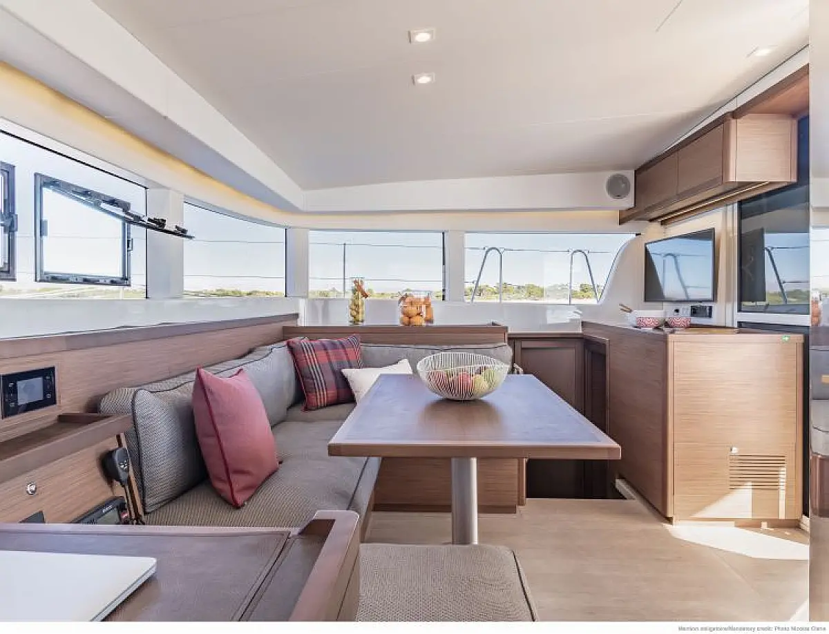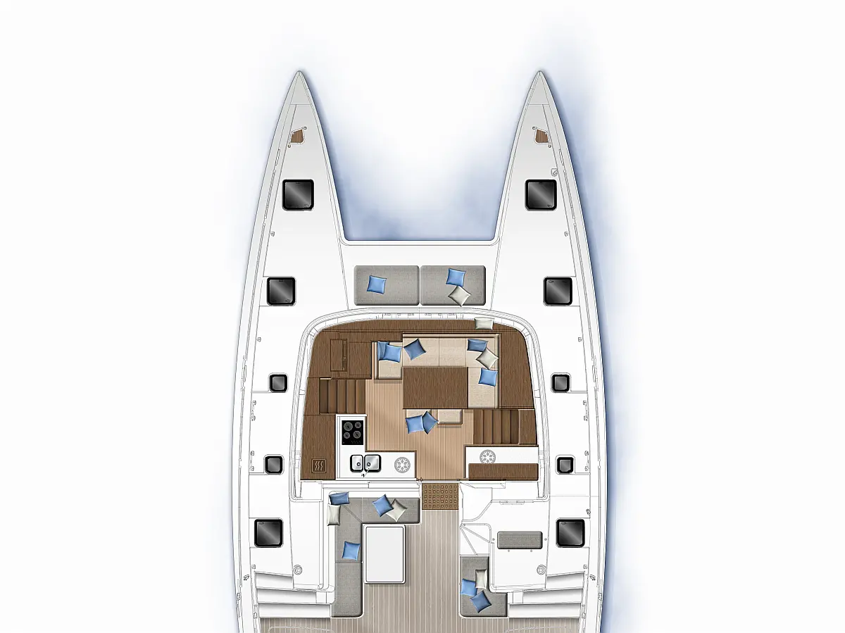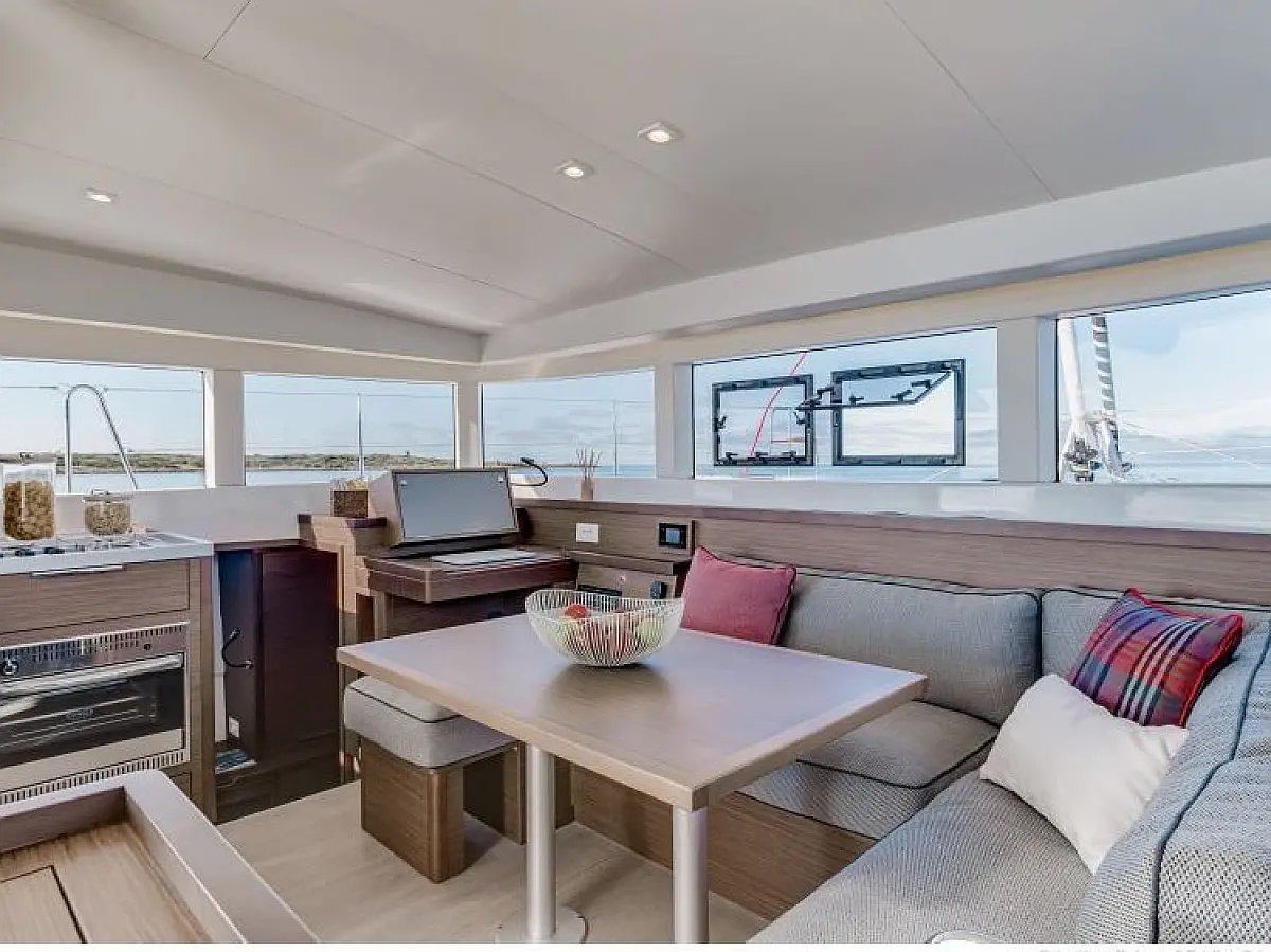 Inverter, Pomožni čoln, sončni kolektorji, Desalinator, Hladilnik, teak kokpit, Električni wc, Električni vitli