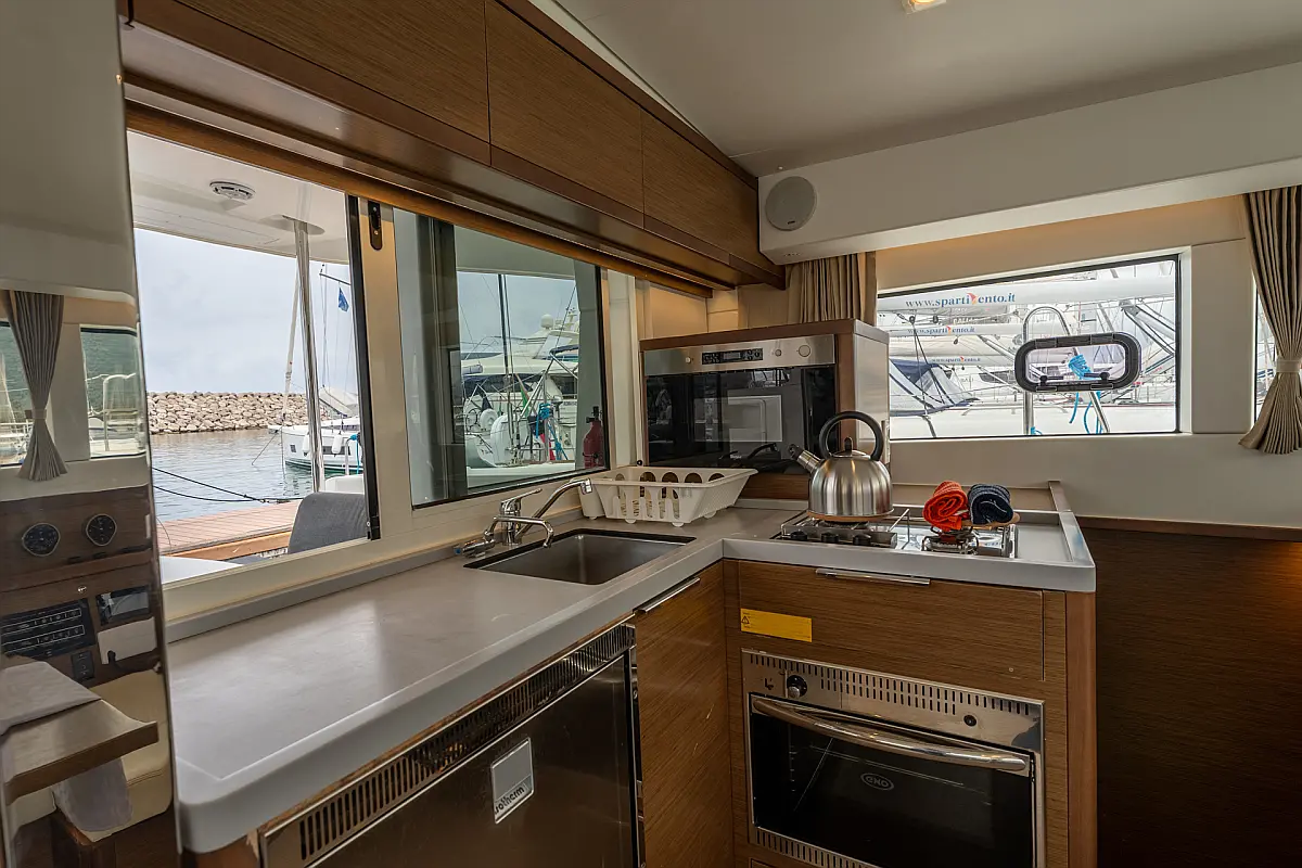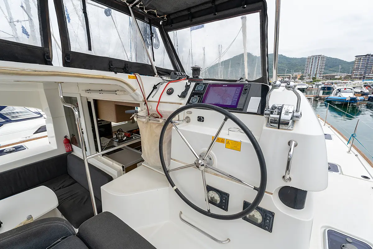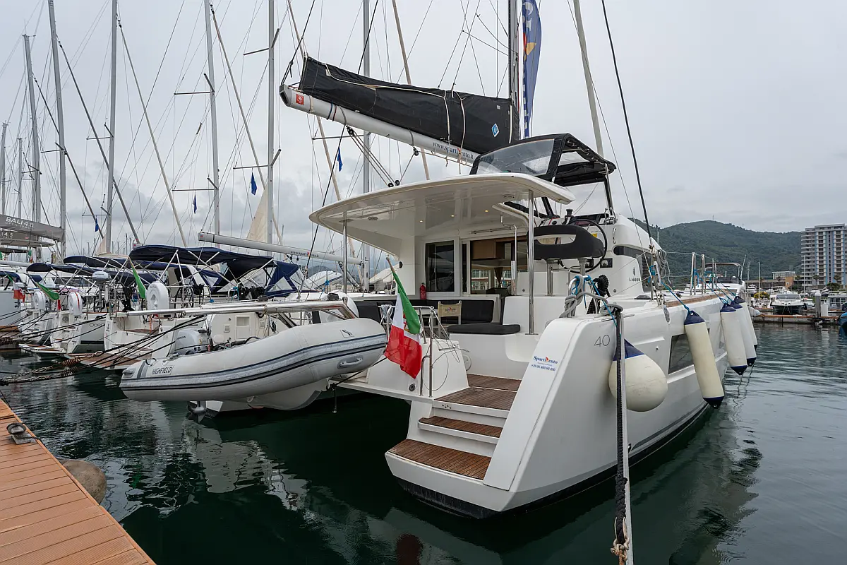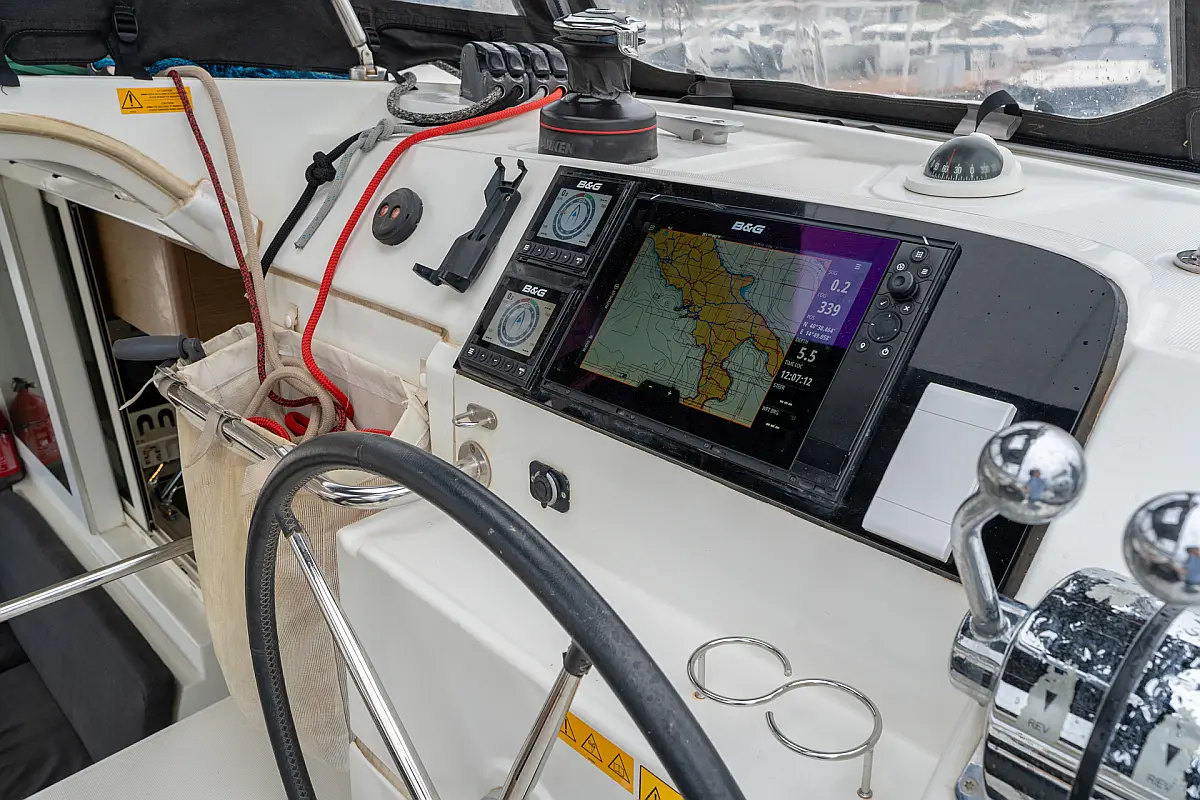 Pomožni čoln, Izvenkrmni motor, teak kokpit, Blazine v kokpitu, Električni vitli, Inverter, Aparat za kavo, Električni wc, Hladilnik