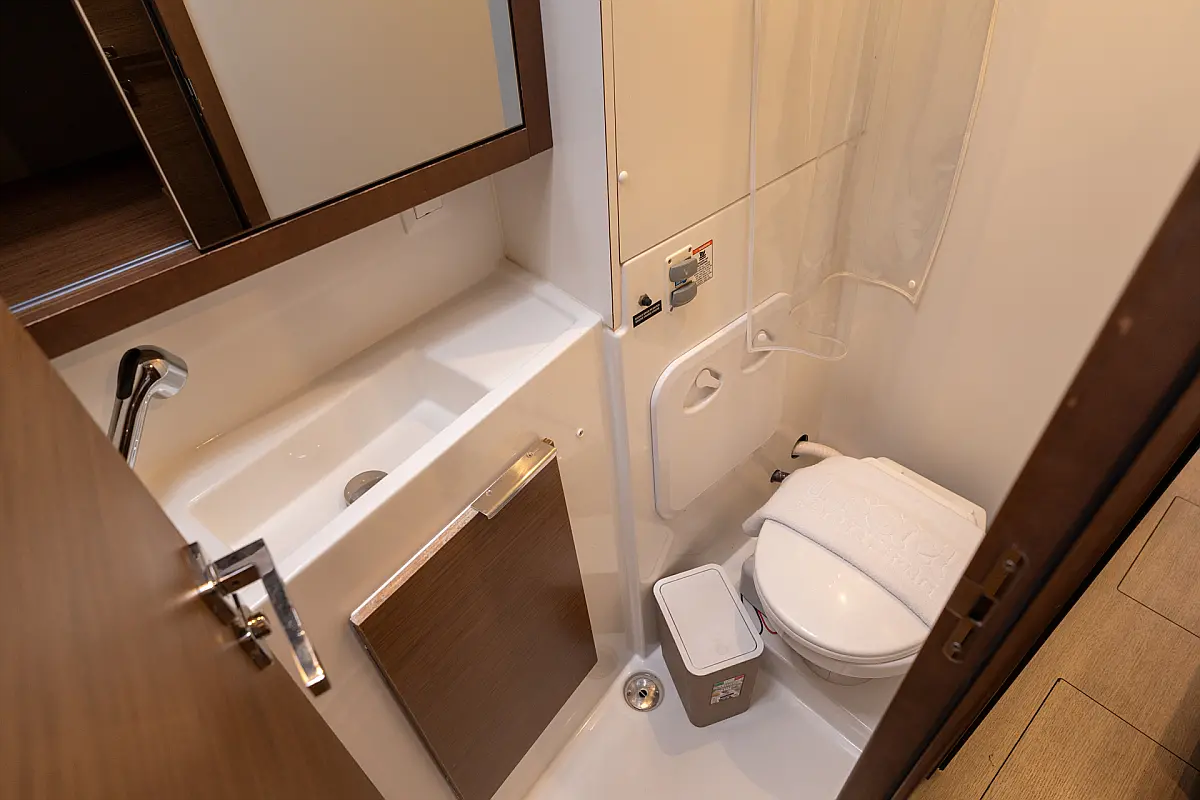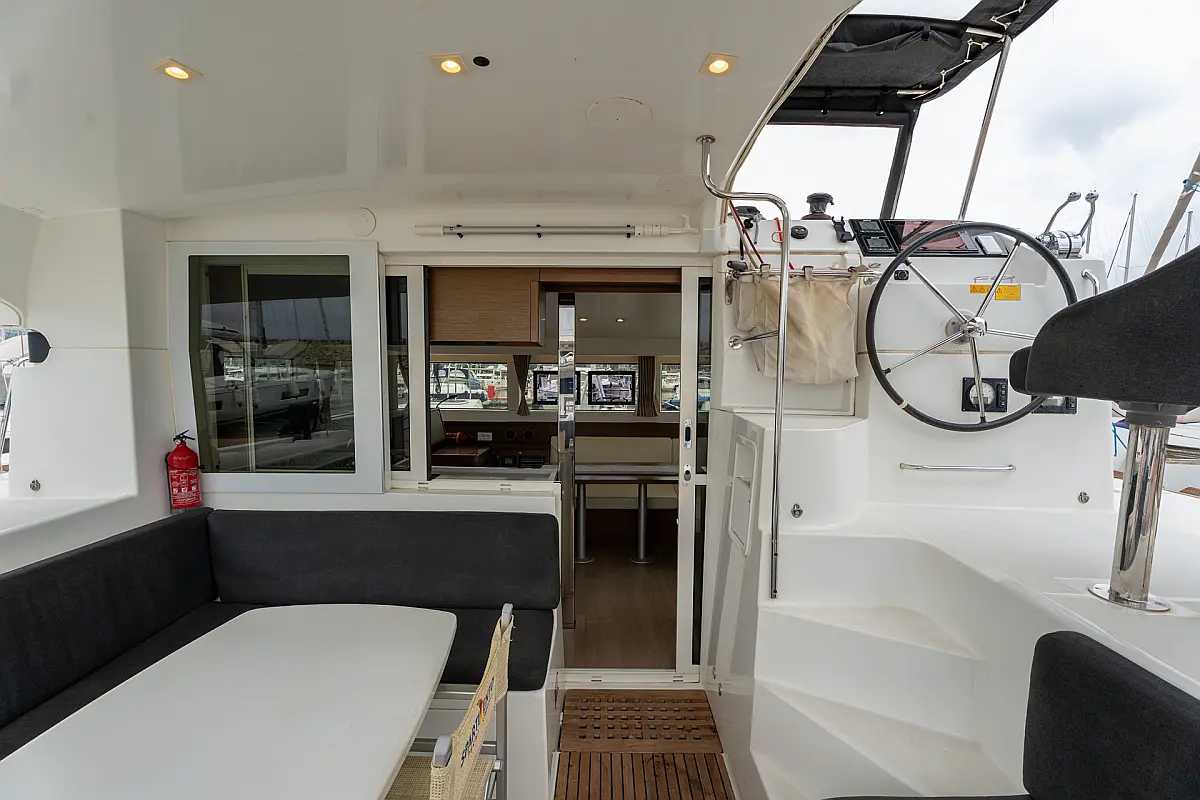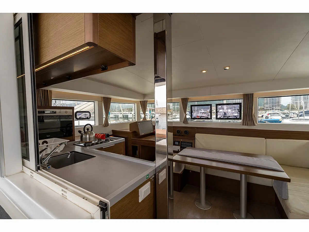Pomožni čoln, Izvenkrmni motor, teak kokpit, Blazine v kokpitu, Električni vitli, Inverter, Aparat za kavo, Električni wc, Hladilnik