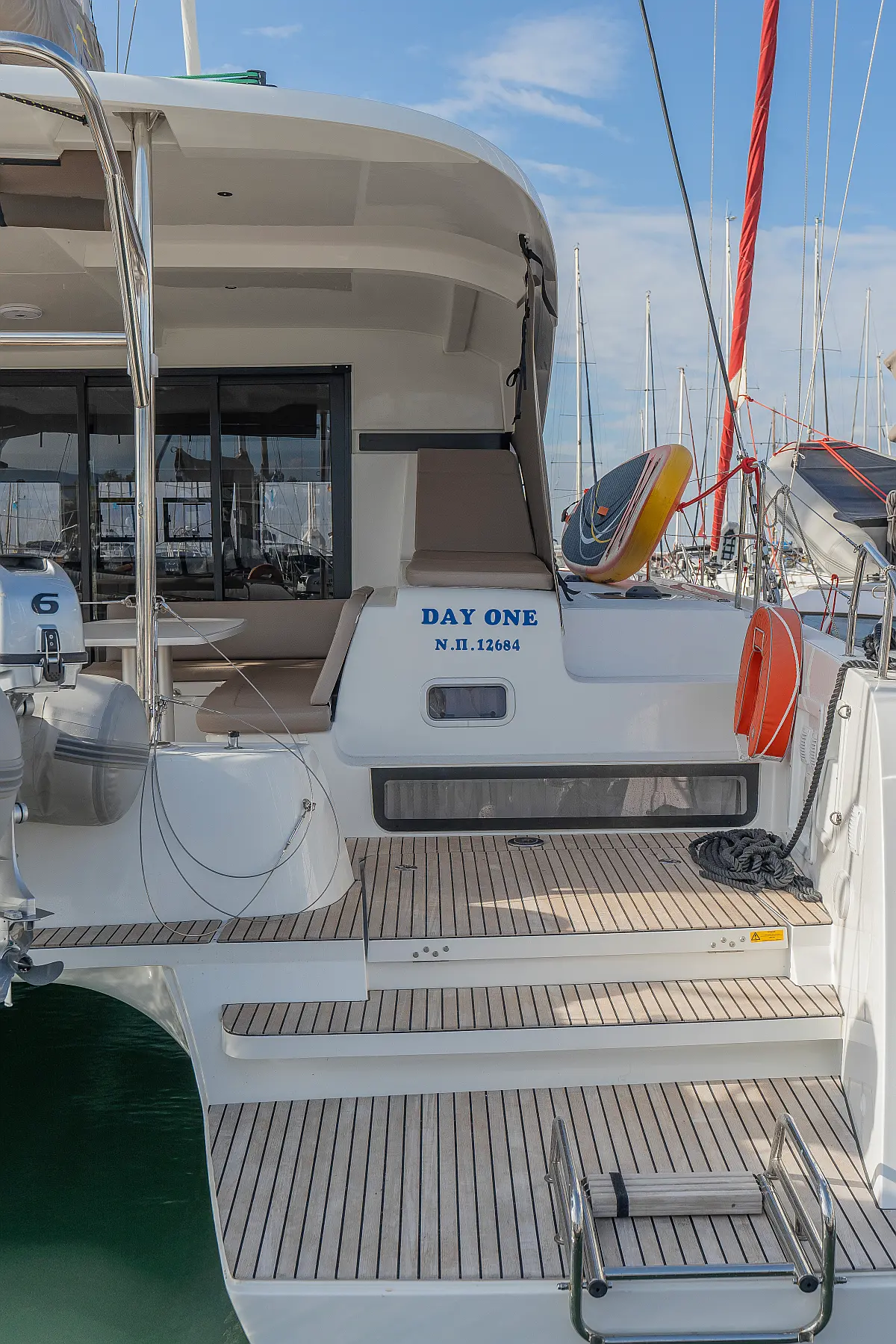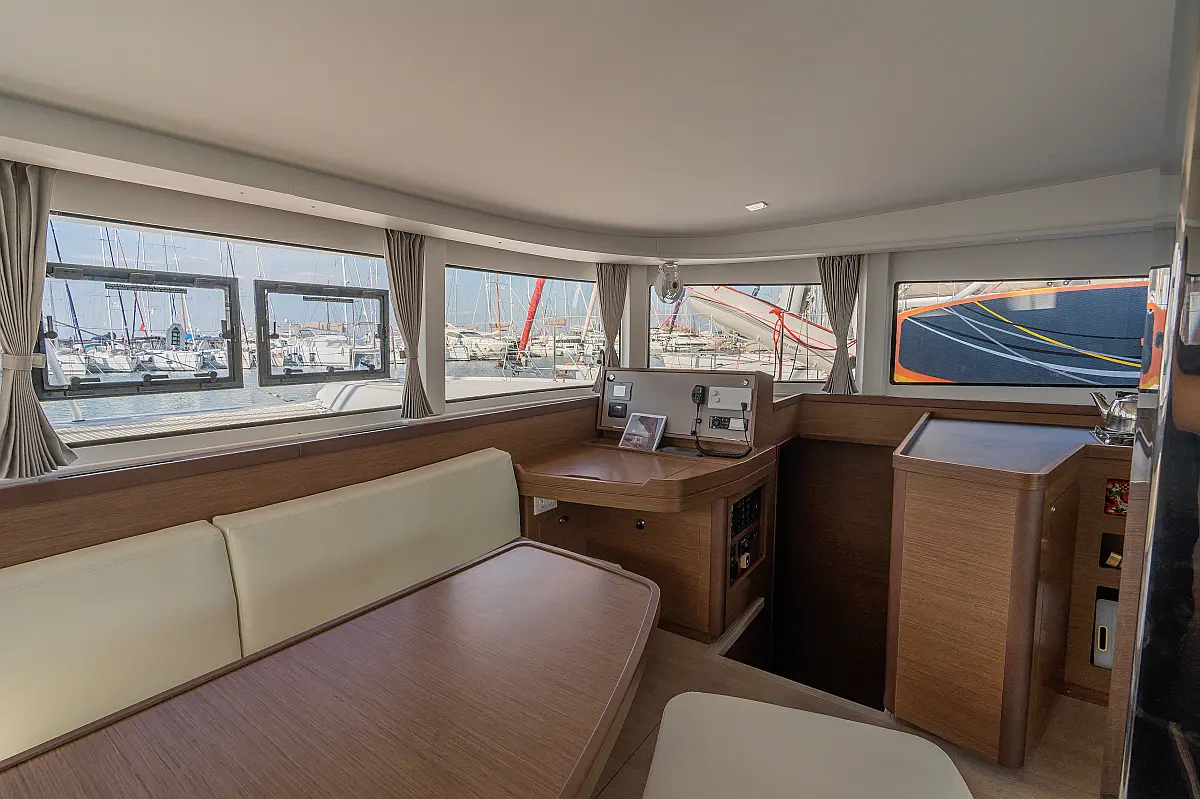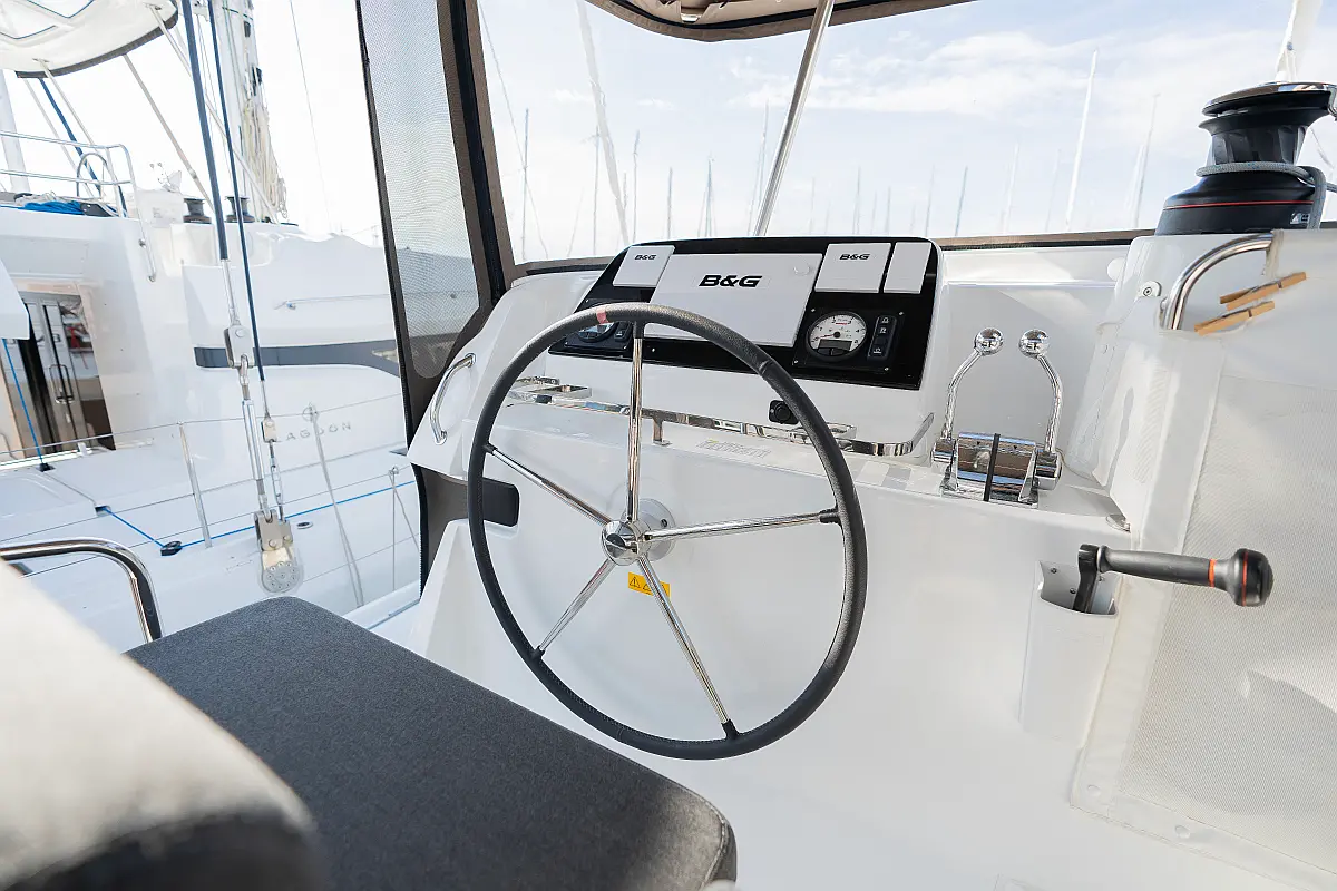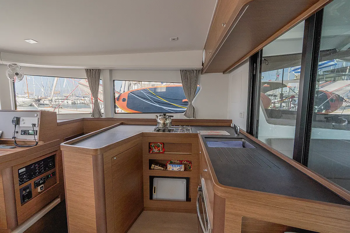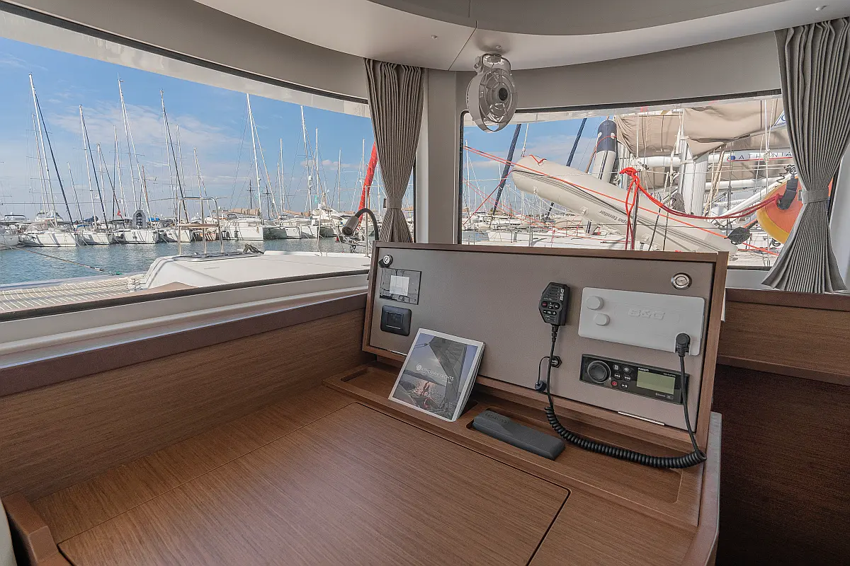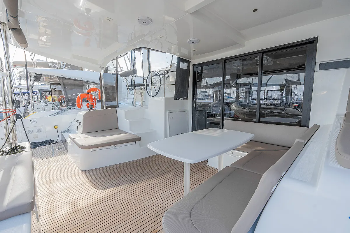 Pomožni čoln, Izvenkrmni motor, Bimini, Blazine v kokpitu, teak kokpit, Klima, Preoblikovalna miza, Hladilnik, Generator, Hidravlična pasarela, Desalinator