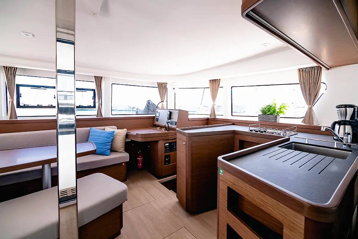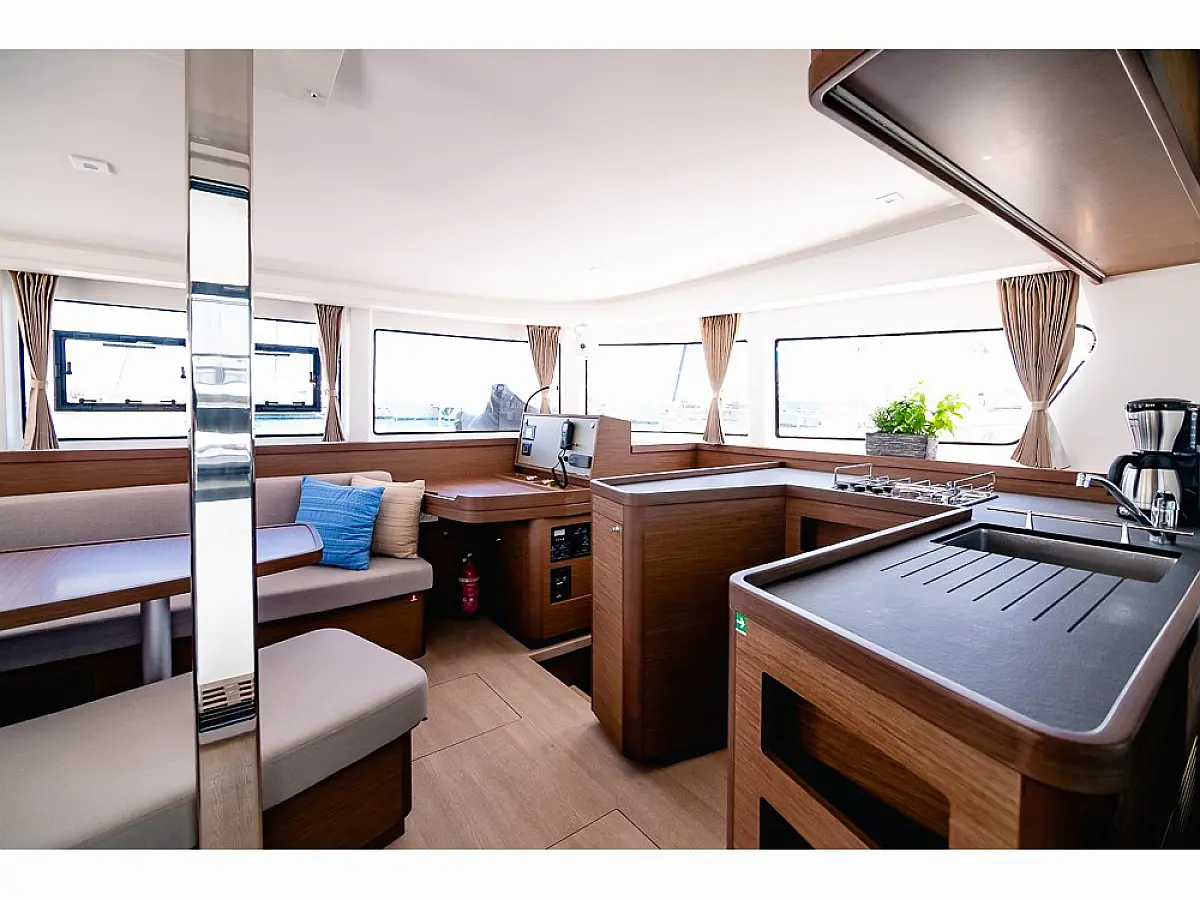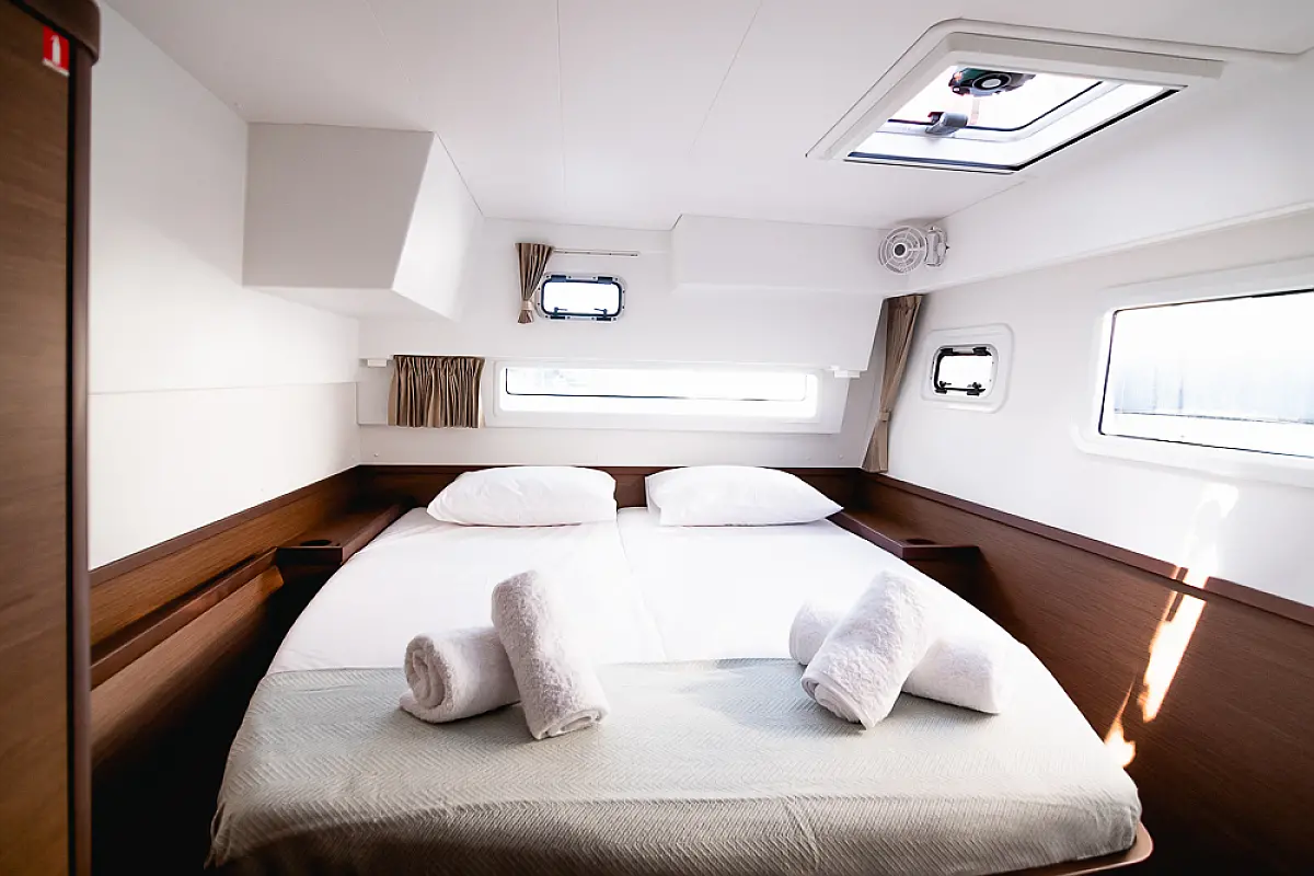 Klima, Bimini, Električni wc, Generator, Inverter, sončni kolektorji, Sprayhood, Električni vitli, Blazine v kokpitu, Aparat za kavo, Pomožni čoln, Izvenkrmni motor