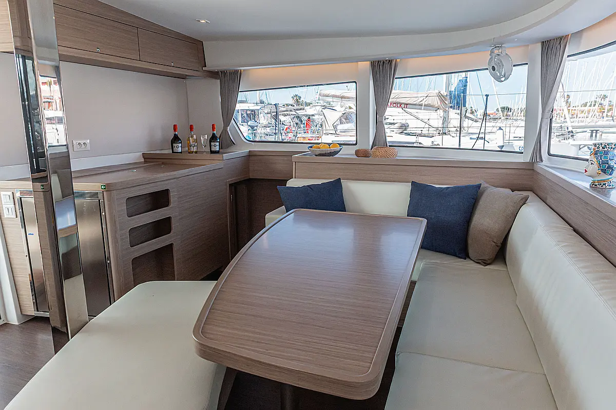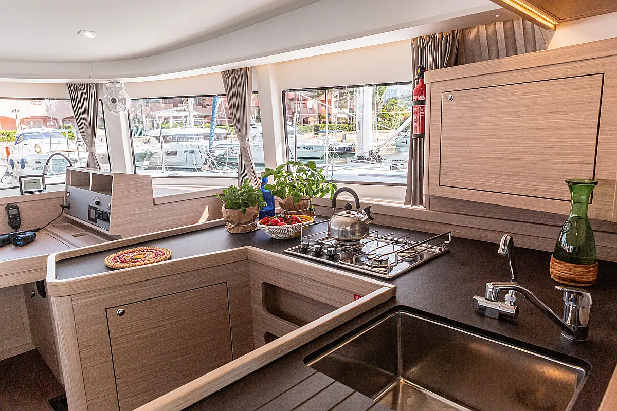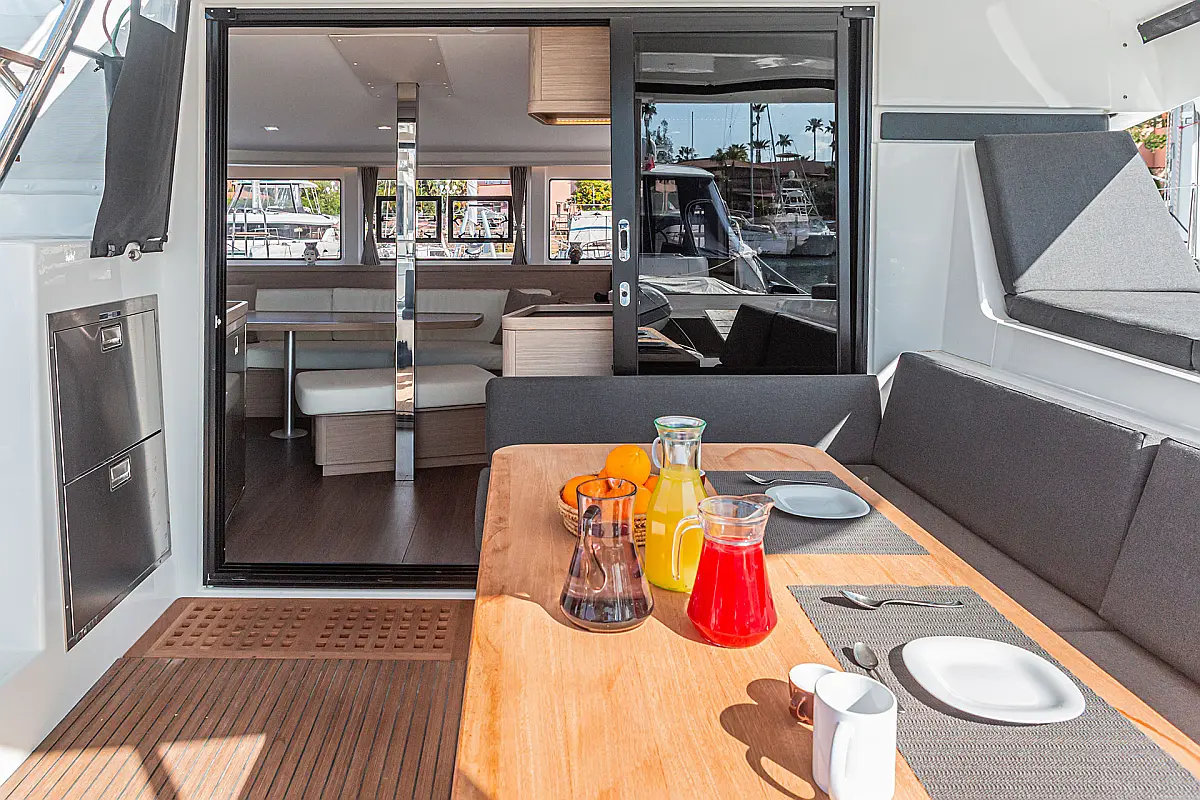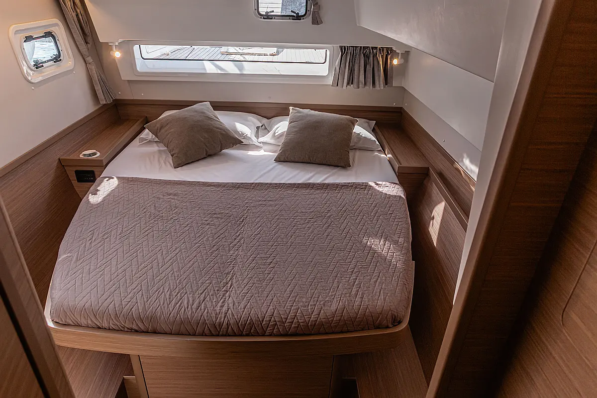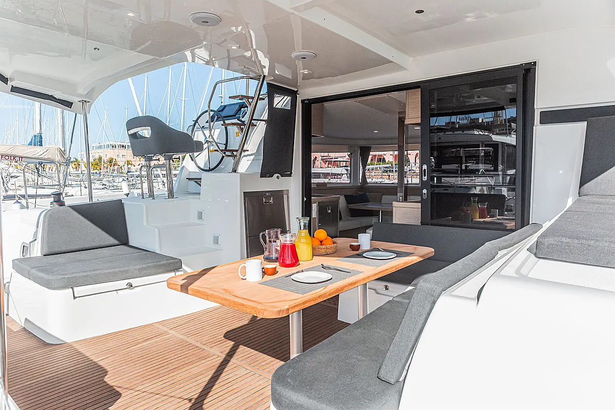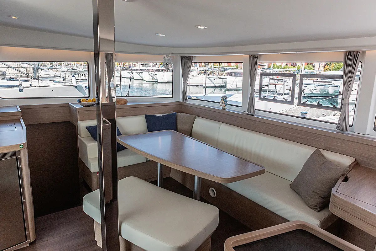 Klima, Električni wc, Generator, teak kokpit, Pomožni čoln, Desalinator, Inverter, Aparat za kavo, Izvenkrmni motor, Blazine v kokpitu