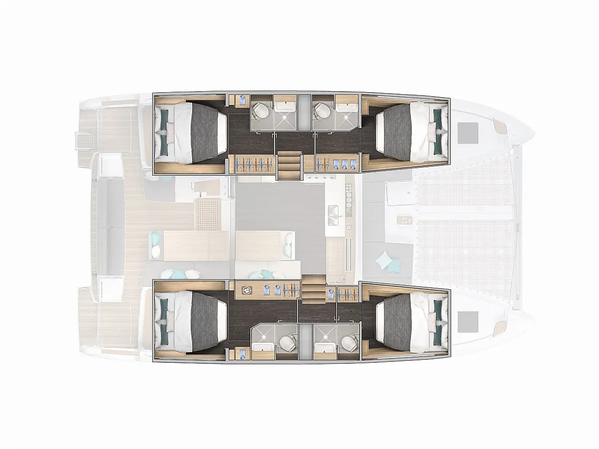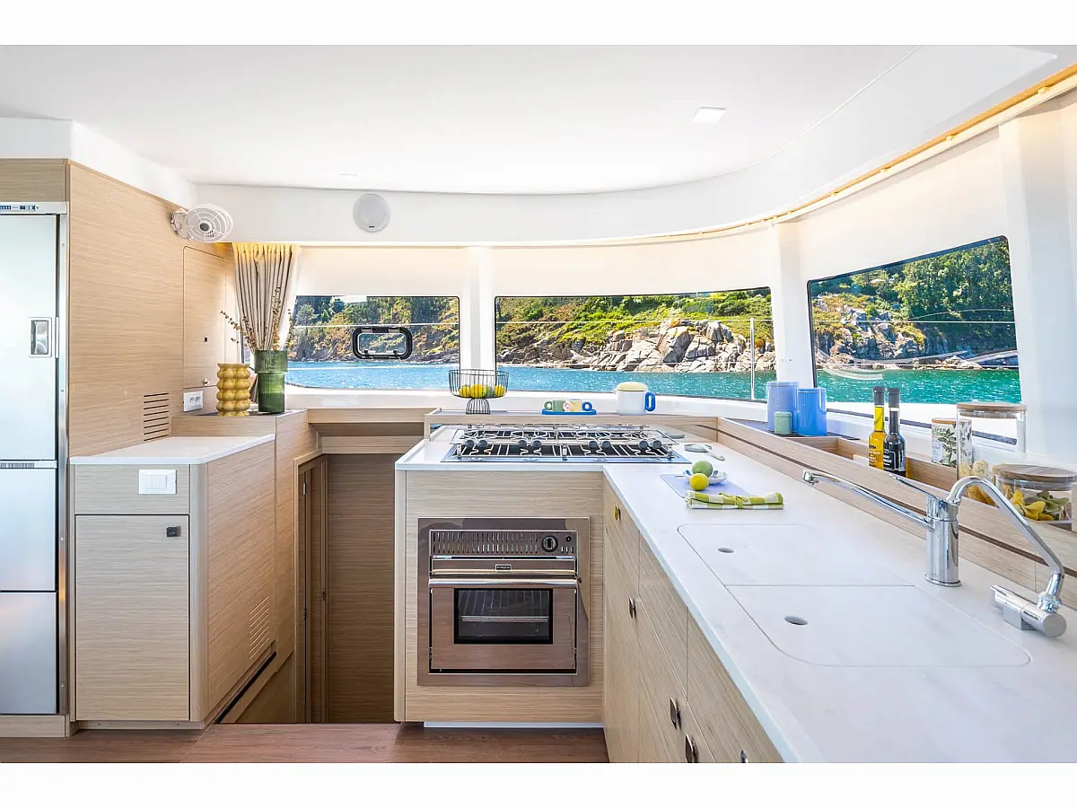 Batteries charger Electrical circuit 3 additional service batteries 95Amp + battery controller Monitoring display (Navicolor) USB sockets in the cabins Electrical manœuvre winch 50.2 STAEH S/steel dinghy hoist system & manual winch Pulpits with wooden seats Wooden access step to the passage way Helm seat bench and roof acces Roof access Aft portholes in aft cabins and head (3 cabins version only) with store Lateral portholes in salon Storage in cockpit Fusion player RA210 + 4 loudspeakers in salon and cockpit Water purifier Upper storage in salon Freshwater dock inlet Deck wash pump sea water / fresh water Electric toilets Quiet-Flush Fans in salon and cabins Electric seawater pump with dedicated tap Indirect lighting in cabins and salon RAYMARINE NAVIGATION PACK - Multifunction i70s display at helm station - P70s autopilot + ACU-400 actuator control unit + Gyro - Speed/Depth/Temp Transducer - Wind transducer - RAY63 VHF - Axiom Pro 12'' display at helm station - Card included