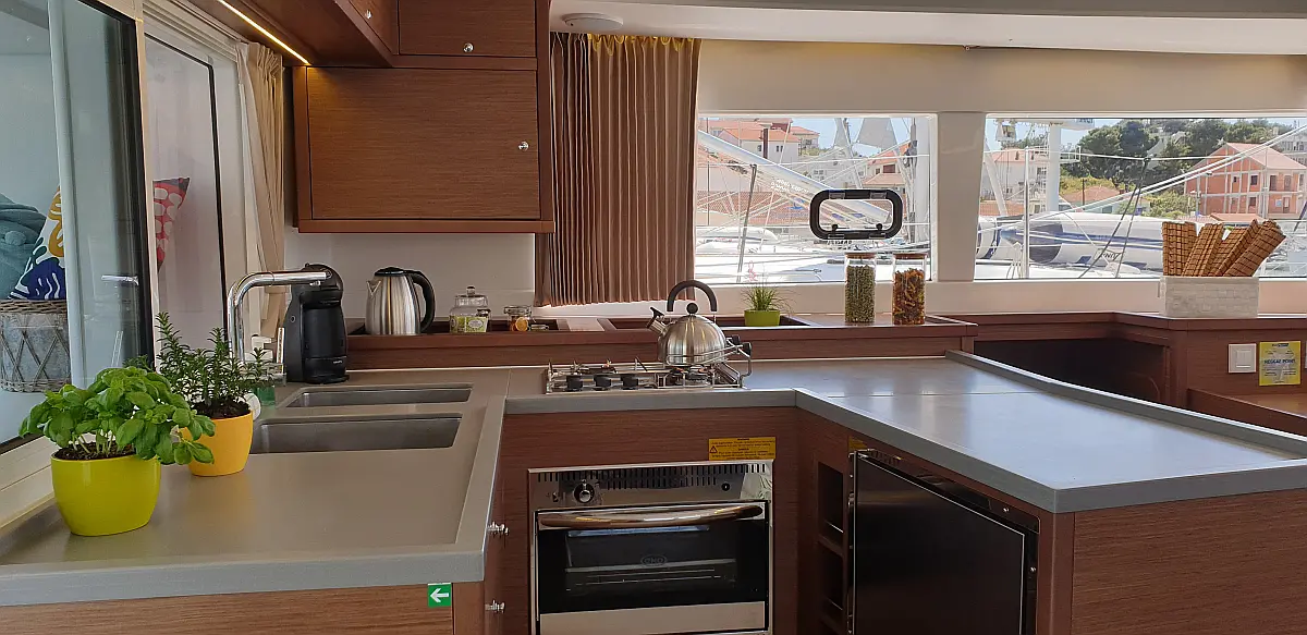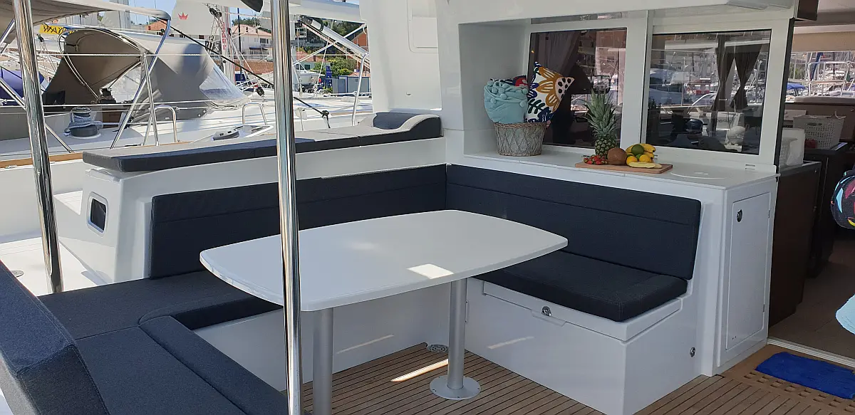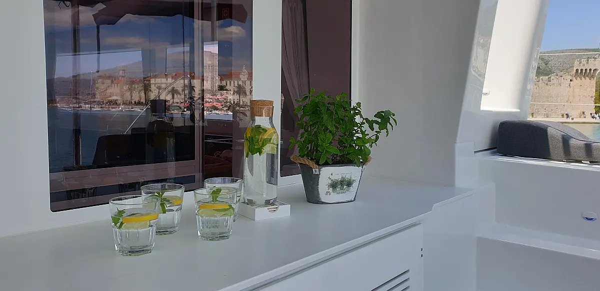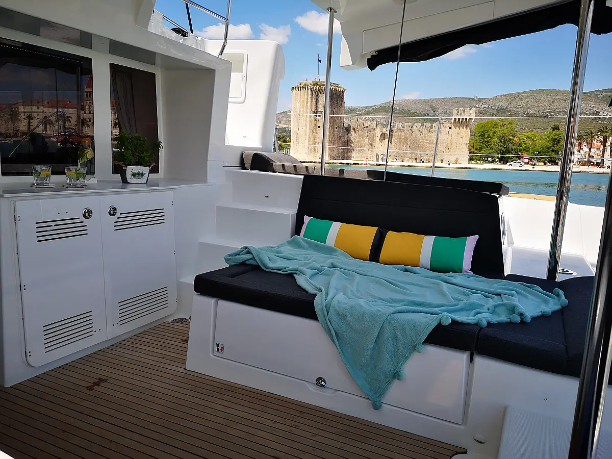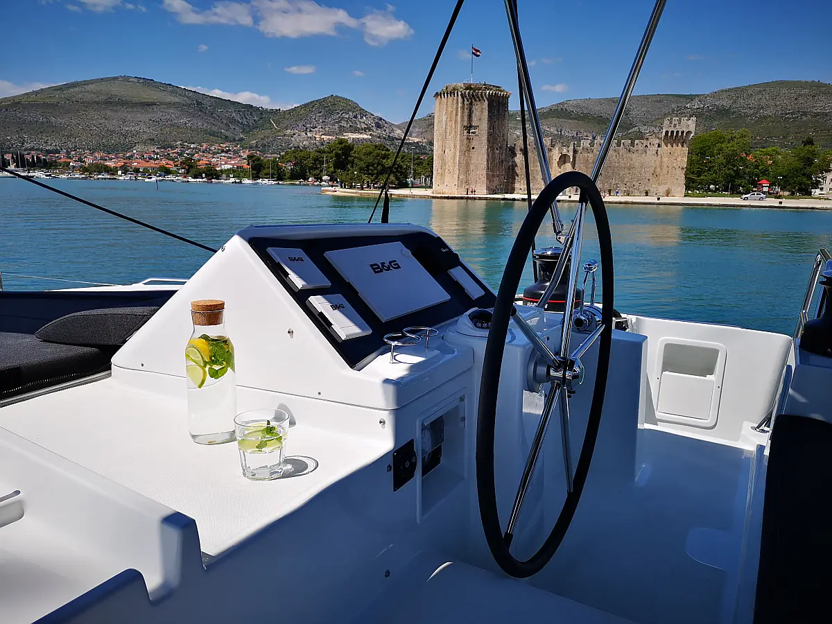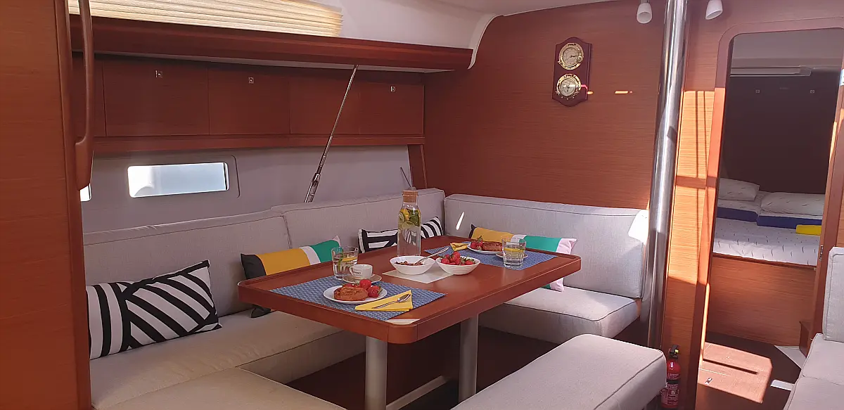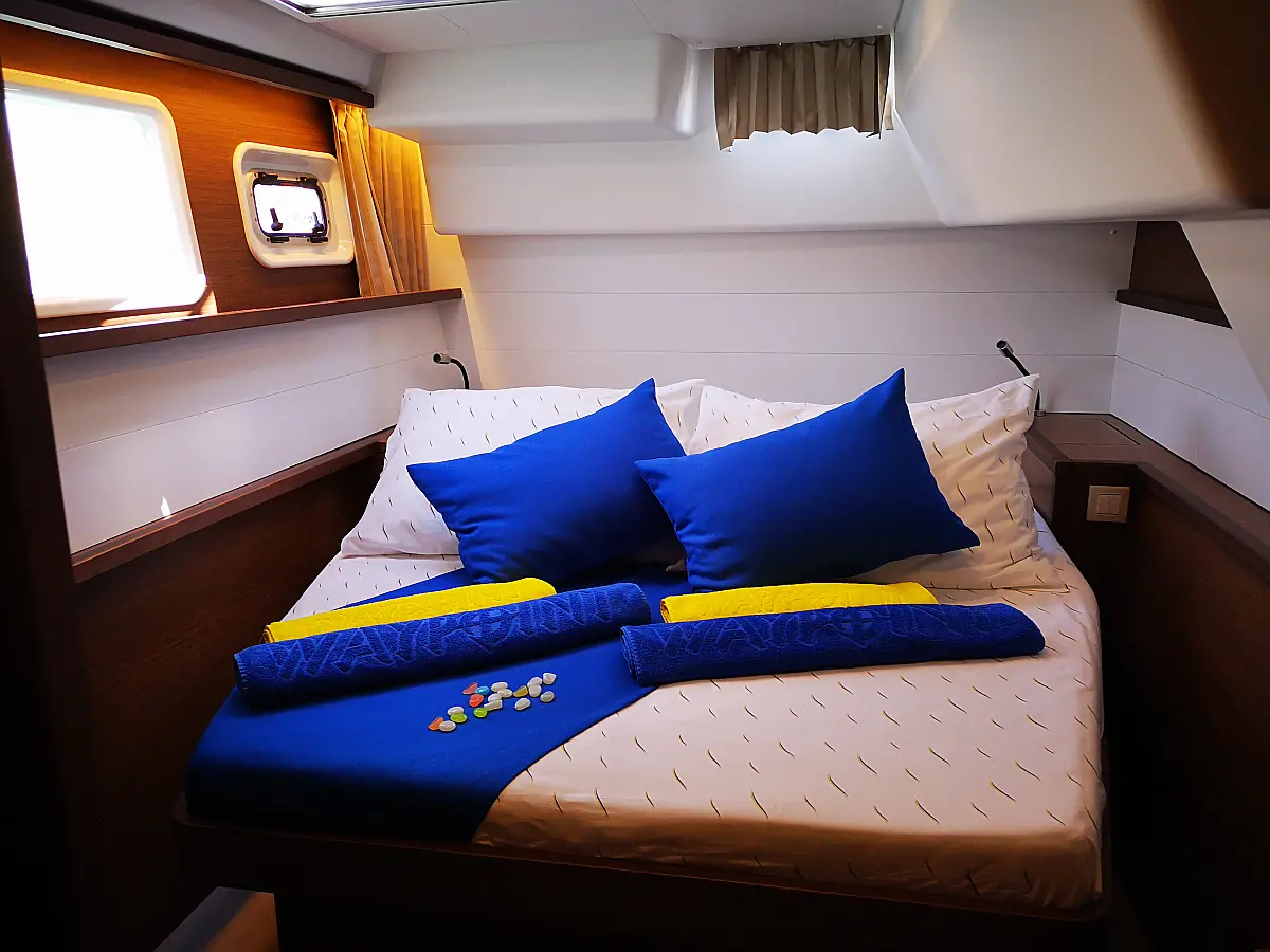Bimini, Sprayhood, Izvenkrmni motor, Aparat za kavo, Hladilnik, Klima, Generator, Ledomat, Teak paluba, Blazine v kokpitu, Električni vitli, Gretje, Električni wc