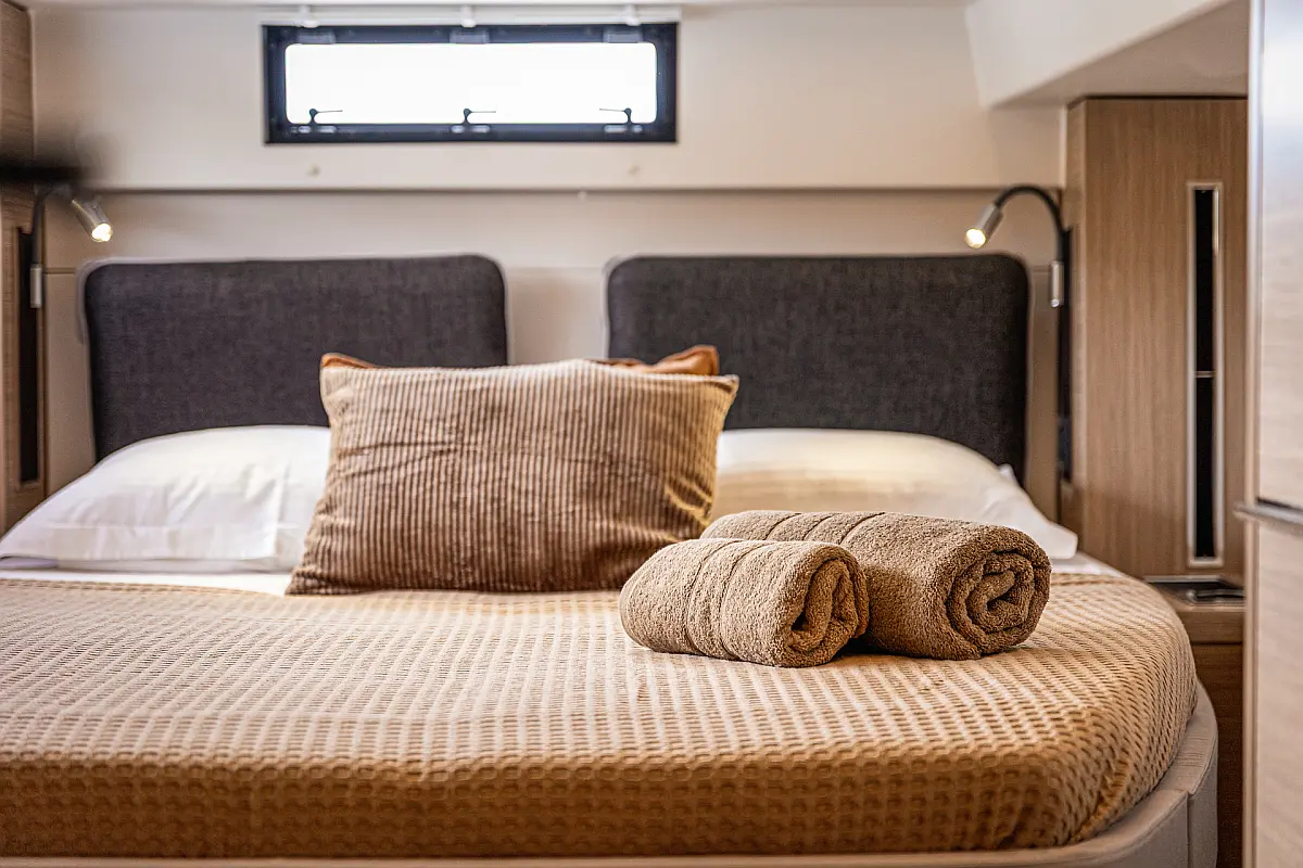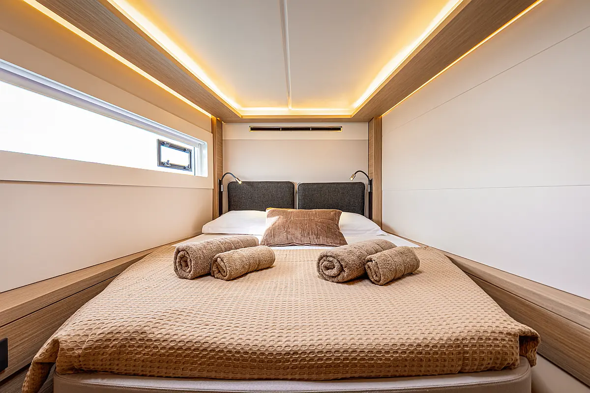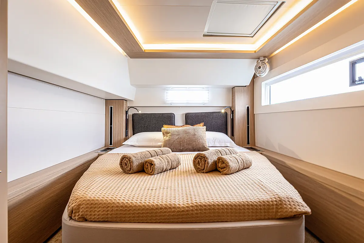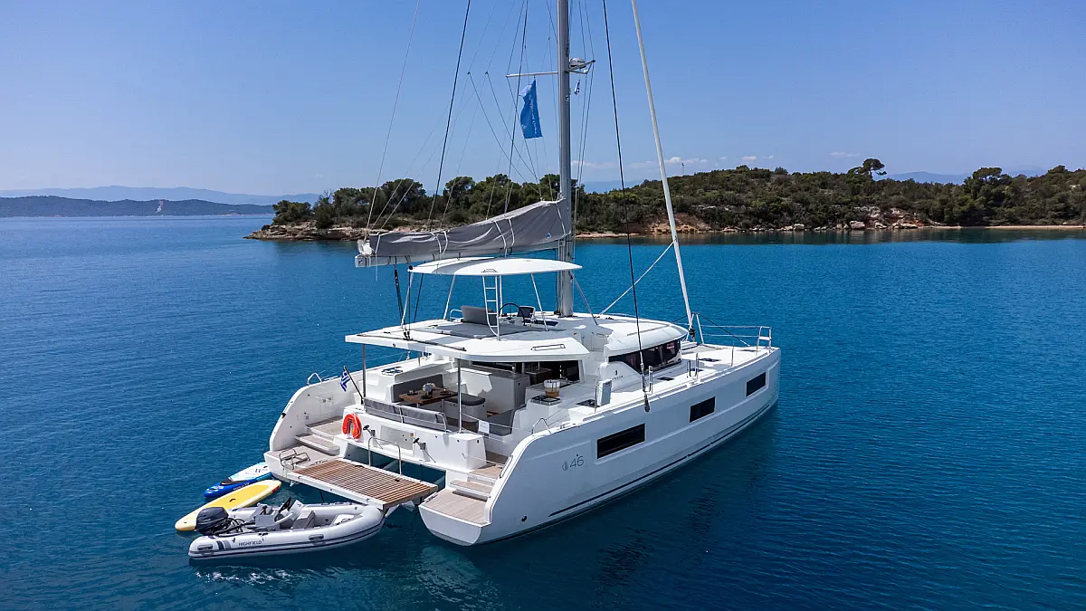 13.99 m dolga Katamaran Lagoon 46 , izdelana leta 2026, je idealna jahta za raziskovanje Grčija. S 5 (4 double +1 double crew cabin) udobnimi kabinami, 5 (4+1) WC/Tuš in dovolj ležišč za do 8 gostov zagotavlja dovolj prostora za sprostitev in zabavo. Ta jahta je na voljo za najem.