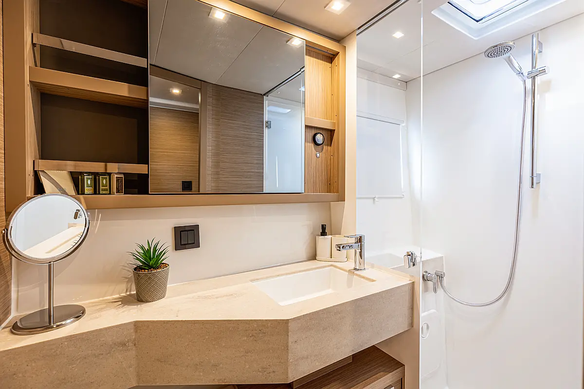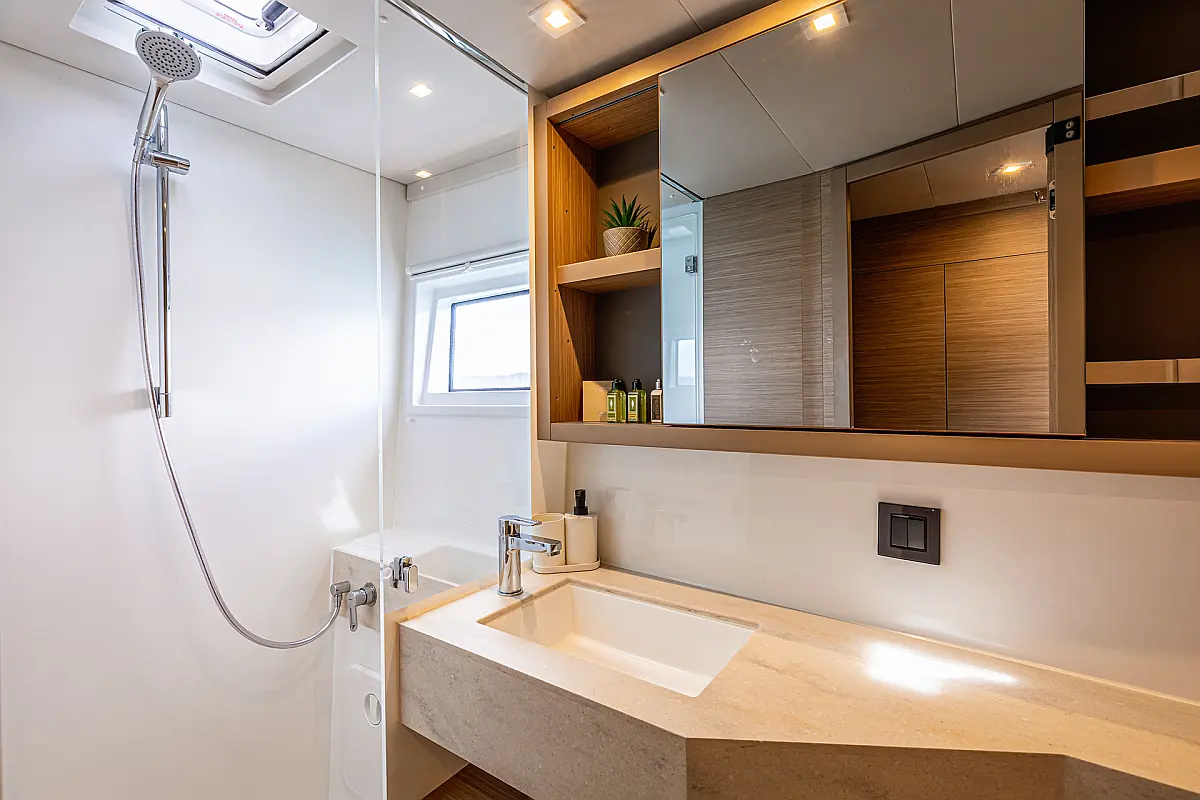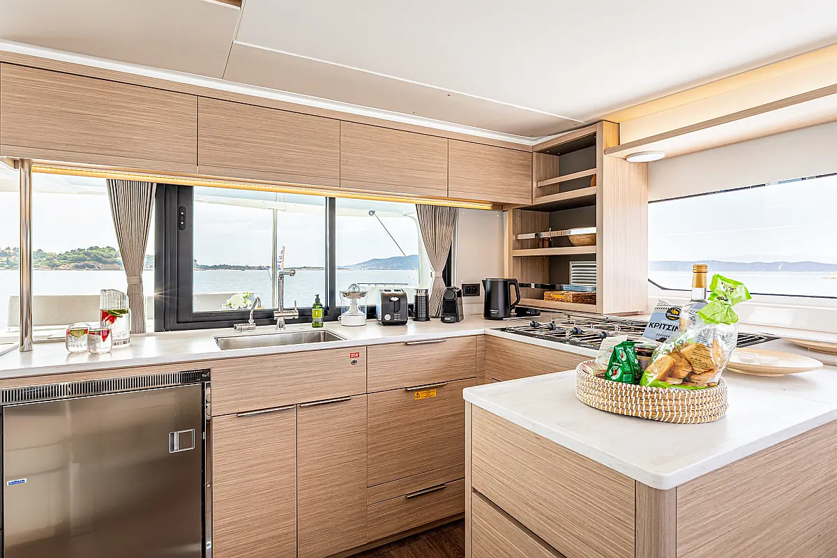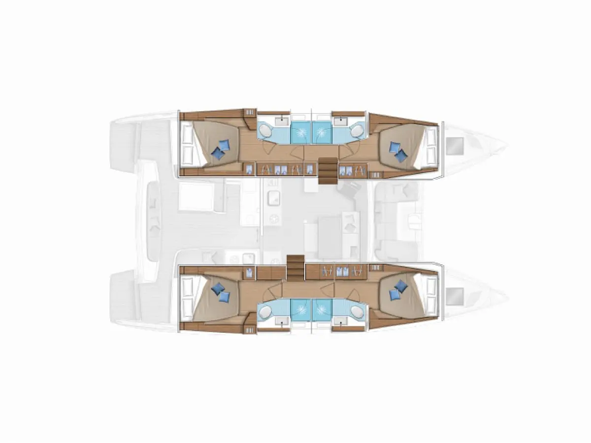 13.99 m dolga Katamaran Lagoon 46 , izdelana leta 2026, je idealna jahta za raziskovanje Grčija. S 5 (4 double +1 double crew cabin) udobnimi kabinami, 5 (4+1) WC/Tuš in dovolj ležišč za do 8 gostov zagotavlja dovolj prostora za sprostitev in zabavo. Ta jahta je na voljo za najem.