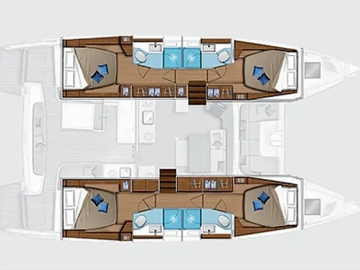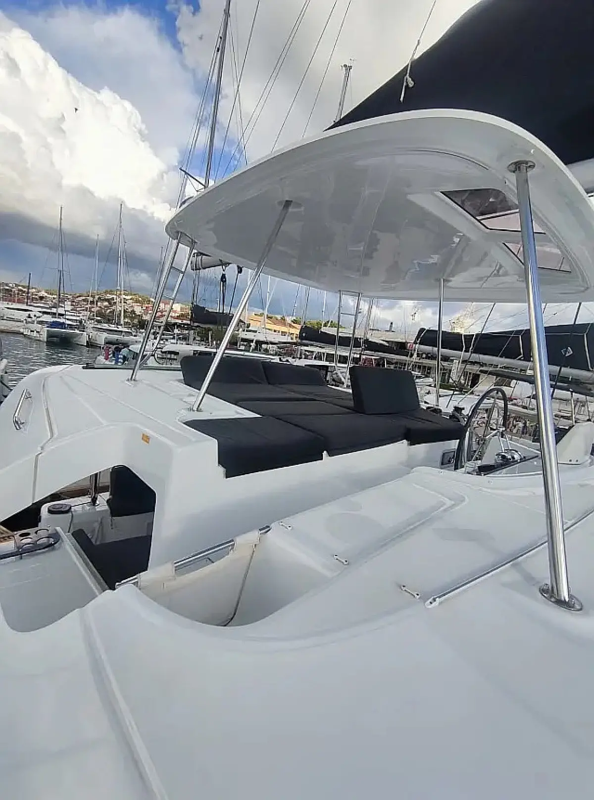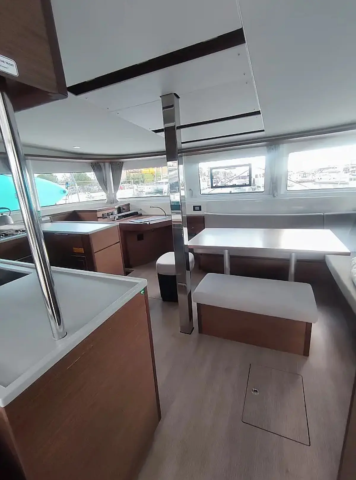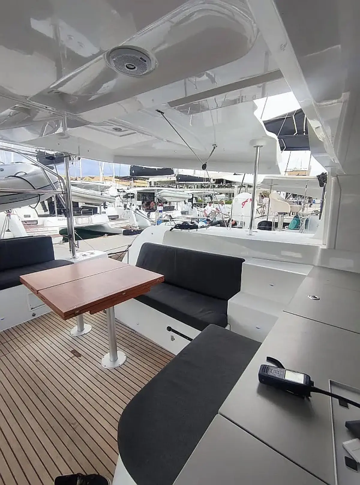 Klima, Blazine v kokpitu, Zvočniki v kokpitu, Pomožni čoln, Pomivalni stroj, Hladilnik, Električni wc, Generator, Gretje, Črni tank, Ledomat, Inverter, Izvenkrmni motor, teak kokpit, Wi-Fi in internet, Aparat za kavo