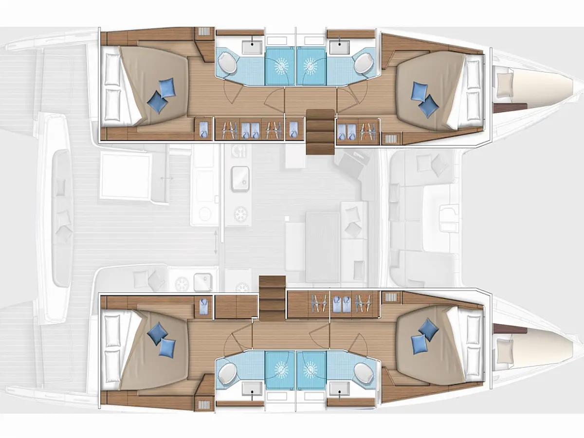 Blazine v kokpitu, Flybridge, Hladilnik, Pomožni čoln, Električni wc, Generator, Klima, Desalinator