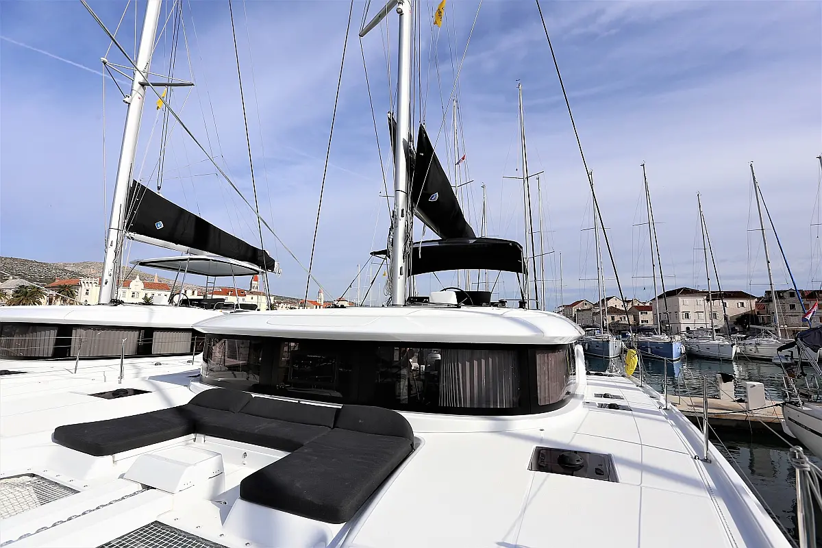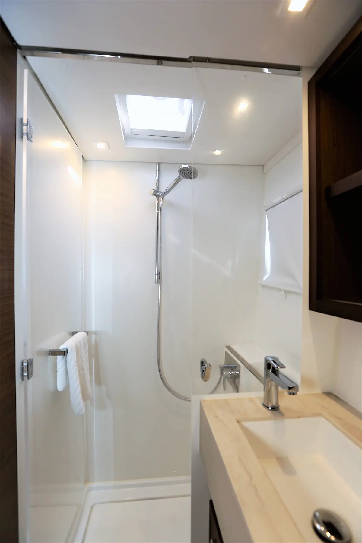 highfield 340 + honda 20hp, Nema webasto već klima može i grijat i hladit, ima posebne jedinice klime za salon i kabine, ležaj za dvoje u salonu Ima tvornički ice box 130 l u kokpitu, ali nekad znaju imat problem s njim pa daju običan prijenosni, ima inverter 2 kW