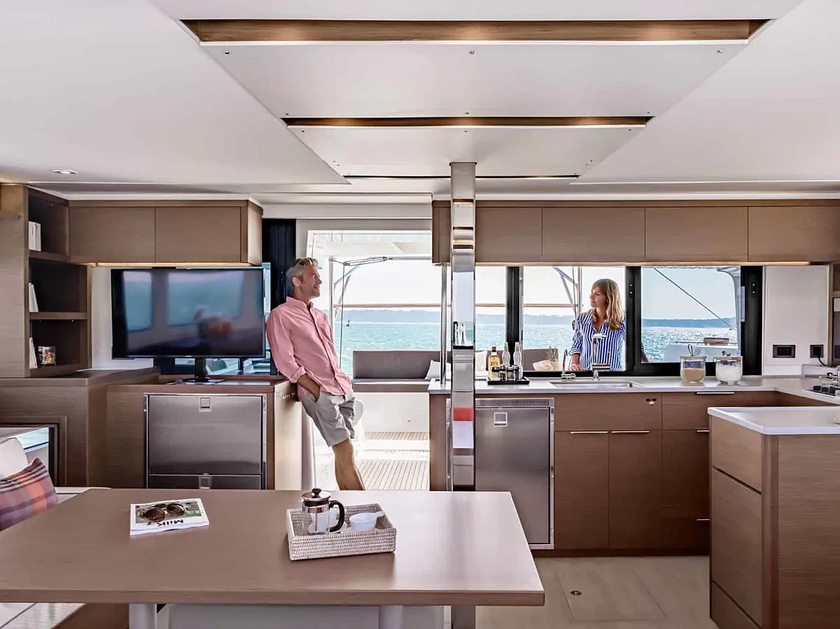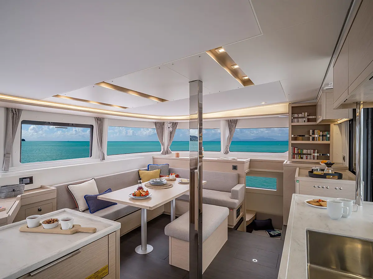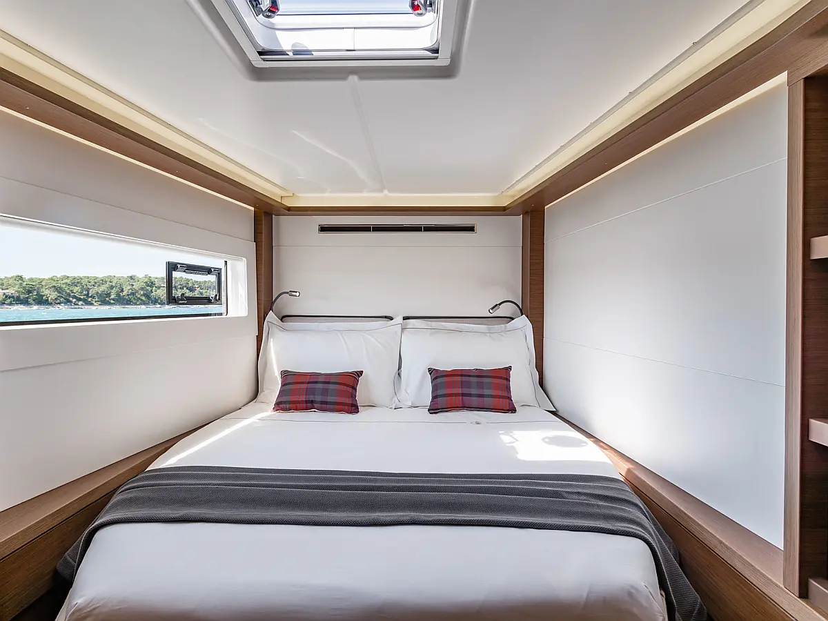 Pomožni čoln, Klima, Žar v kokpitu, Hladilnik, Generator, Ledomat, Aparat za kavo, Desalinator, Wi-Fi in internet, Električni wc, Inverter