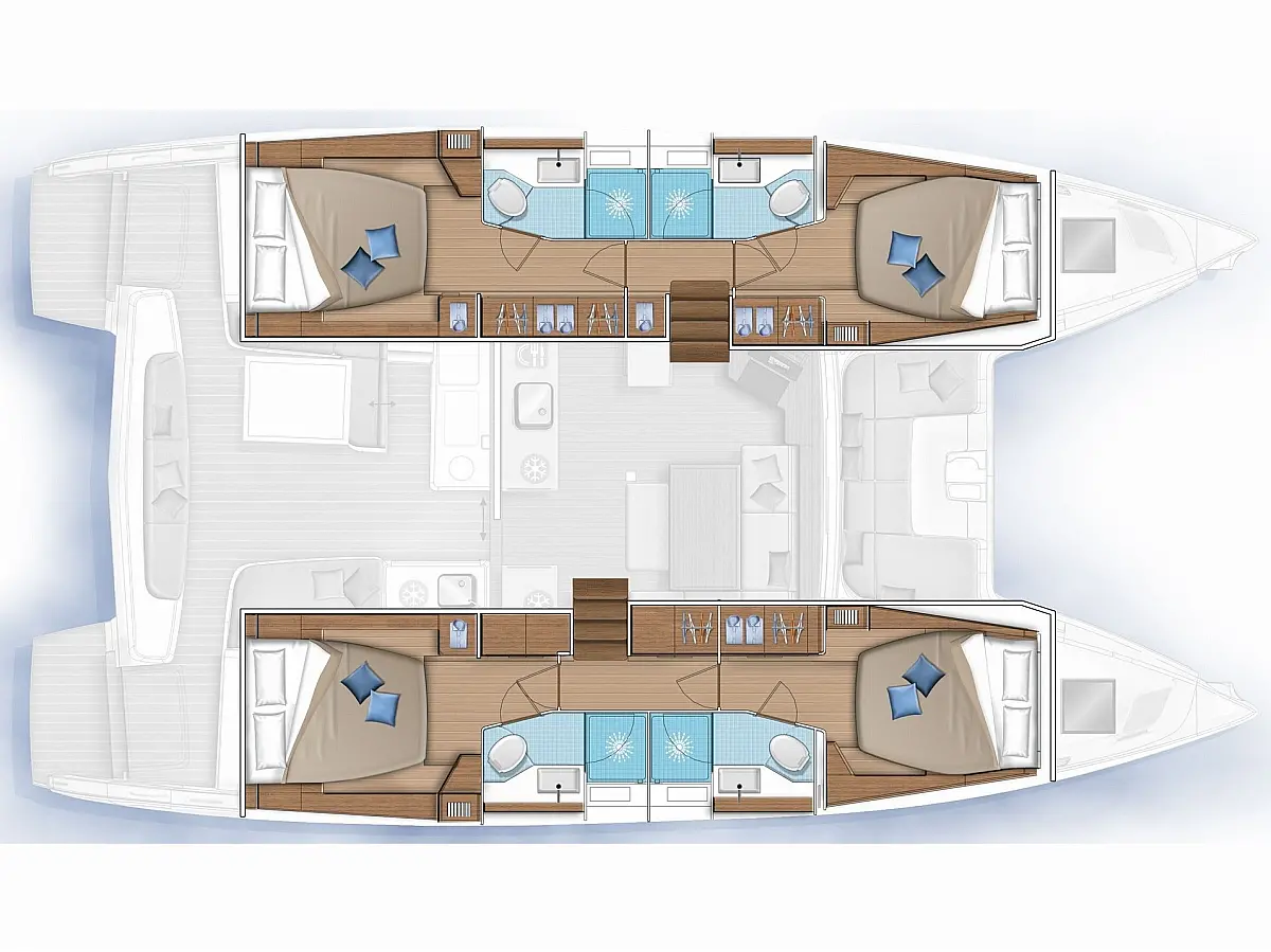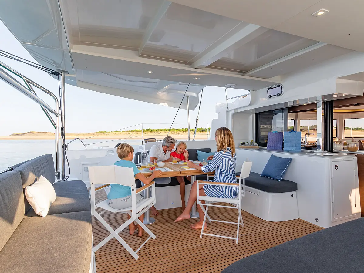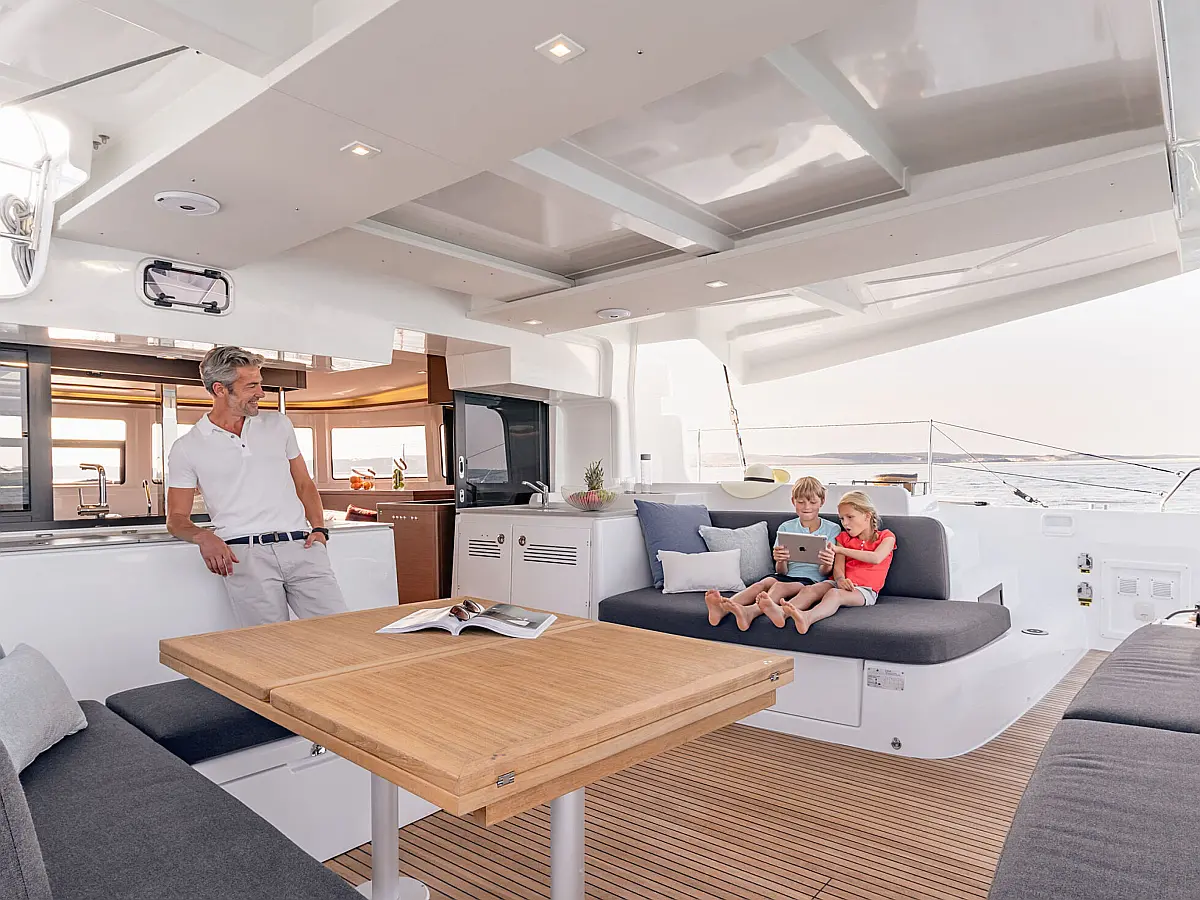 Pomožni čoln, Klima, Žar v kokpitu, Hladilnik, Generator, Ledomat, Aparat za kavo, Desalinator, Wi-Fi in internet, Električni wc, Inverter
