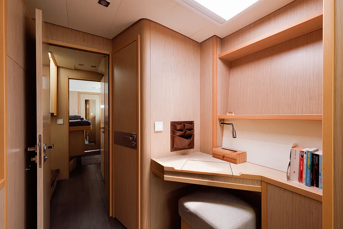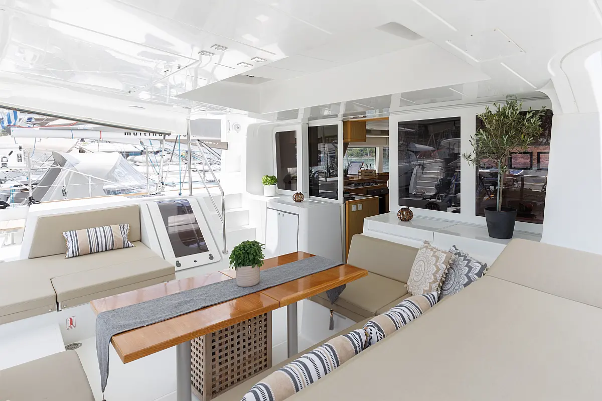 Bimini, Črni tank, Blazine v kokpitu, Pomožni čoln, Generator, Desalinator, Wi-Fi in internet, Klima, Hladilnik