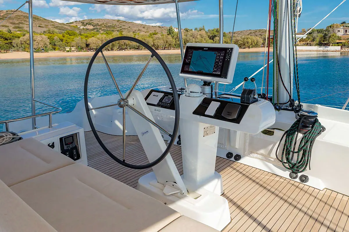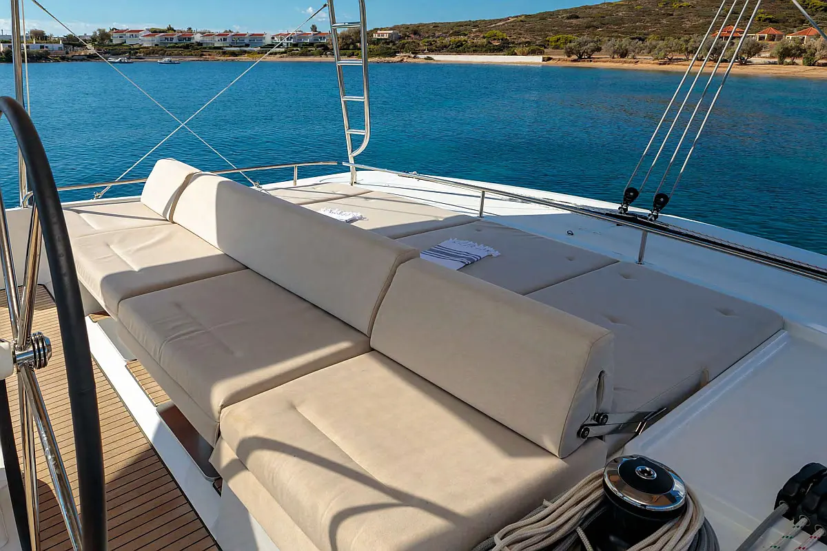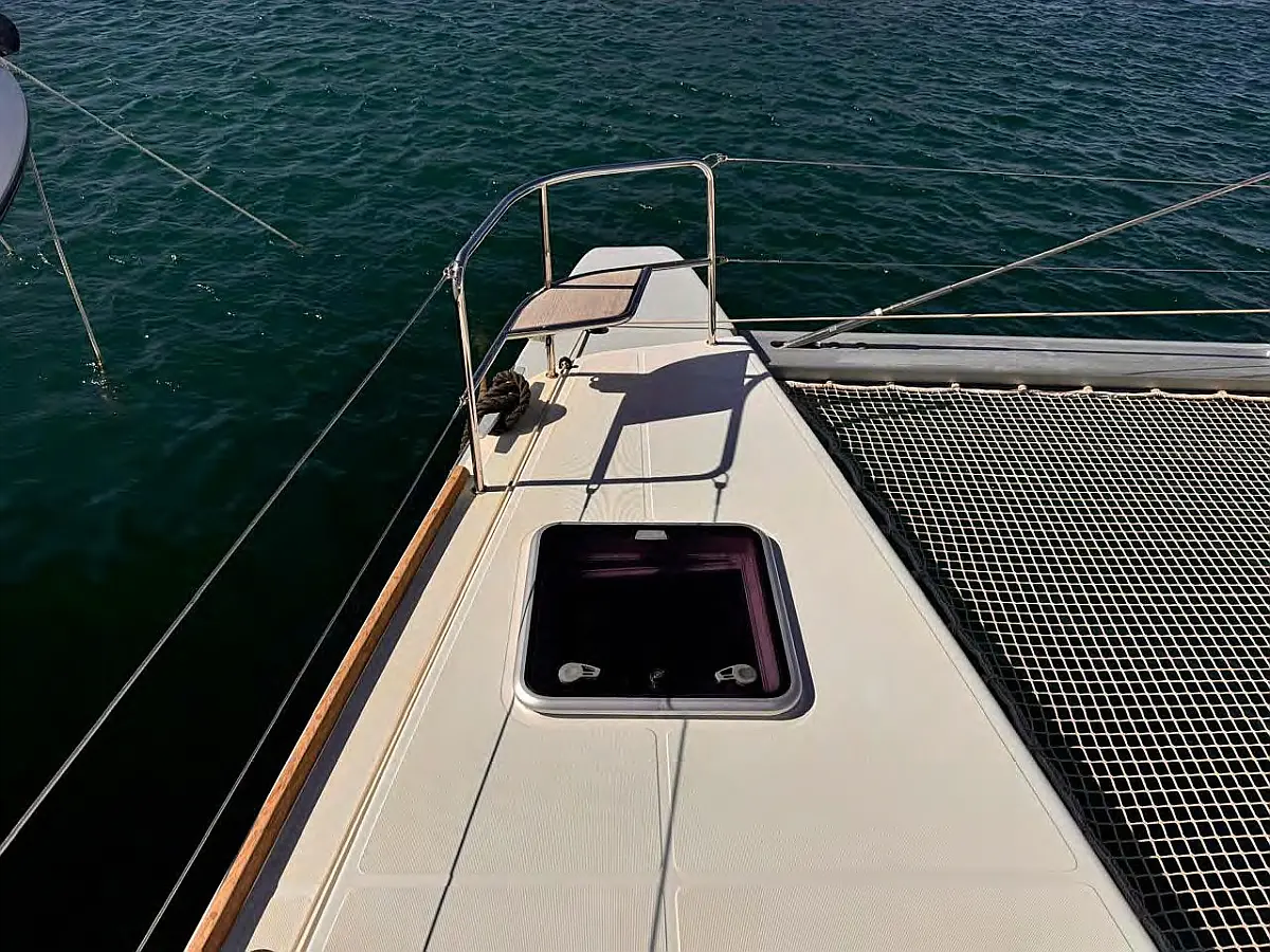 Ledomat, Desalinator, Inverter, Klima, Električni vitli, Generator, Izvenkrmni motor, Pomožni čoln, Hladilnik, Teak paluba, Pomivalni stroj