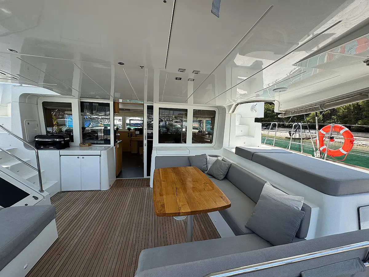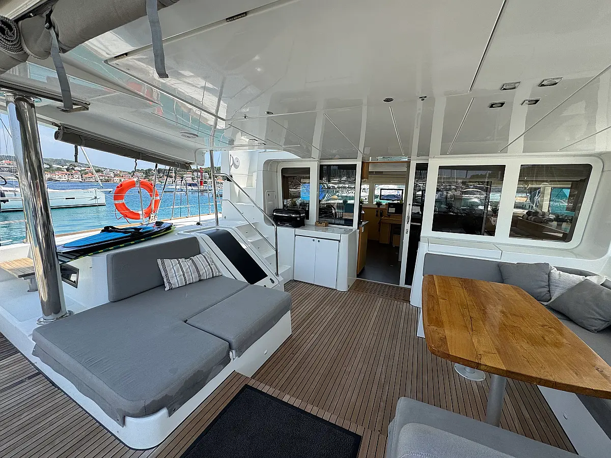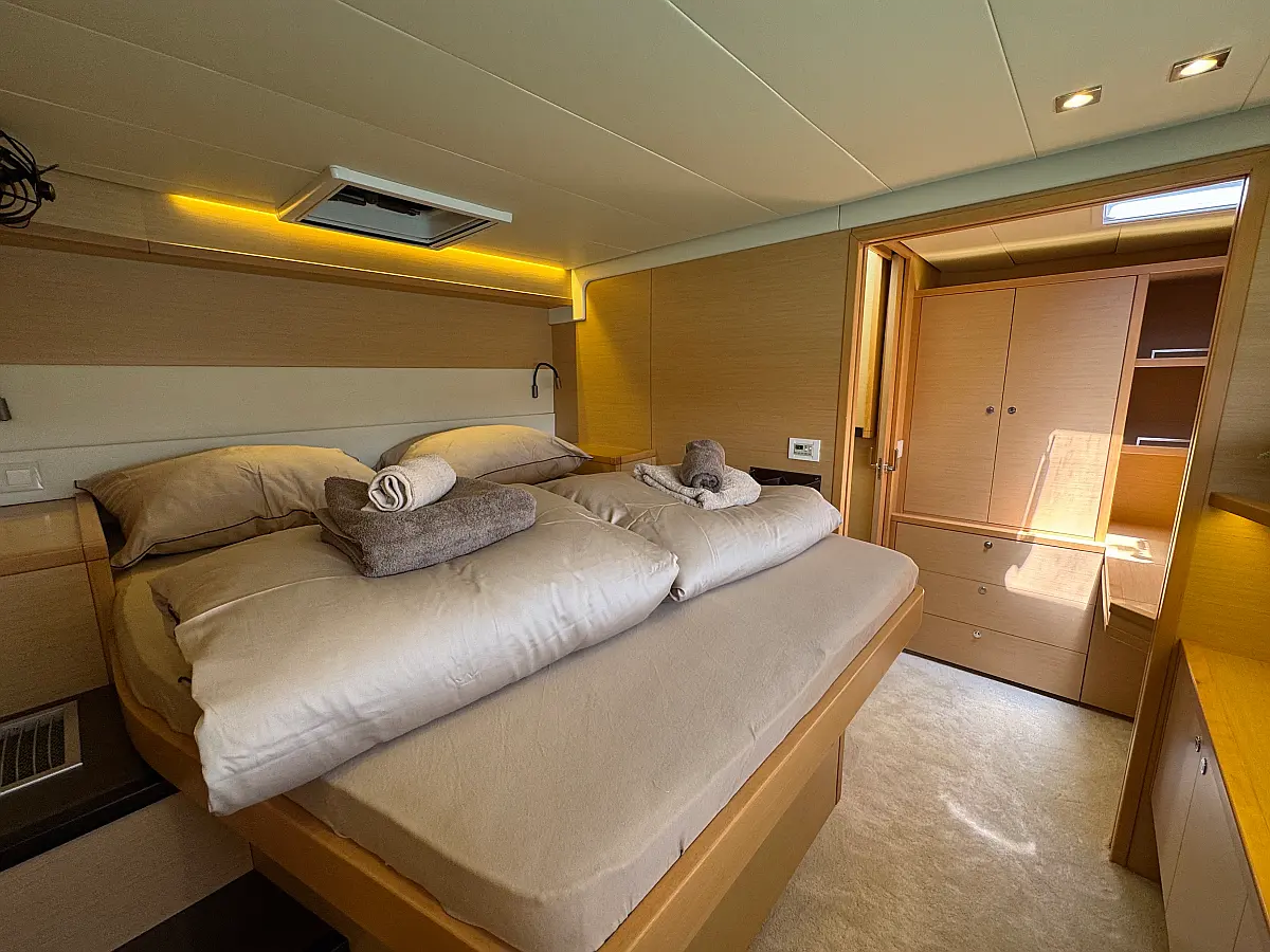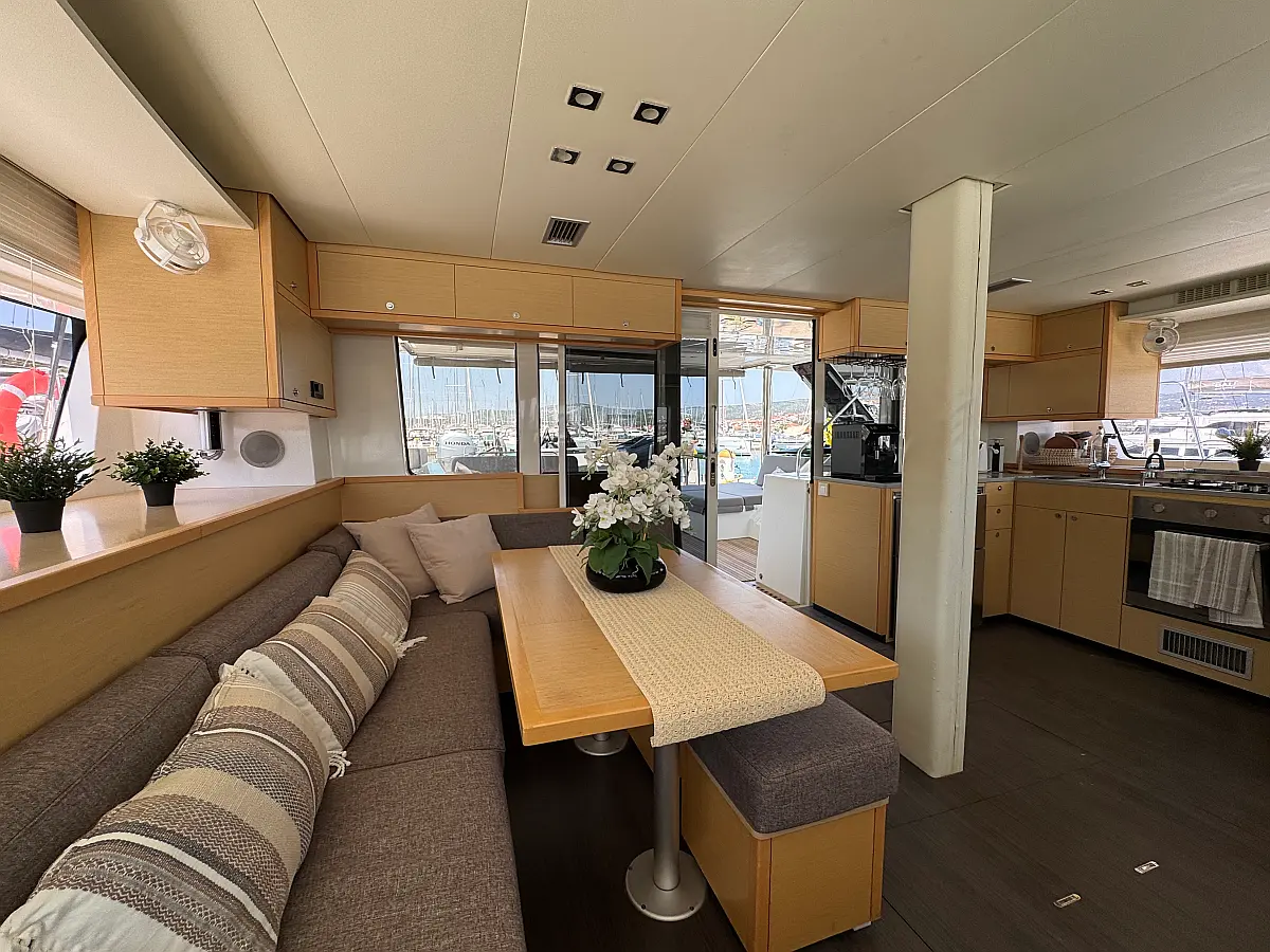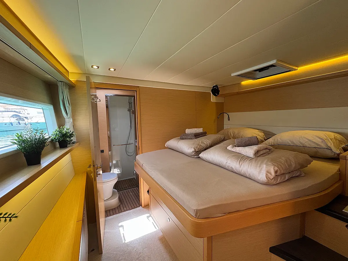 Desalinator, Generator, Klima, Električni wc, Inverter, Električni vitli, Bimini, teak kokpit, Pomožni čoln, Blazine v kokpitu, Aparat za kavo