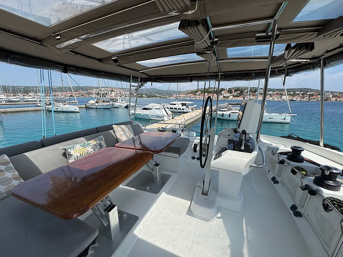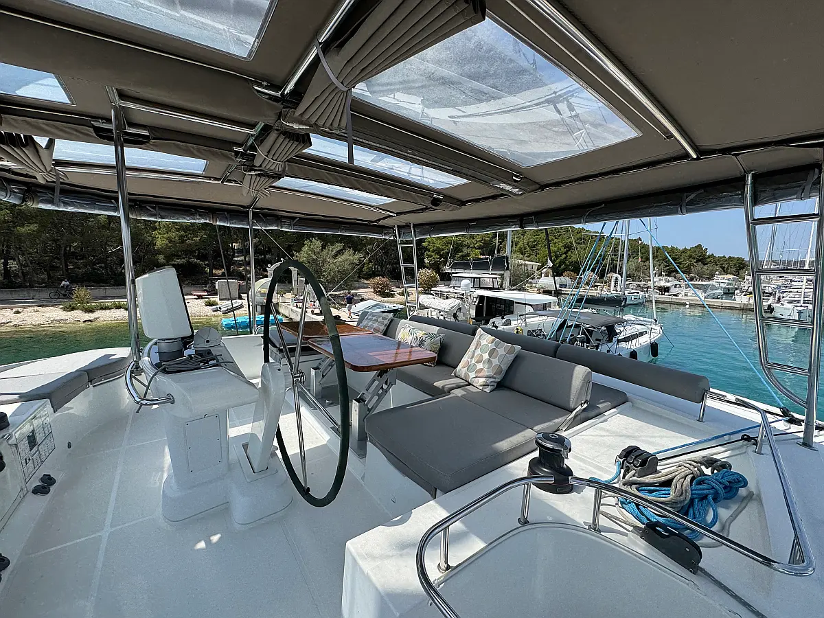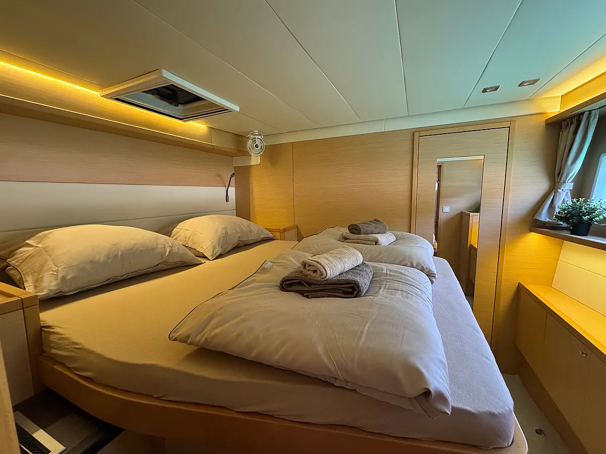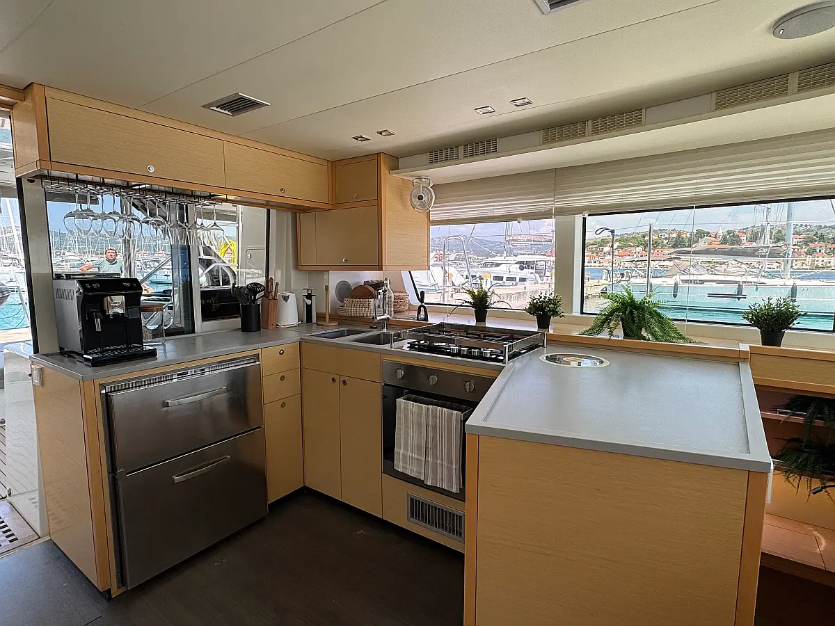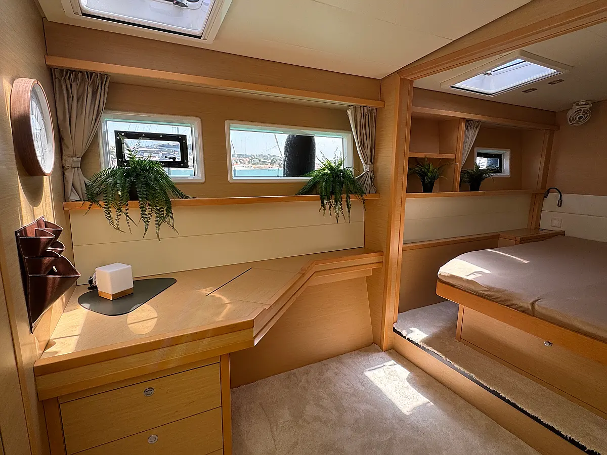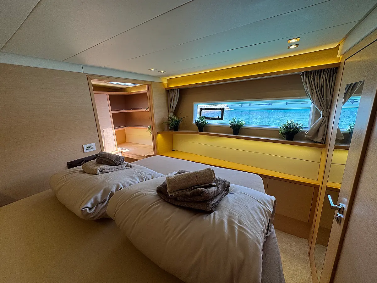 Desalinator, Generator, Klima, Električni wc, Inverter, Električni vitli, Bimini, teak kokpit, Pomožni čoln, Blazine v kokpitu, Aparat za kavo