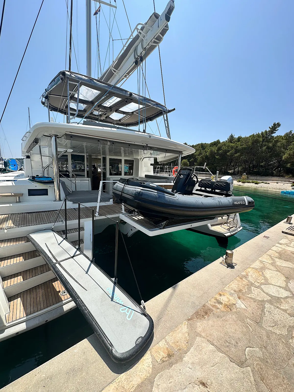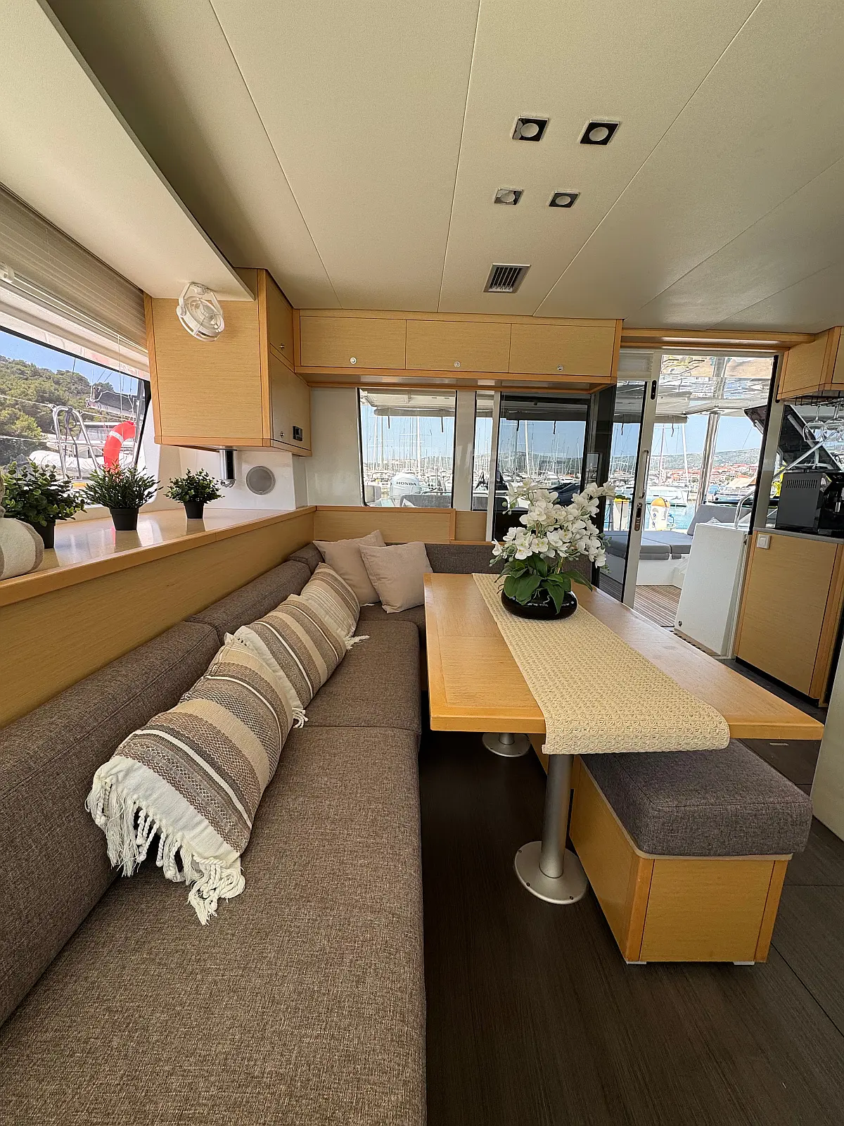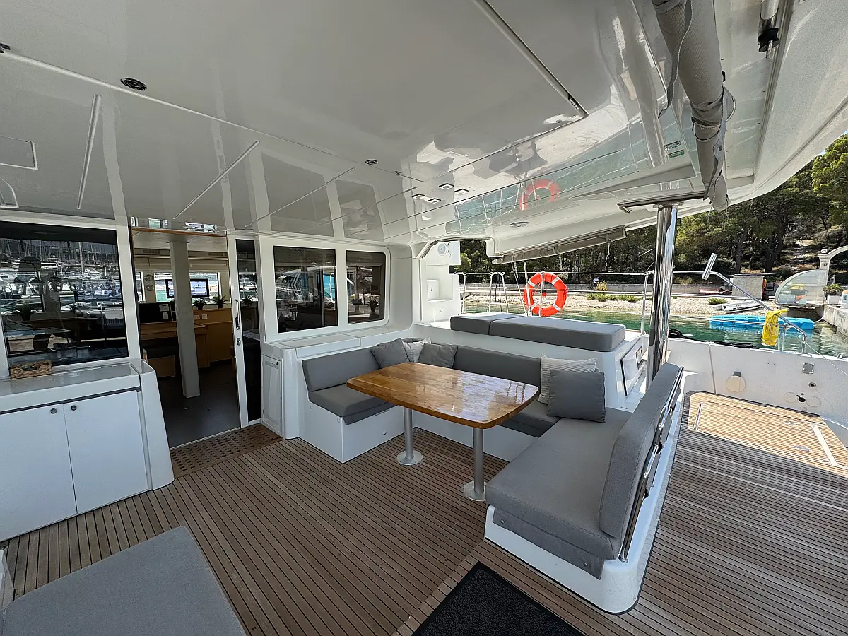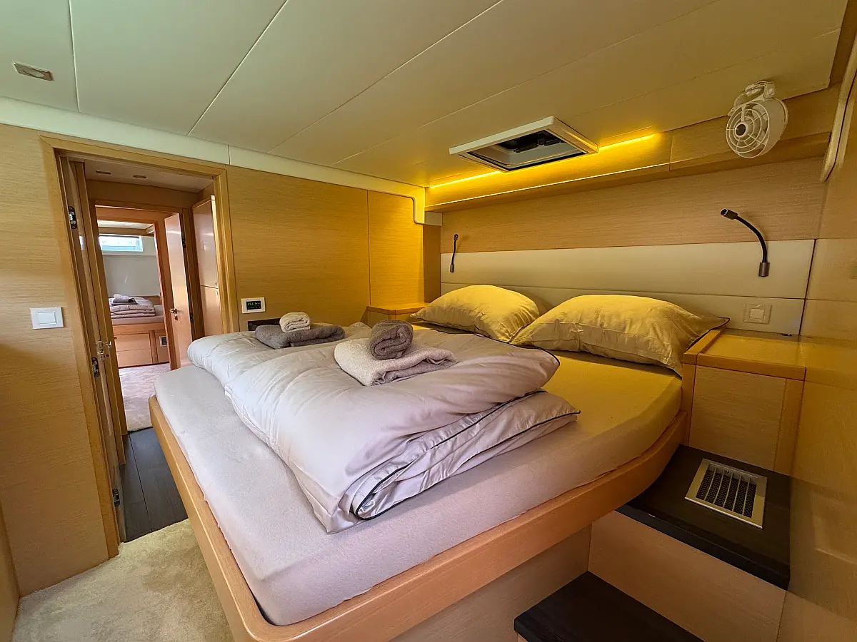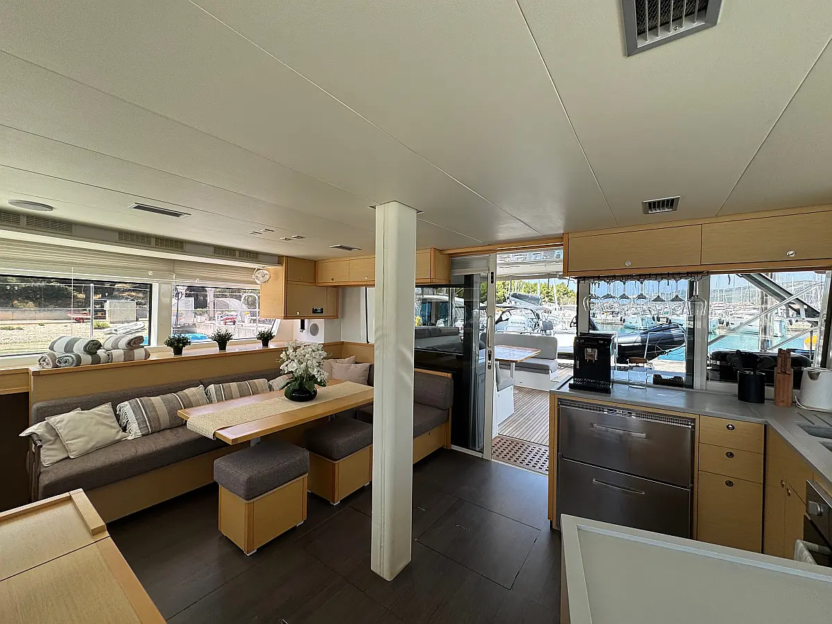 Desalinator, Generator, Klima, Električni wc, Inverter, Električni vitli, Bimini, teak kokpit, Pomožni čoln, Blazine v kokpitu, Aparat za kavo