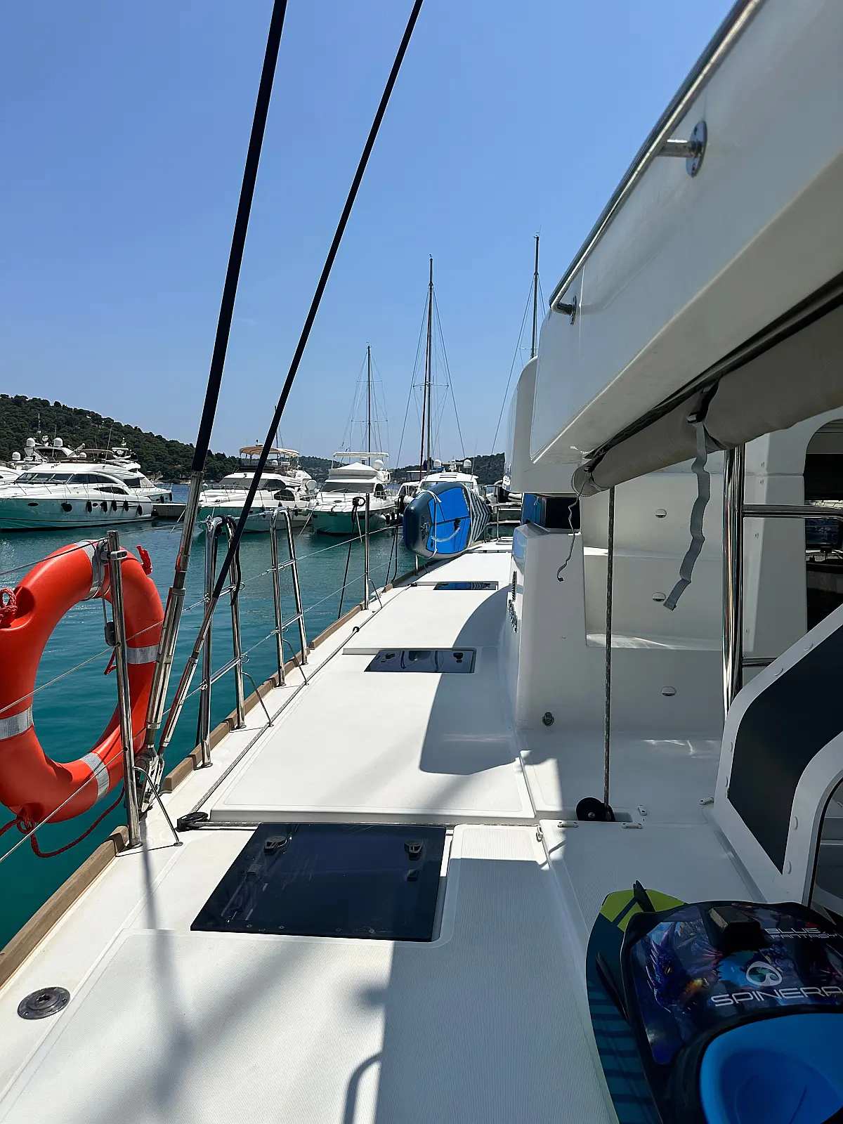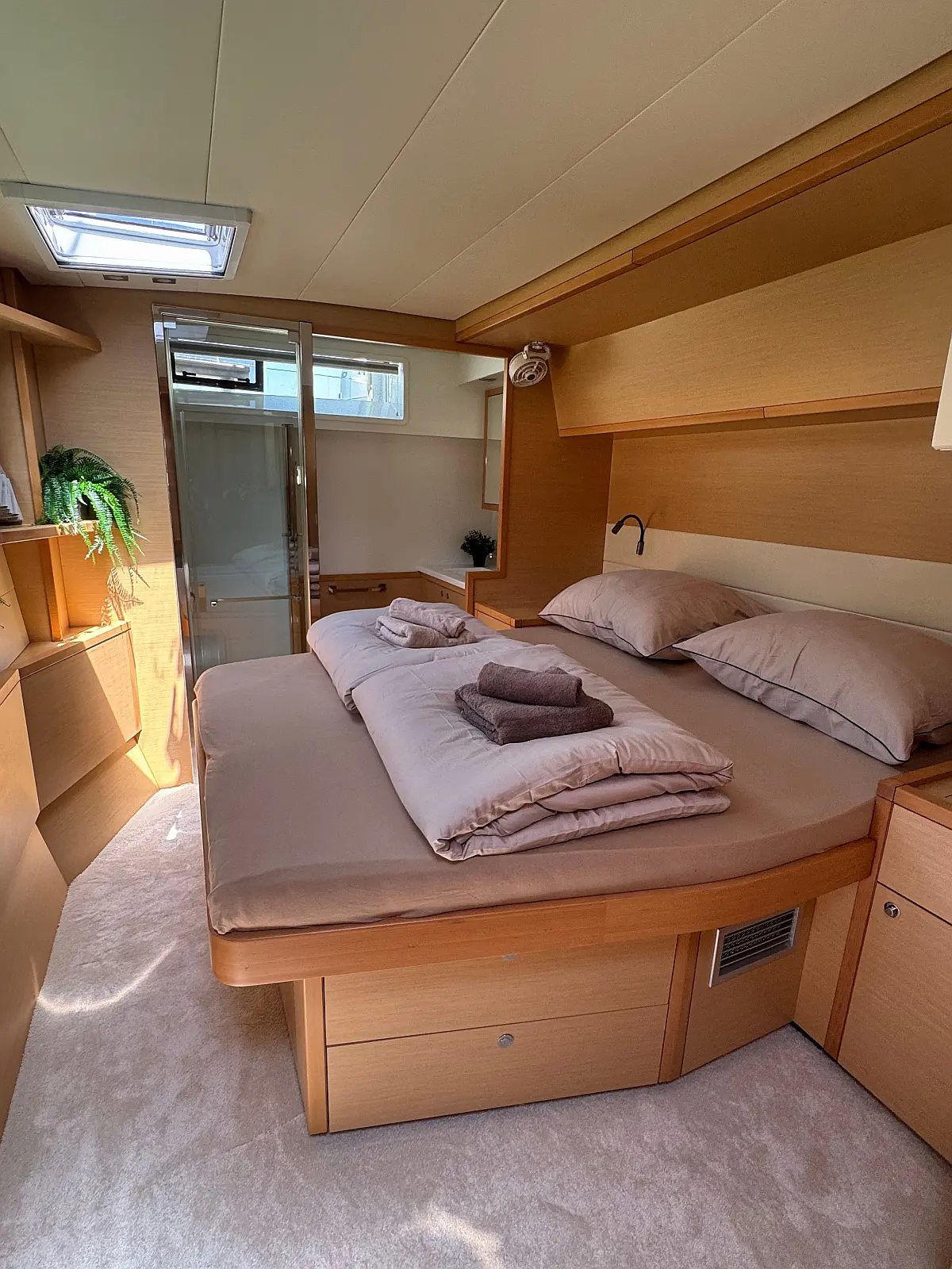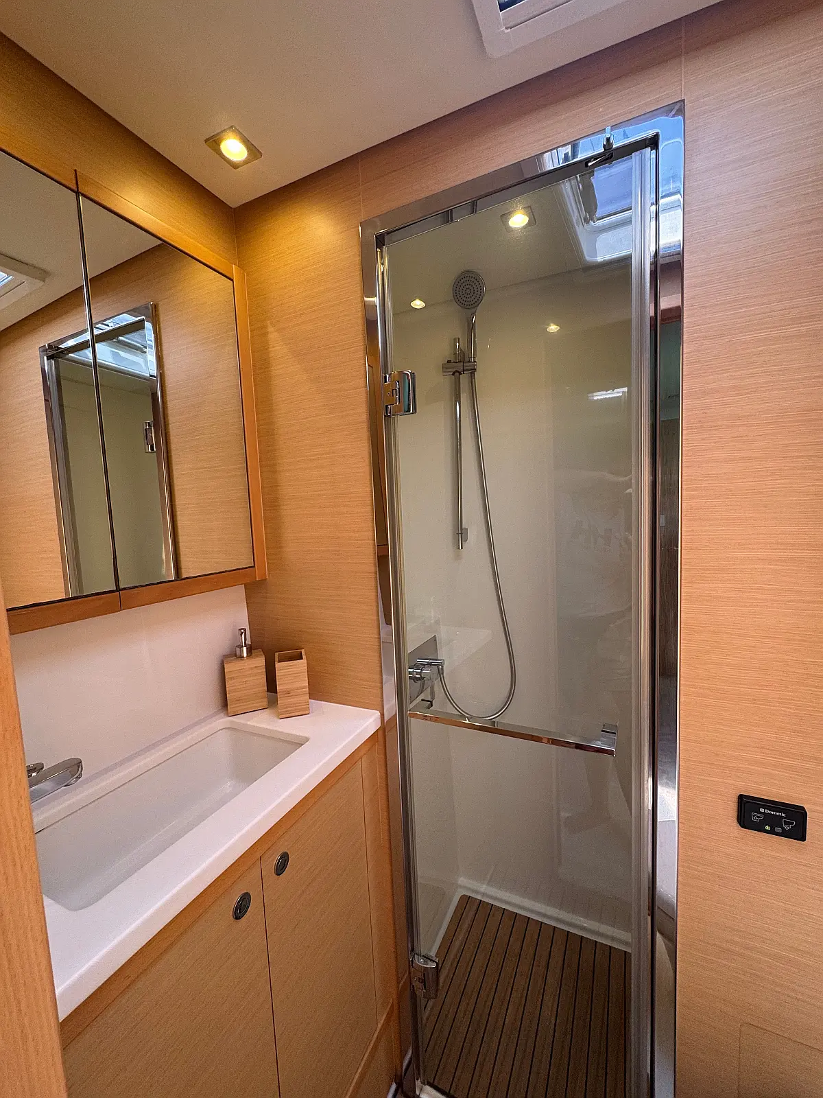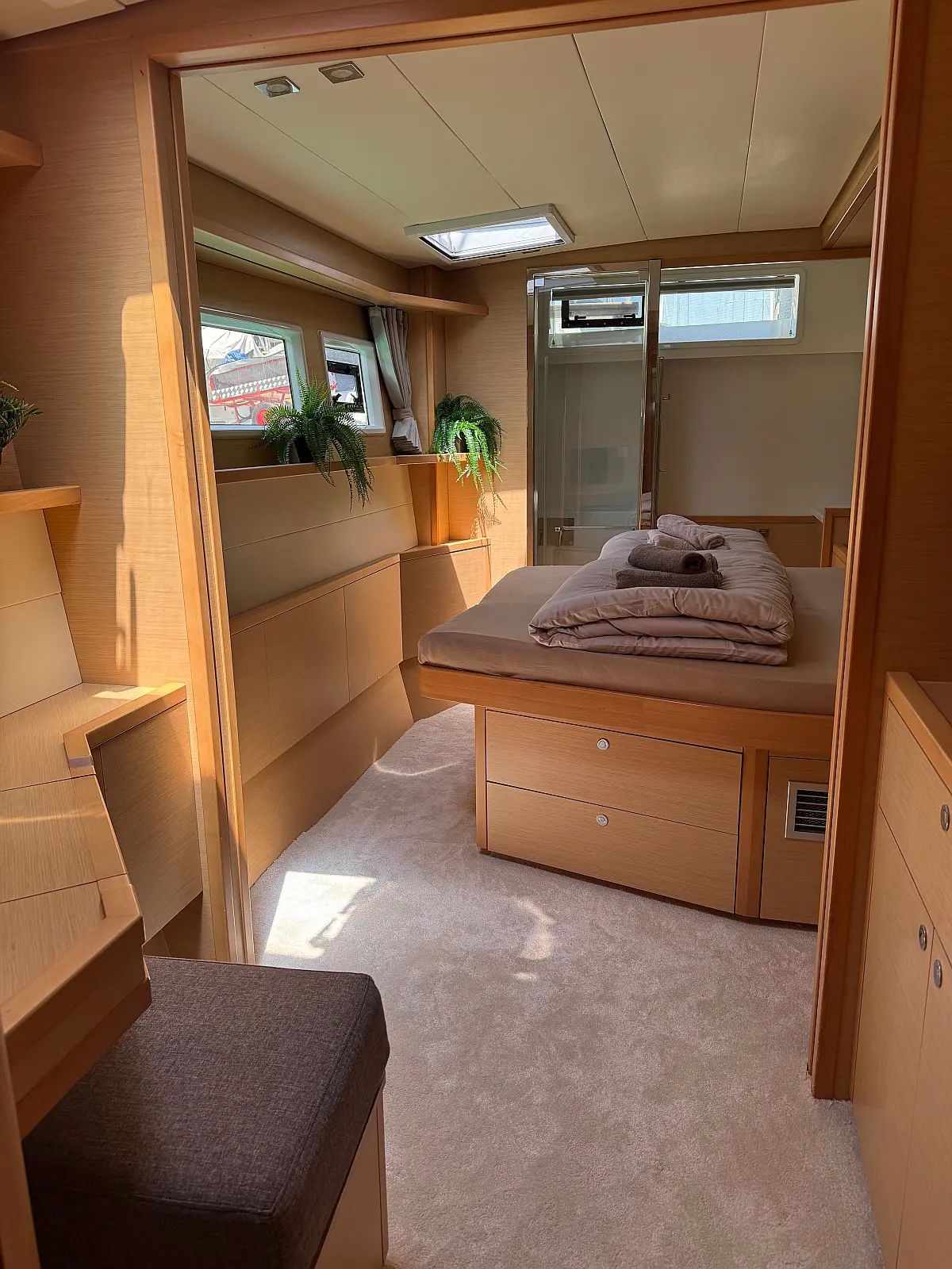 Desalinator, Generator, Klima, Električni wc, Inverter, Električni vitli, Bimini, teak kokpit, Pomožni čoln, Blazine v kokpitu, Aparat za kavo