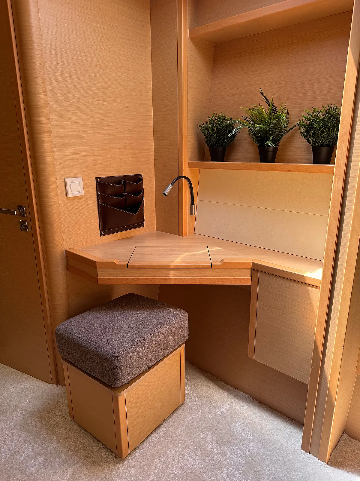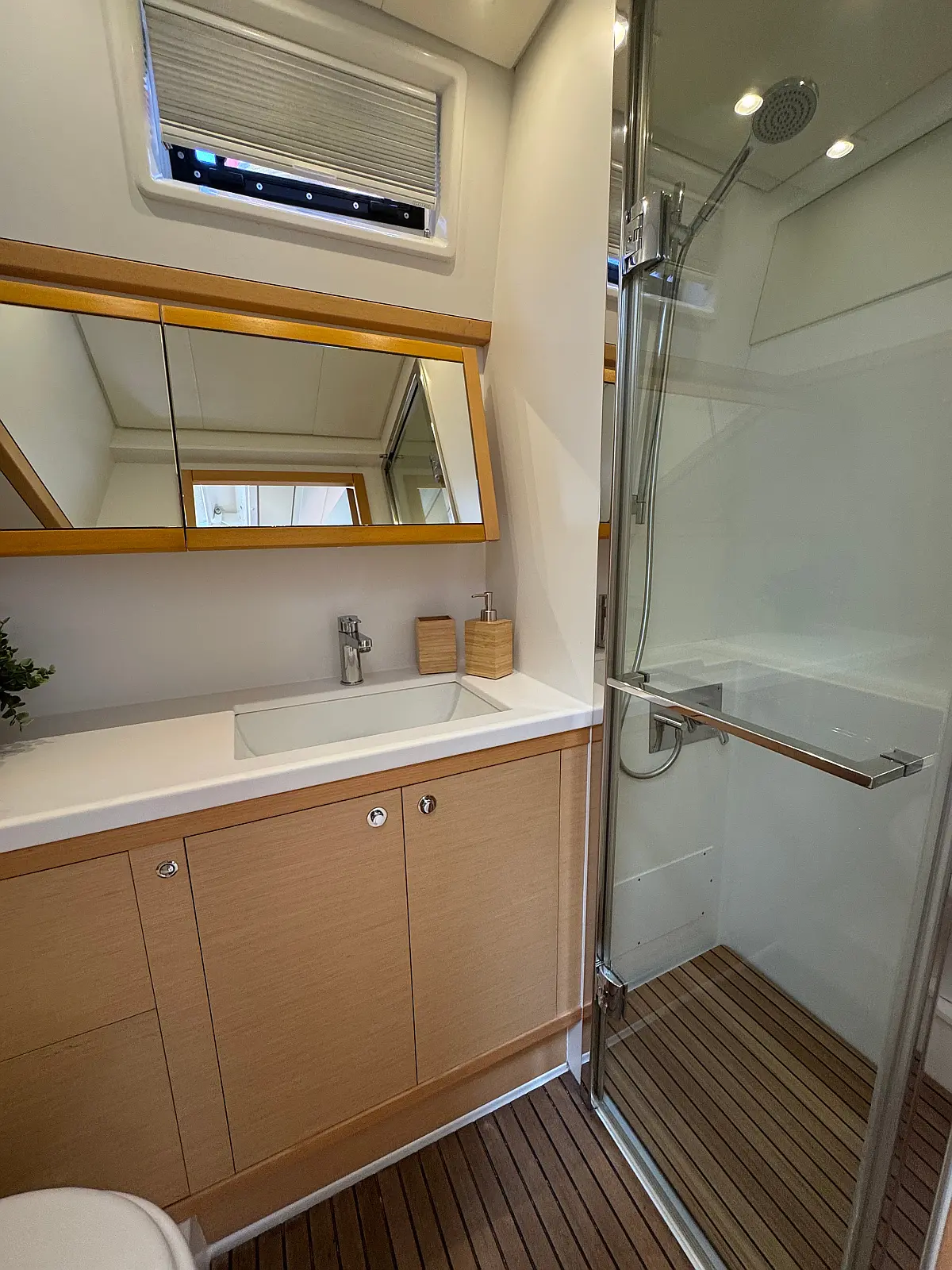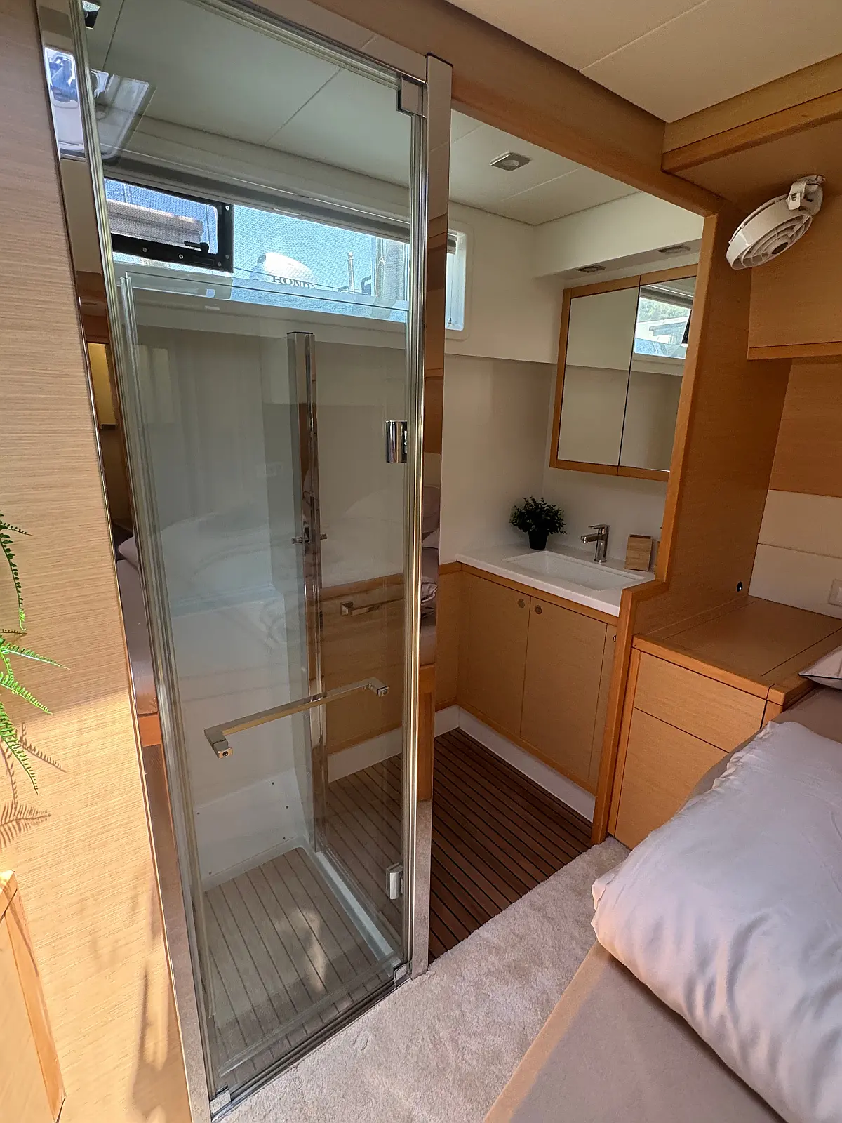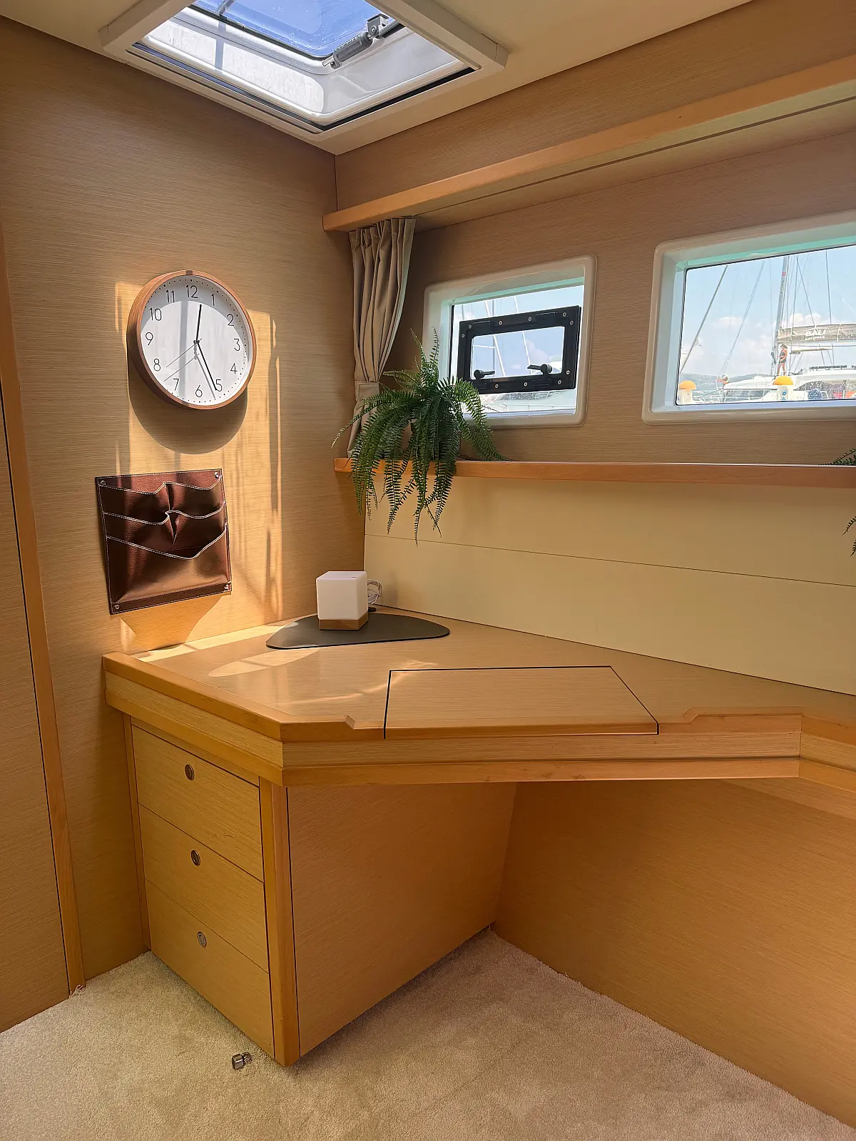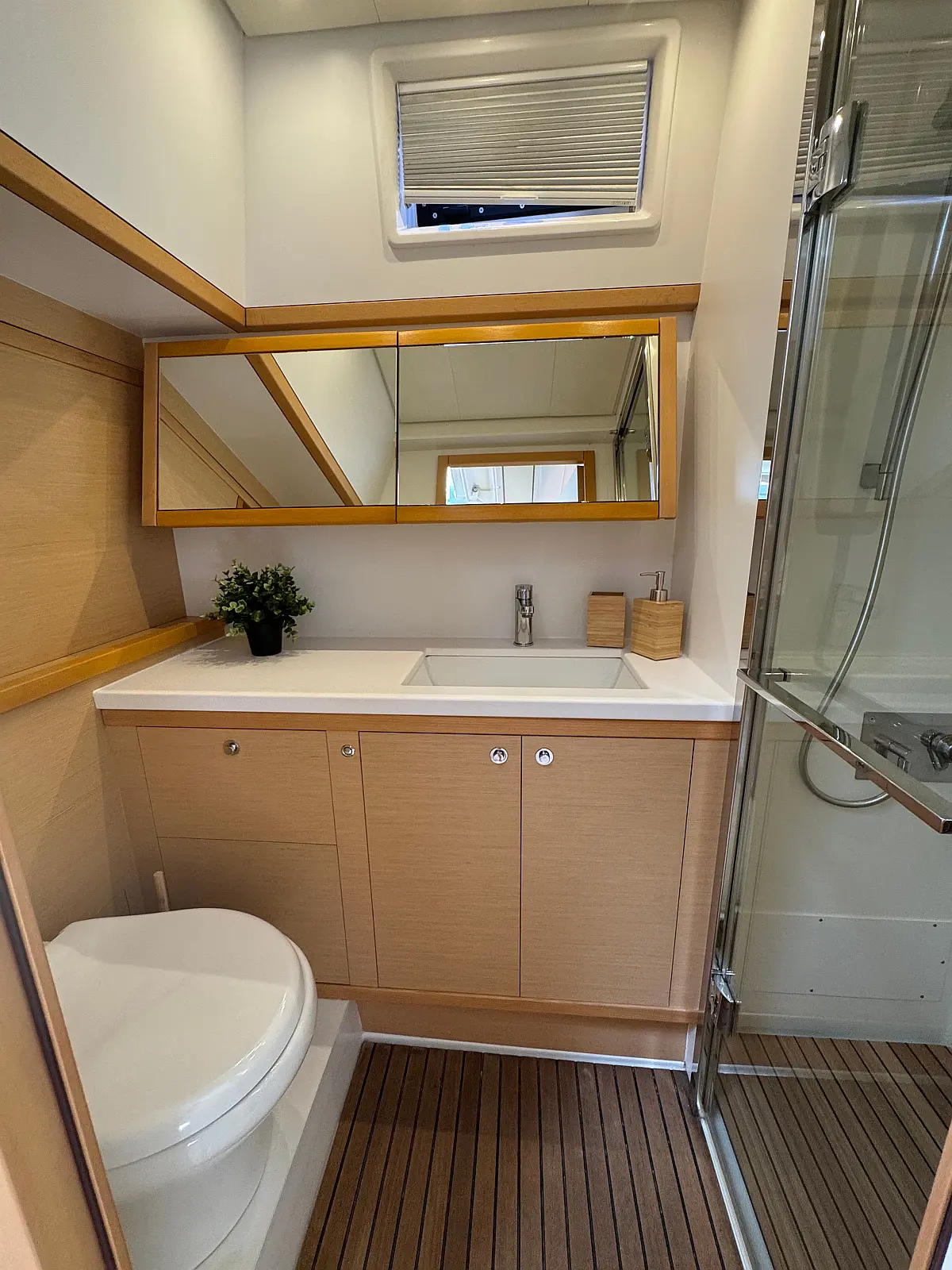 Desalinator, Generator, Klima, Električni wc, Inverter, Električni vitli, Bimini, teak kokpit, Pomožni čoln, Blazine v kokpitu, Aparat za kavo