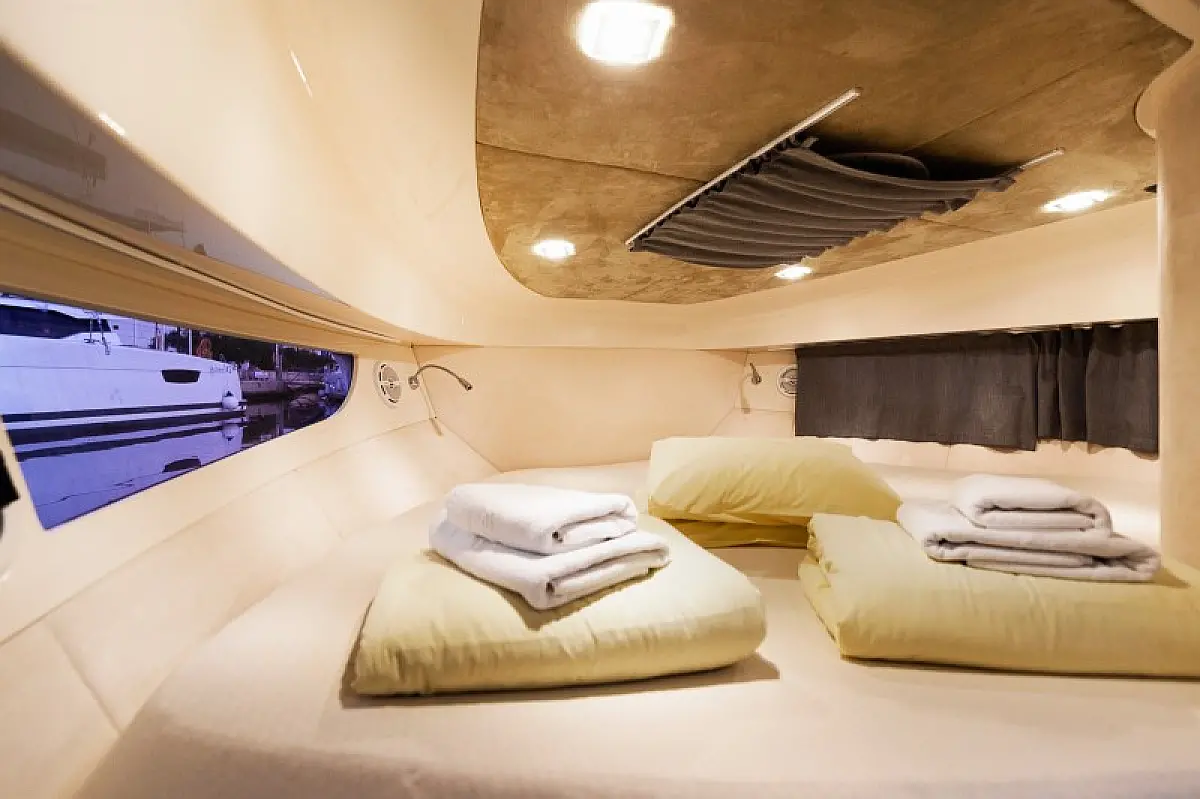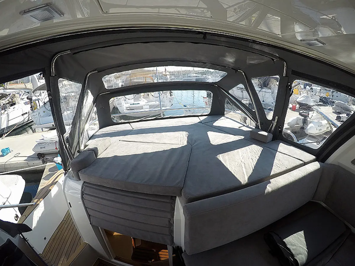 Gretje, sončni kolektorji, Hladilnik, Blazine v kokpitu, Izvenkrmni motor, Pomožni čoln, Wi-Fi in internet