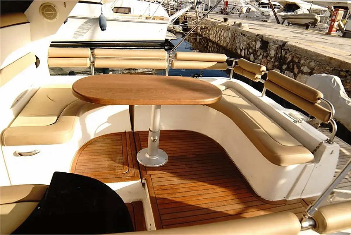 teak kokpit, Blazine v kokpitu, Žar v kokpitu, Črni tank, Bimini, Sprayhood, Klima, Generator, Zvočniki v kokpitu, Pomožni čoln, Ledomat, sončni kolektorji