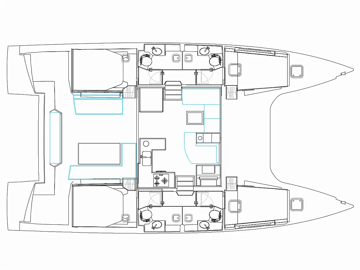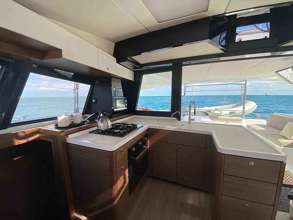 Klima, Desalinator, sončni kolektorji, Hladilnik, Pomožni čoln, Izvenkrmni motor, Električni vitli, Flybridge