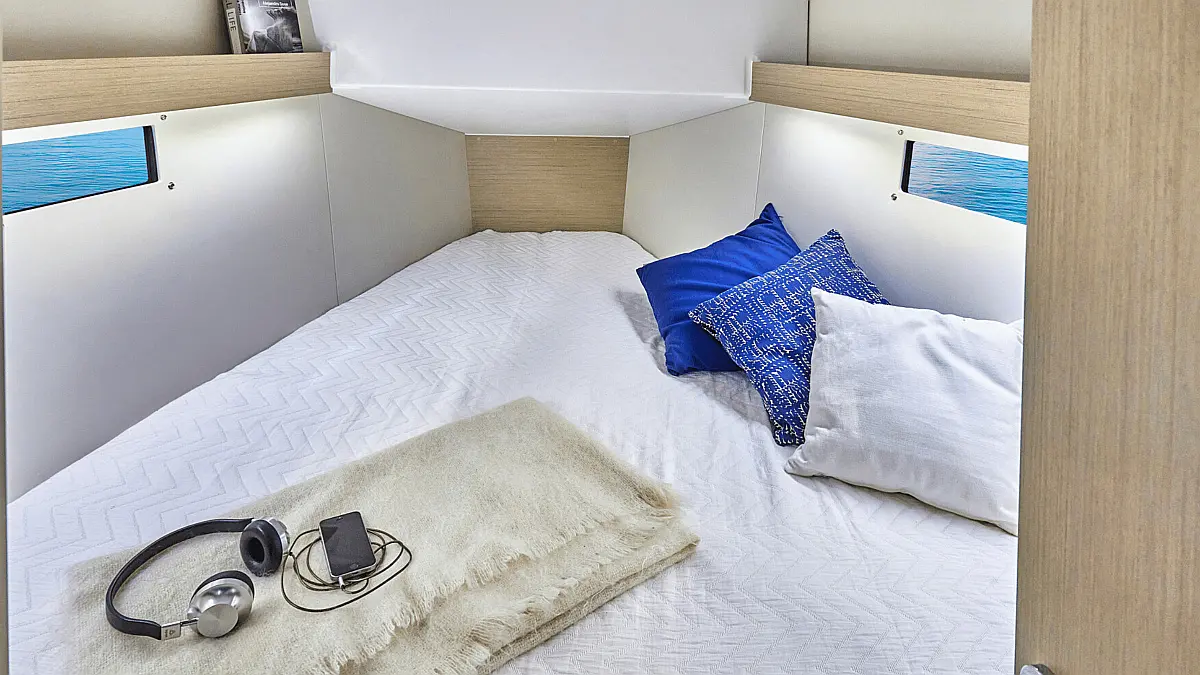 Hladilnik, Aparat za kavo, Bimini, Zvočniki v kokpitu, Blazine v kokpitu, Pomožni čoln