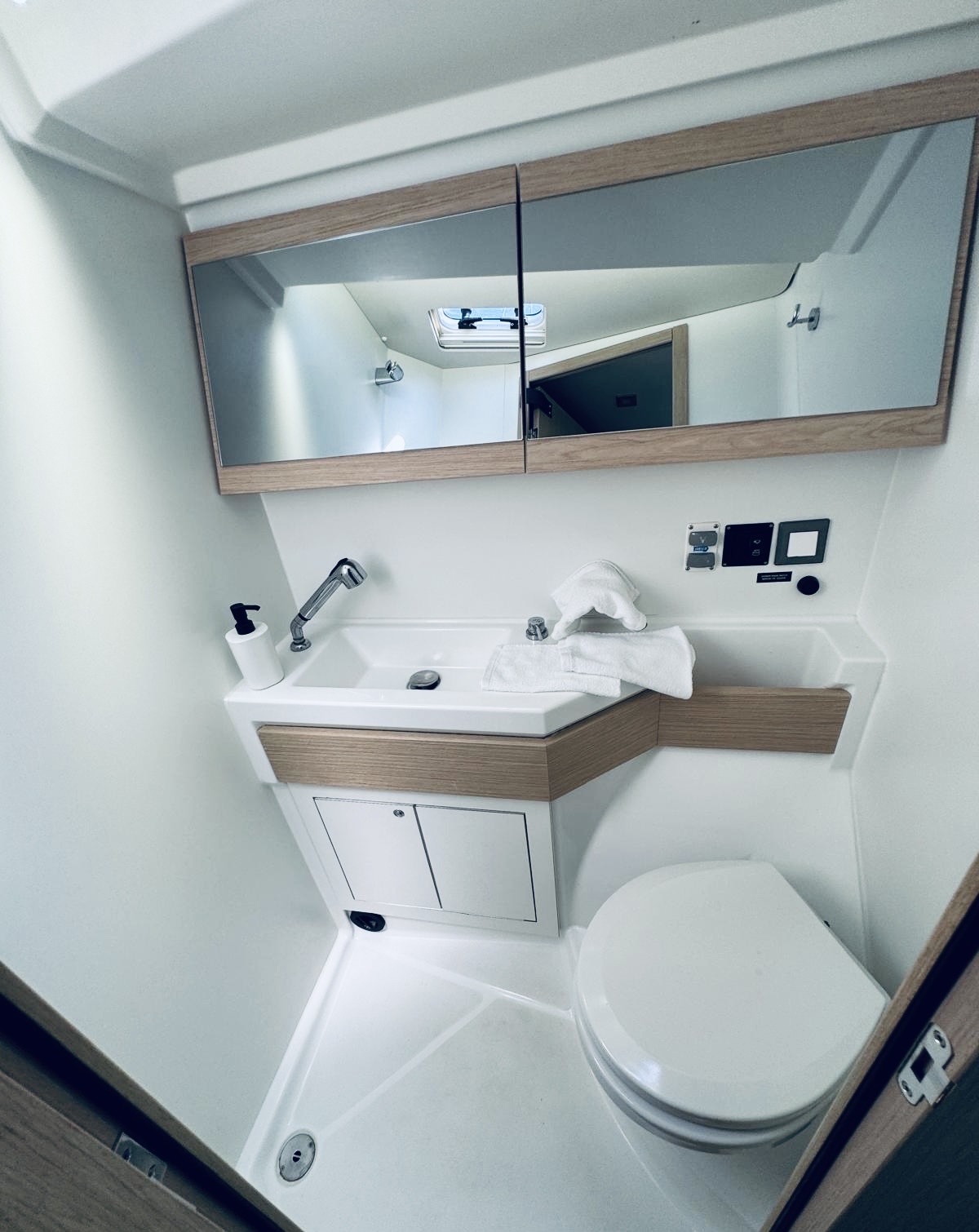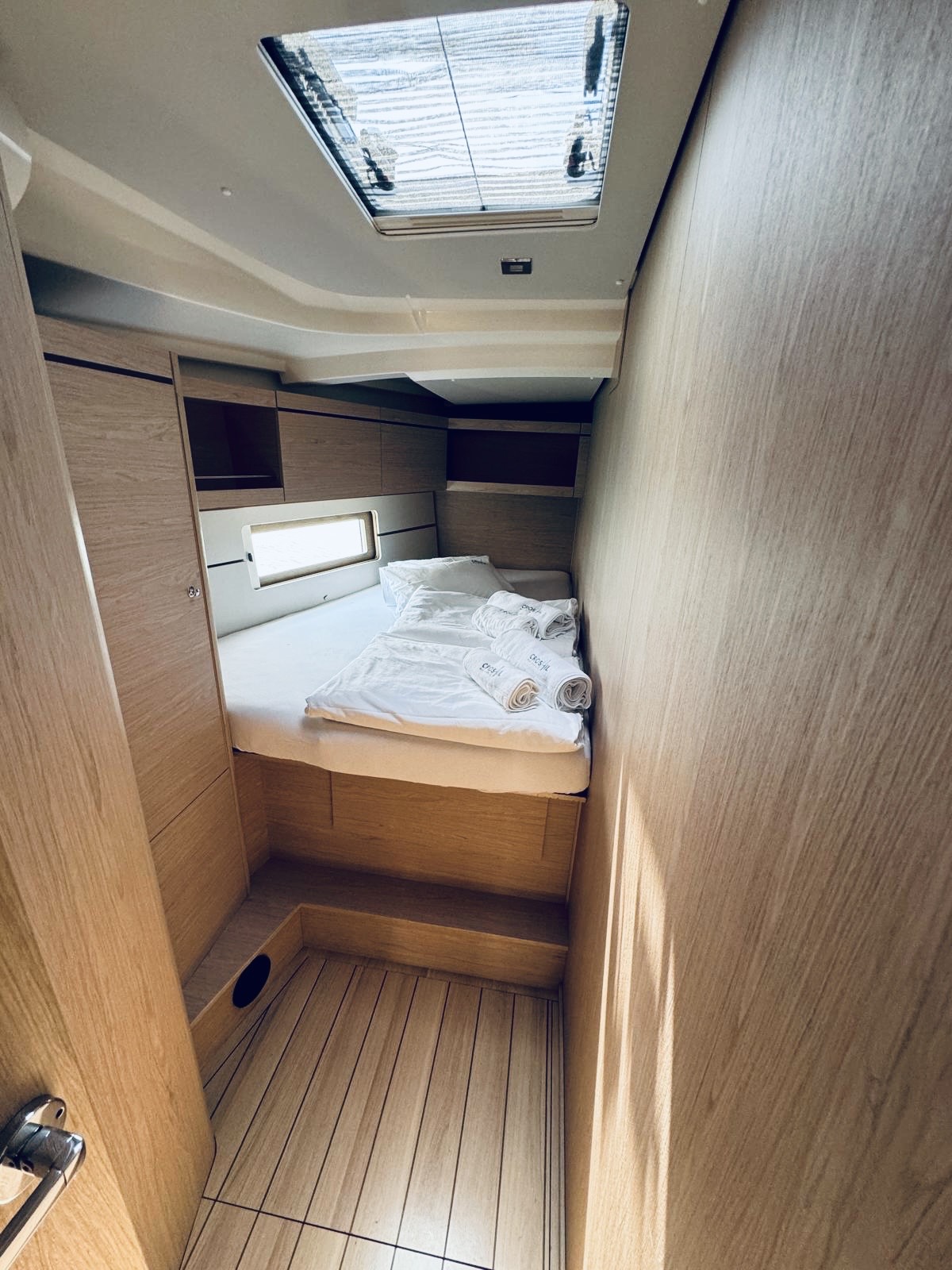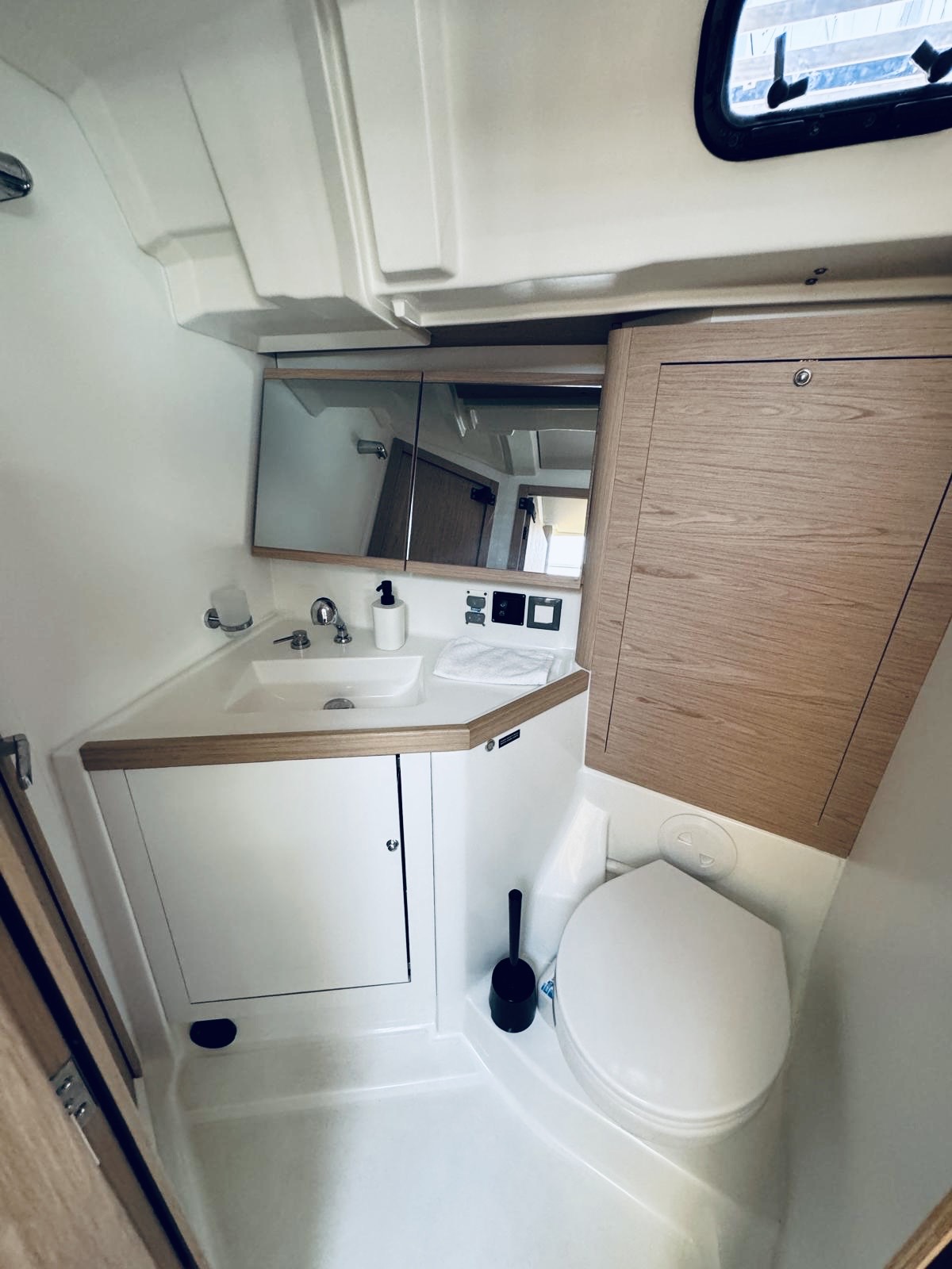 Električni wc, Klima, Pomožni čoln, Bimini, Sprayhood, Blazine v kokpitu, Hladilnik, Zvočniki v kokpitu, sončni kolektorji