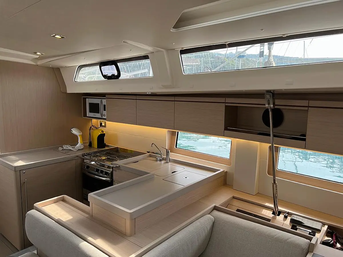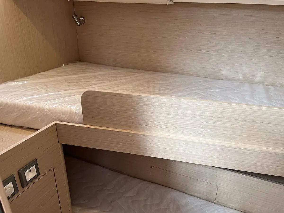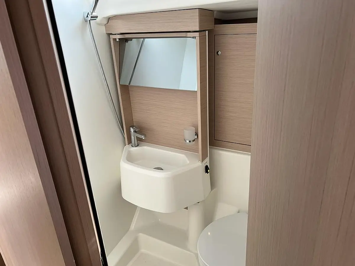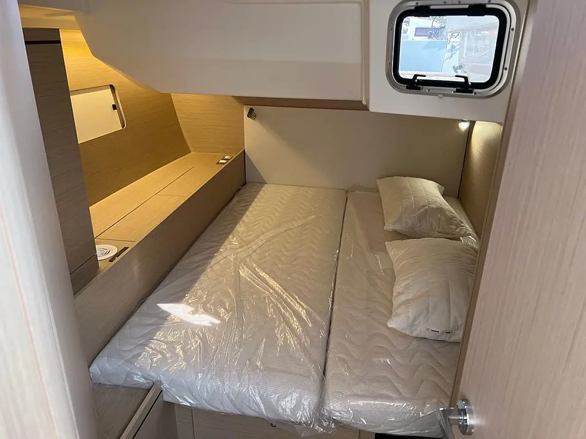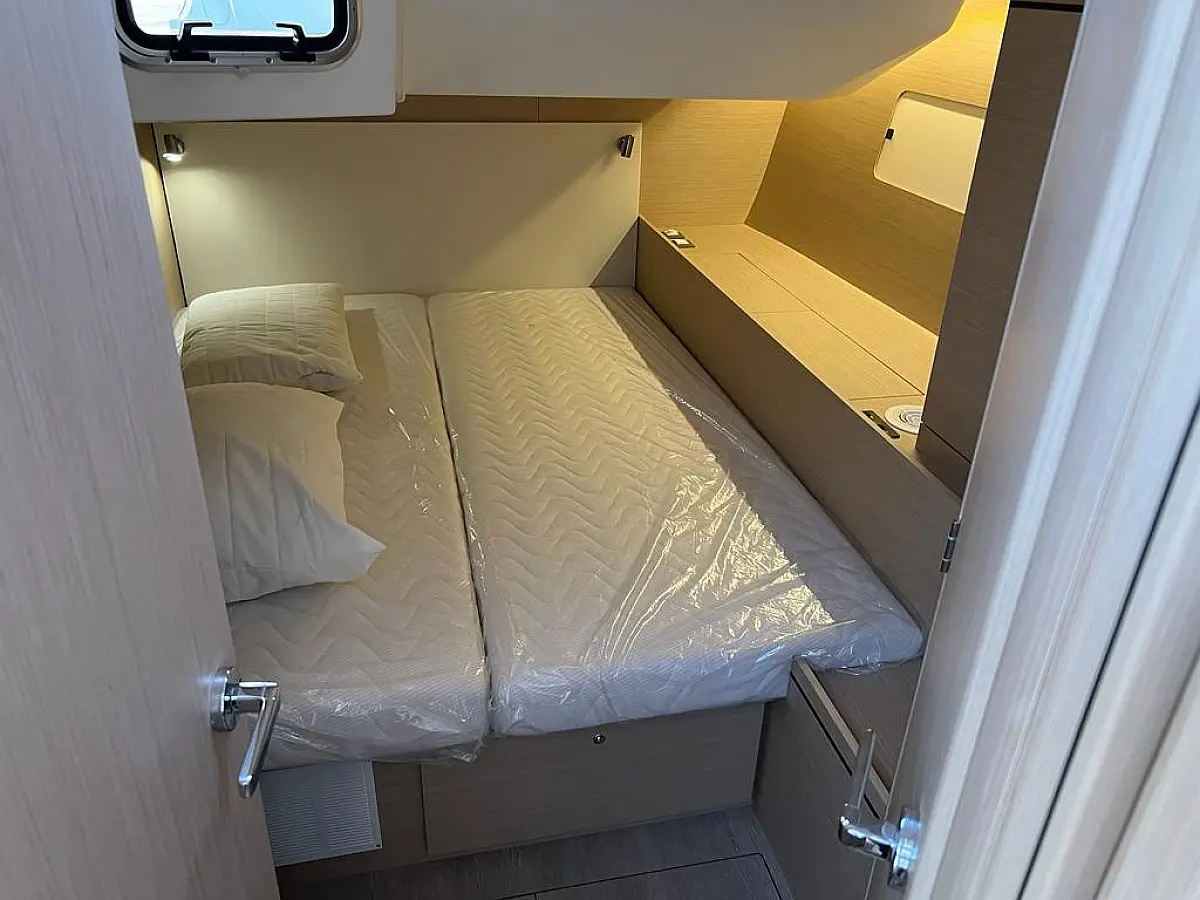 Hladilnik, Pomožni čoln, Bimini, Zvočniki v kokpitu, Črni tank, Sprayhood, Kopalna ploščad, Blazine v kokpitu, Generator, Klima, Desalinator, Inverter, Aparat za kavo, Električni wc