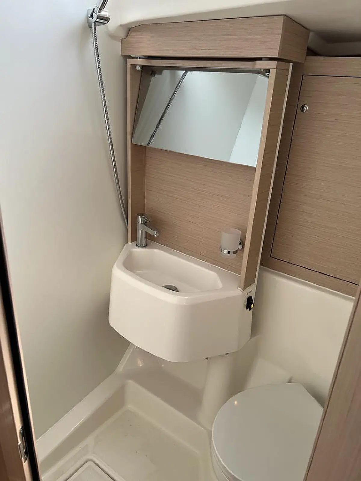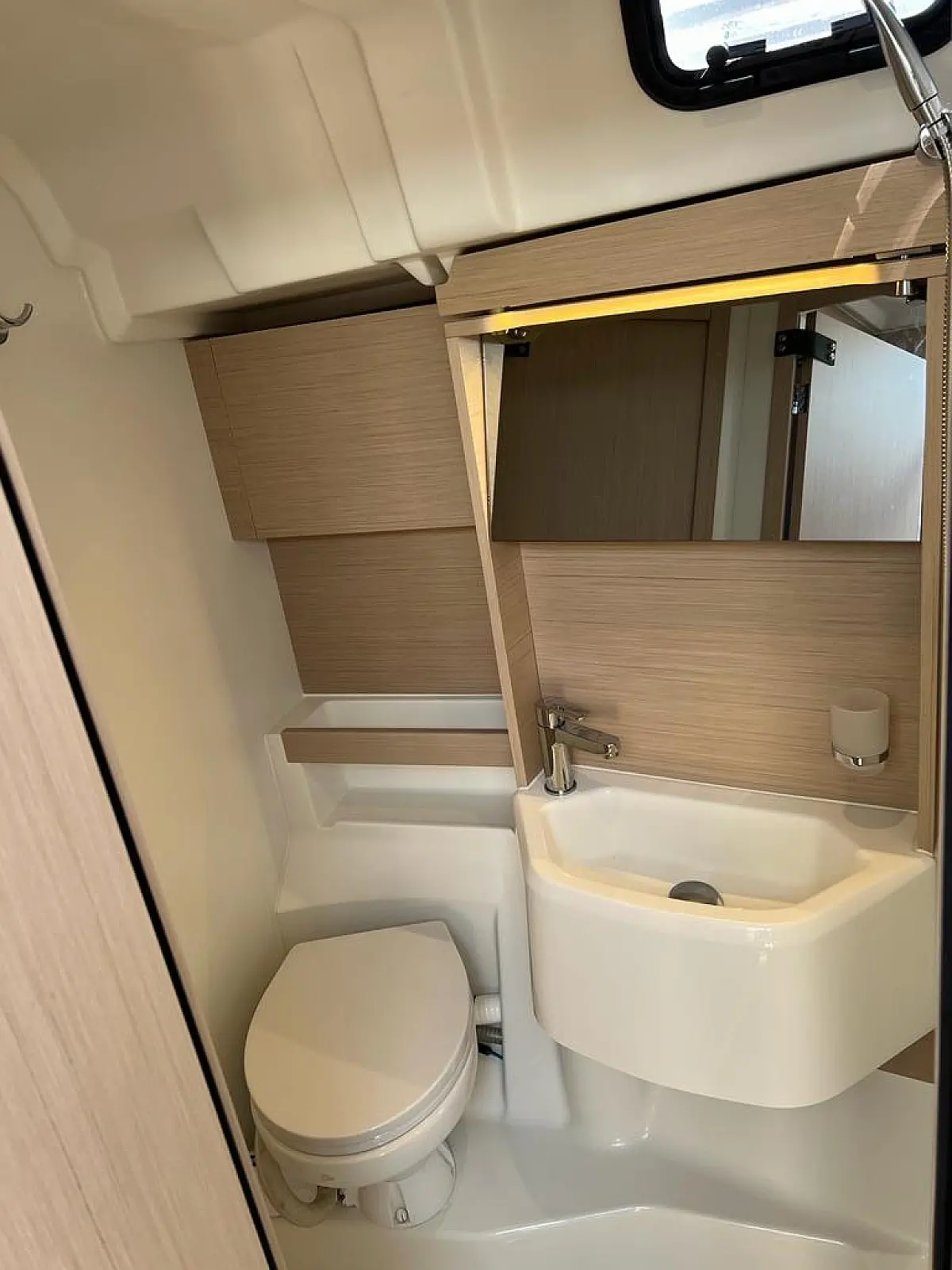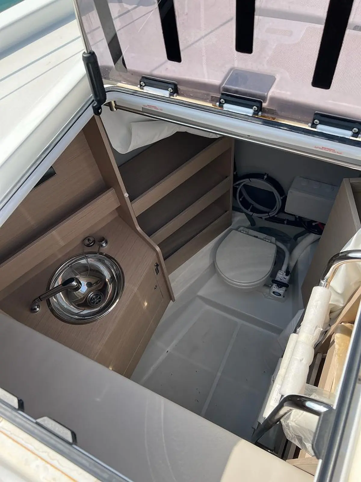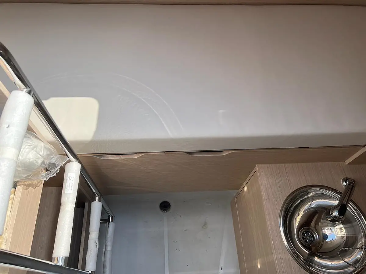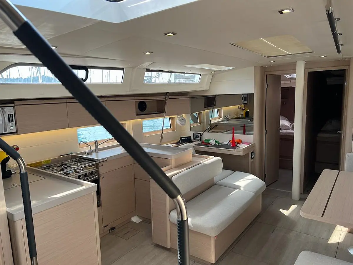 Hladilnik, Pomožni čoln, Bimini, Zvočniki v kokpitu, Črni tank, Sprayhood, Kopalna ploščad, Blazine v kokpitu, Generator, Klima, Desalinator, Inverter, Aparat za kavo, Električni wc