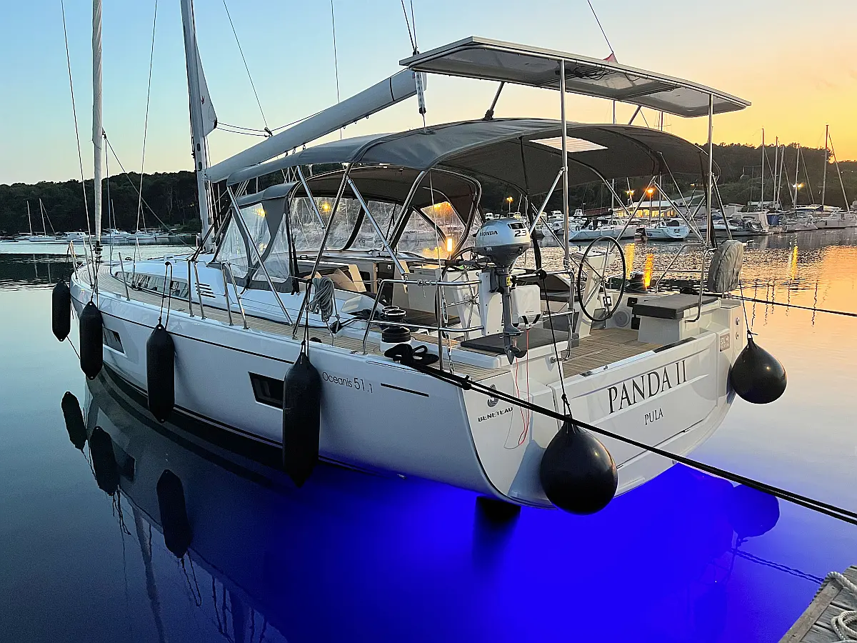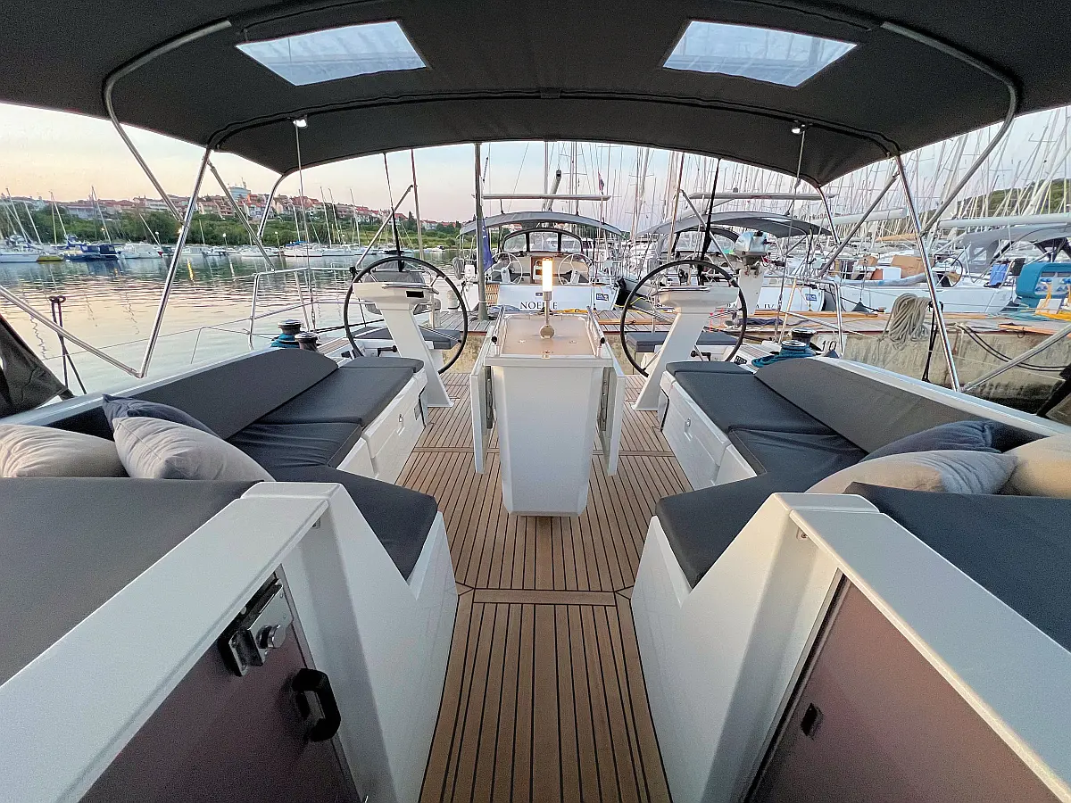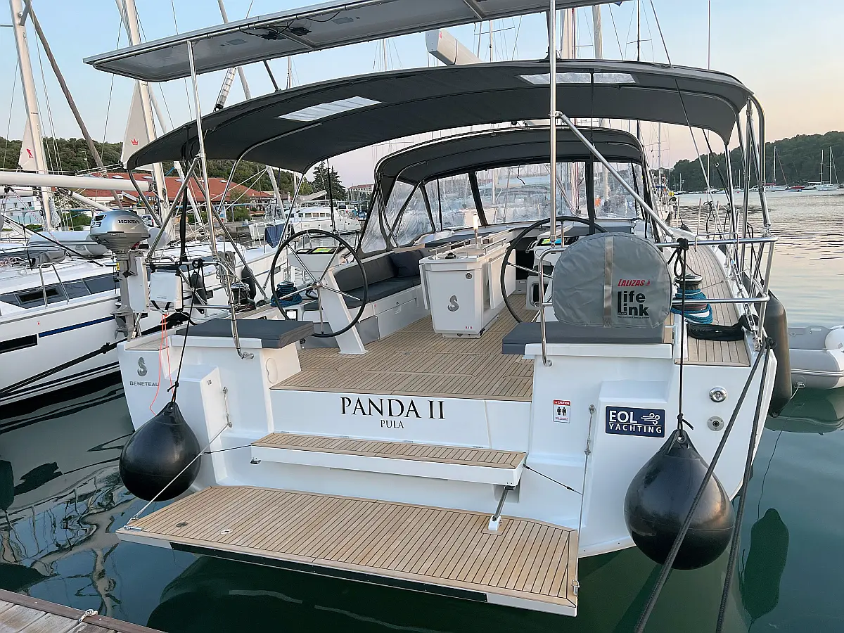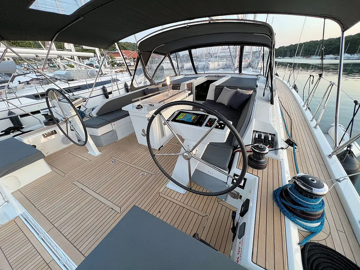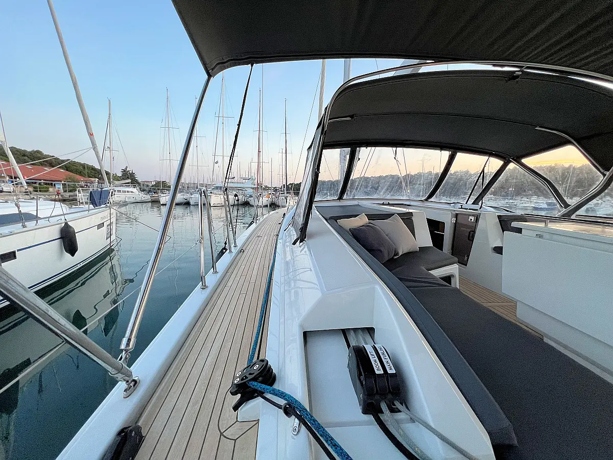 Zvočniki v kokpitu, Črni tank, Bimini, Blazine v kokpitu, Pomožni čoln, Sprayhood, teak kokpit, Teak paluba, Hladilnik, Gretje, sončni kolektorji