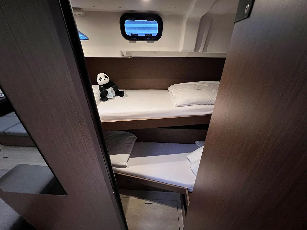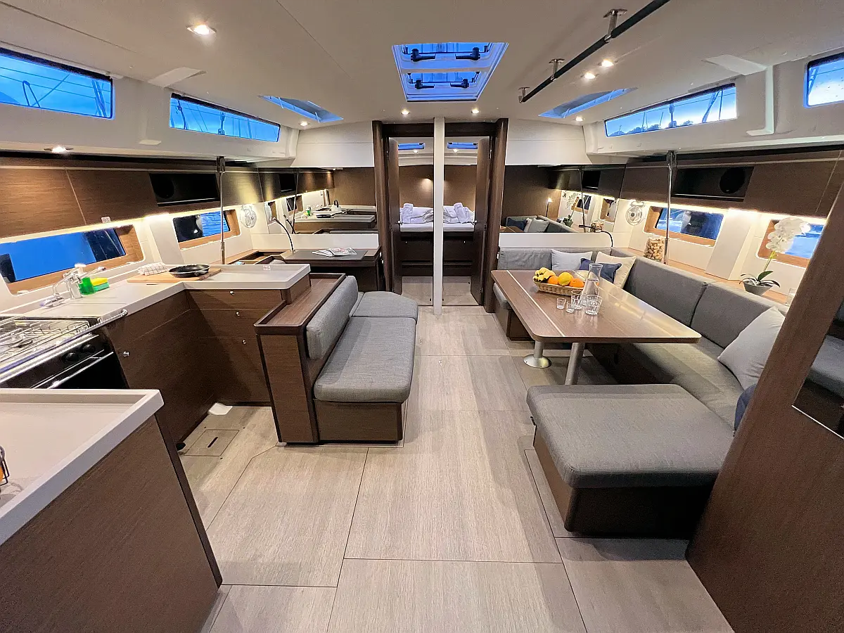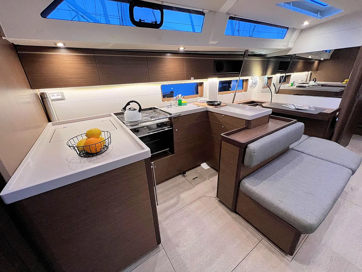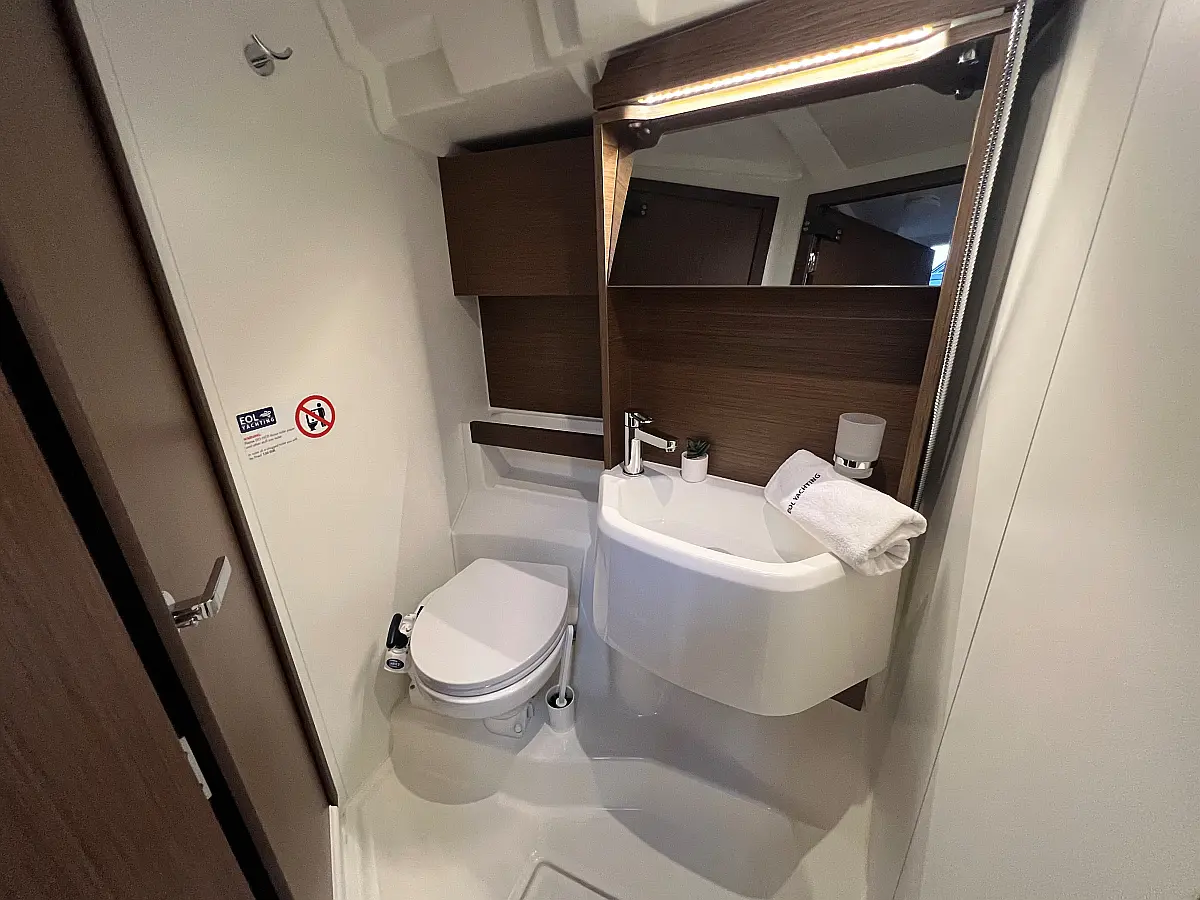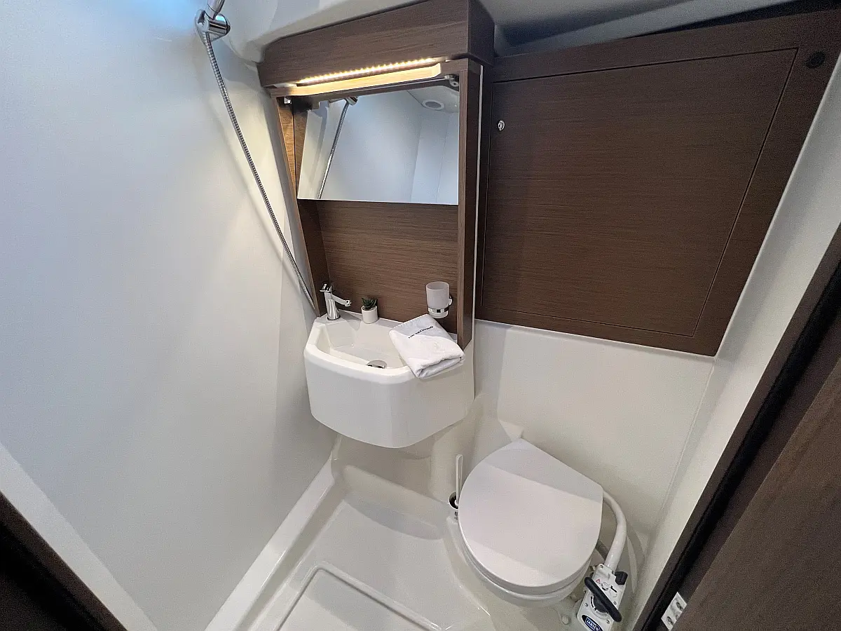Zvočniki v kokpitu, Črni tank, Bimini, Blazine v kokpitu, Pomožni čoln, Sprayhood, teak kokpit, Teak paluba, Hladilnik, Gretje, sončni kolektorji