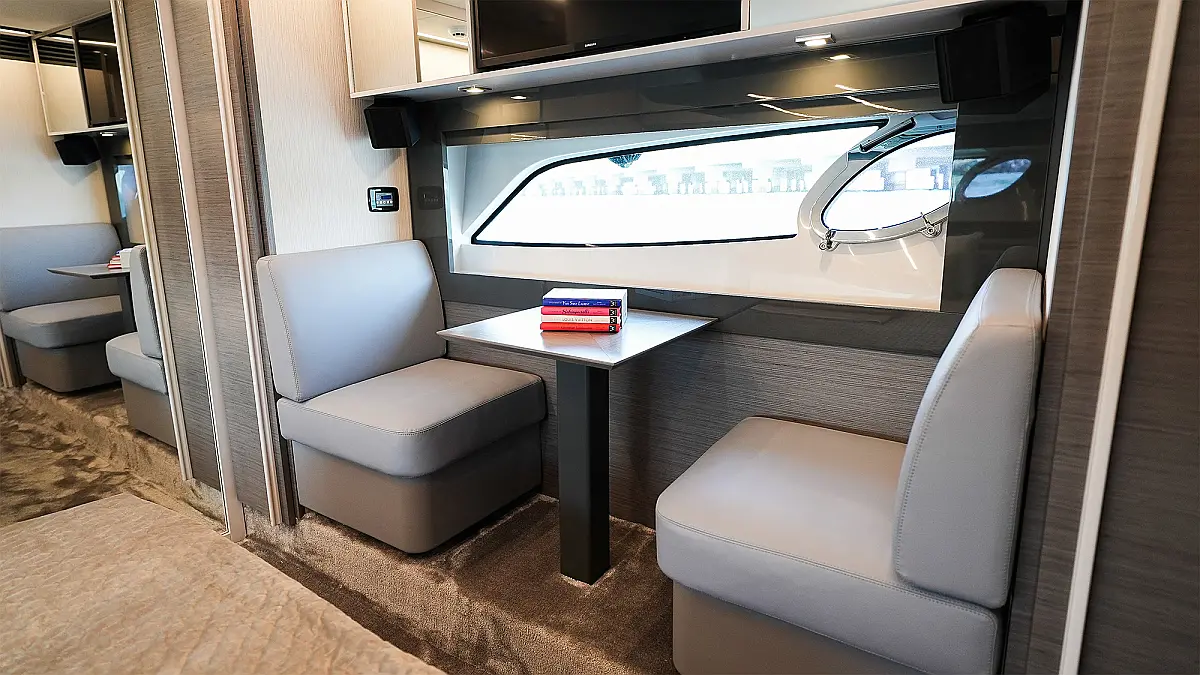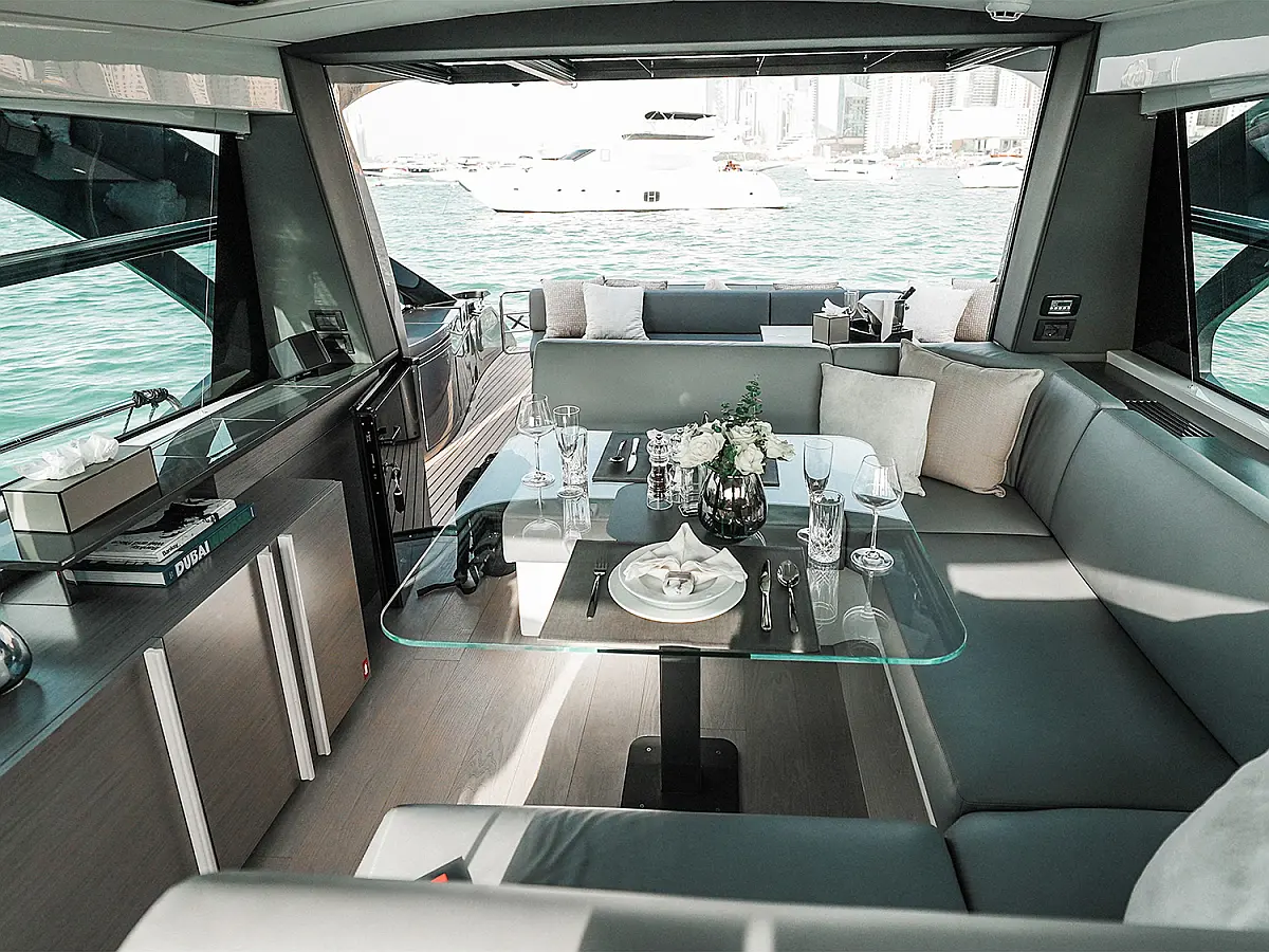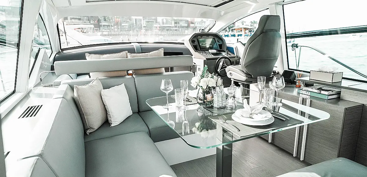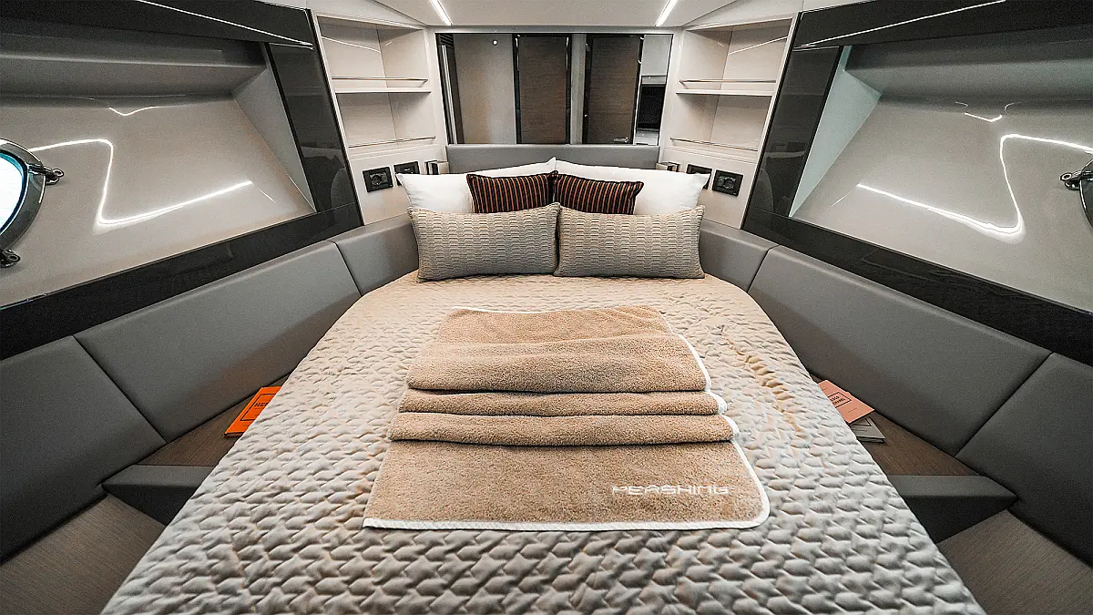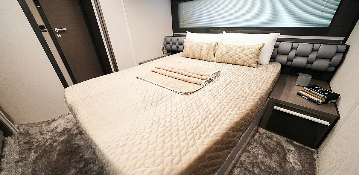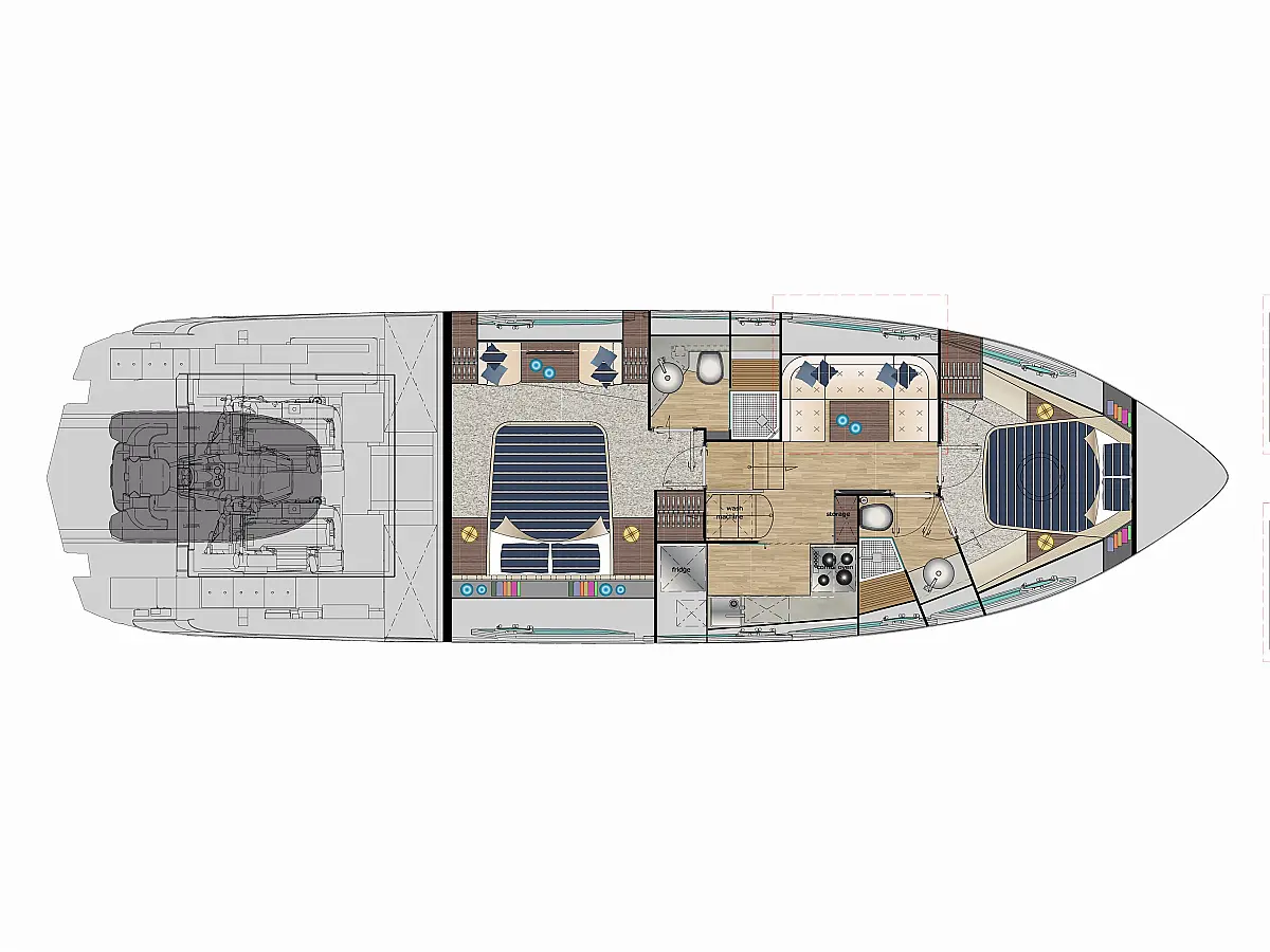 Klima, Gretje, Aparat za kavo, Hladilnik, Desalinator, Ledomat, Električni wc, Bimini, Pomožni čoln, Električni vitli, Generator, Flybridge, Inverter
