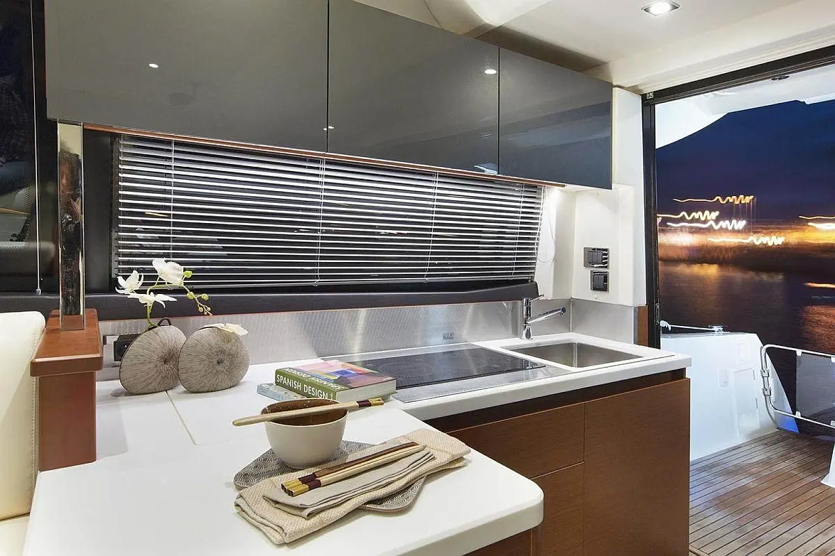 Teak paluba, Hladilnik, Flybridge, Wi-Fi in internet, Generator, Klima, Pomivalni stroj, Aparat za kavo