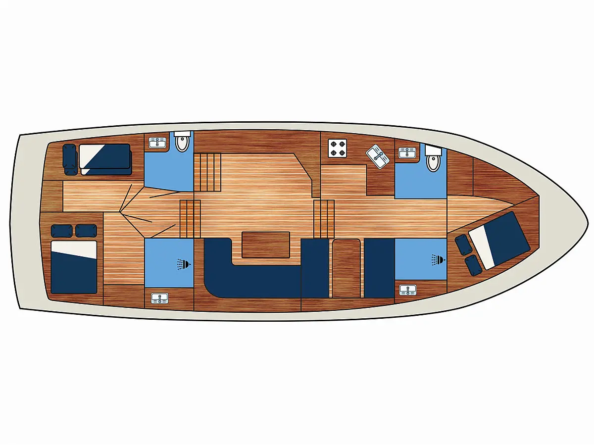 12.15 m dolga Motorni čoln Renal 40, izdelana leta 2000, je idealna jahta za raziskovanje Nizozemska. S 3 udobnimi kabinami, 2 WC/Tuš in dovolj ležišč za do 8 (6+2) gostov zagotavlja dovolj prostora za sprostitev in zabavo. Ta jahta je na voljo za najem.