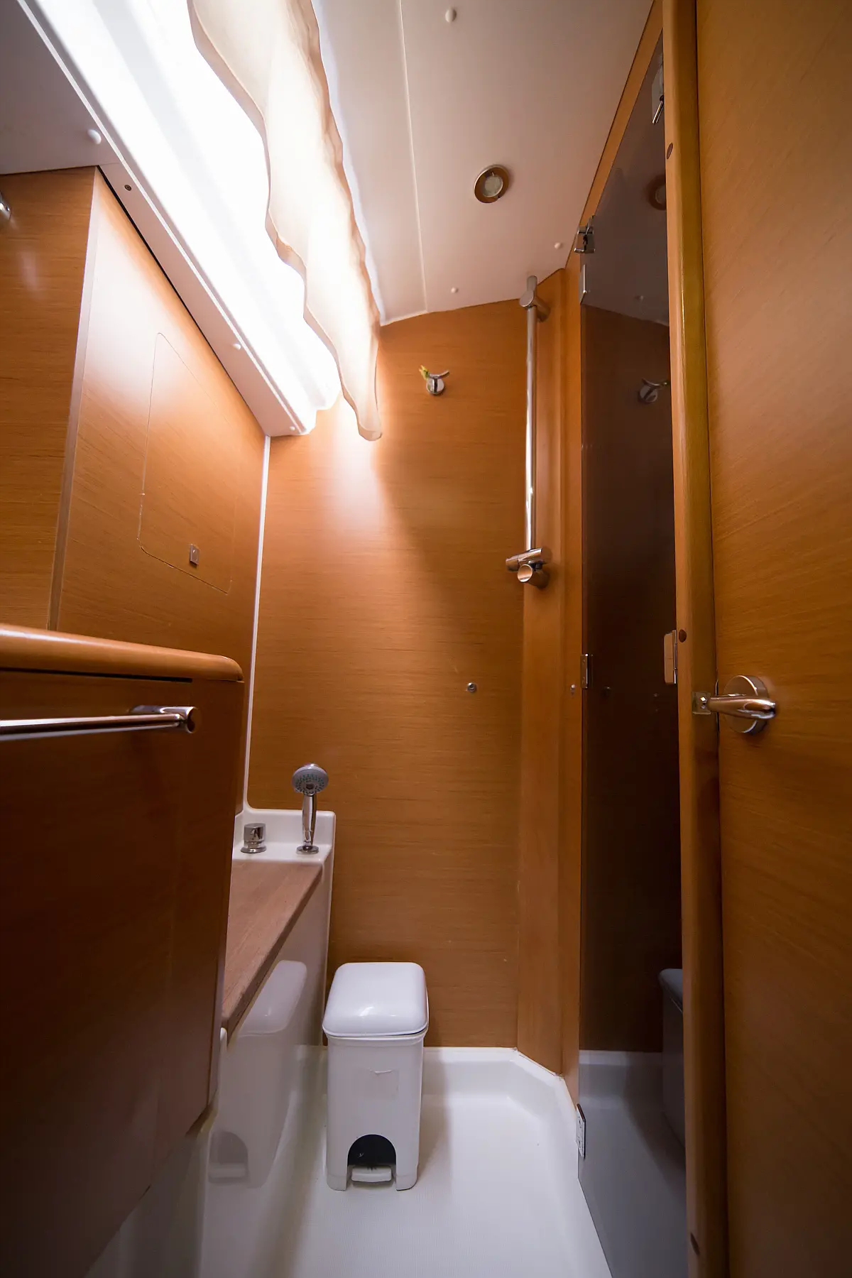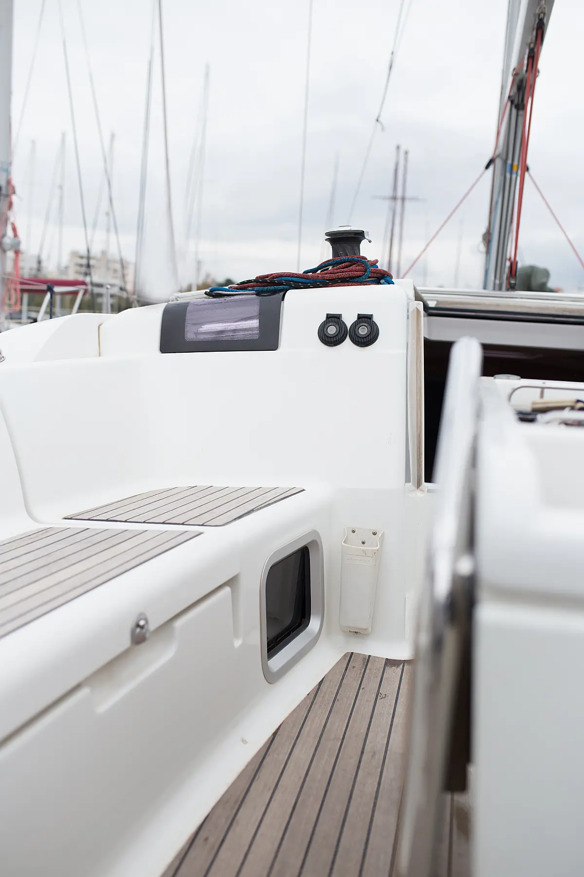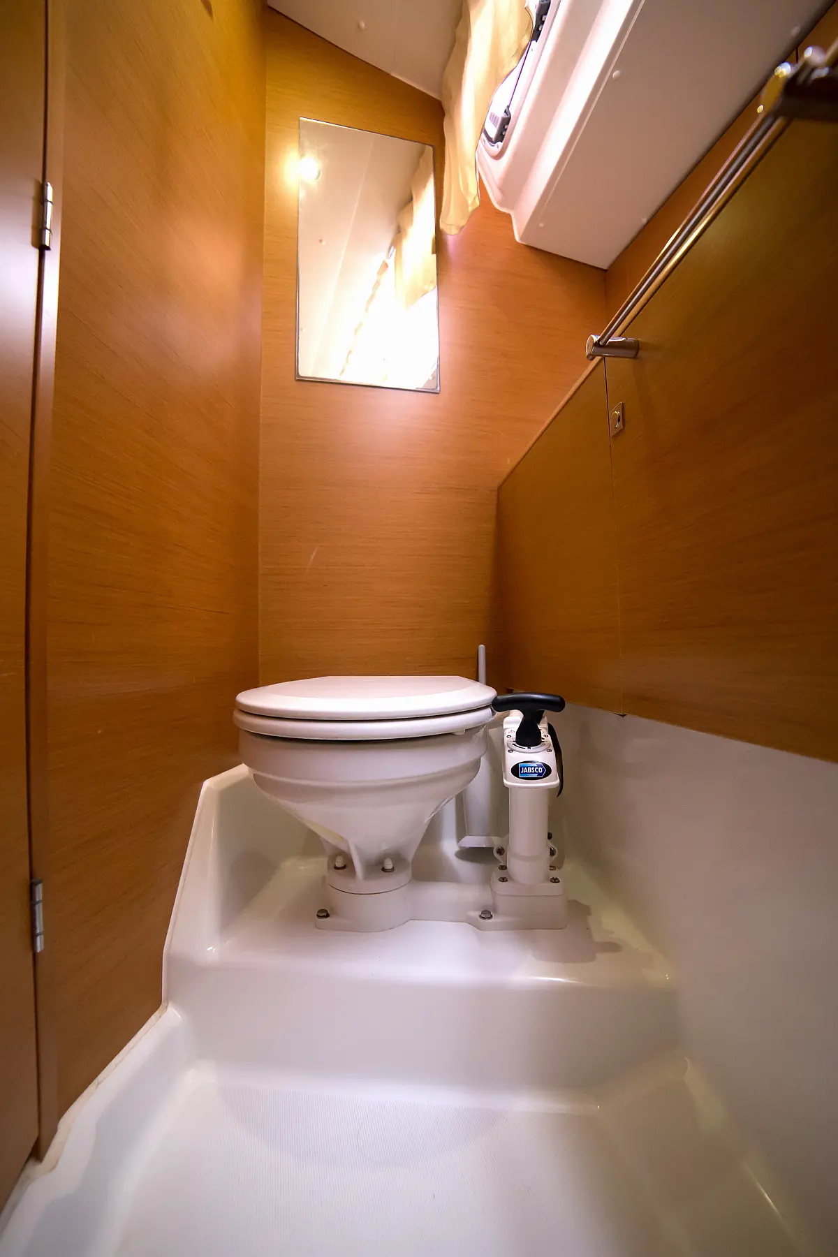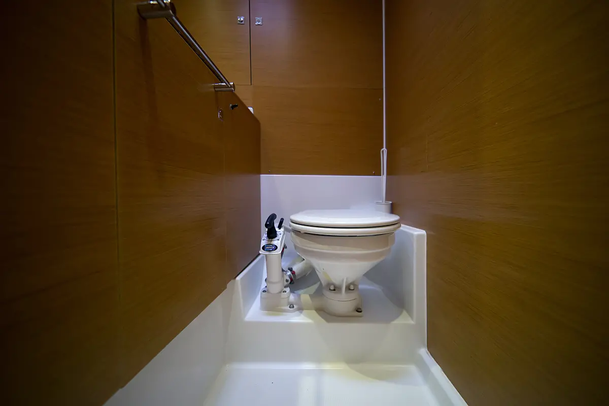Teak paluba, Električni wc, Izvenkrmni motor, Električni vitli, Hladilnik, Sprayhood