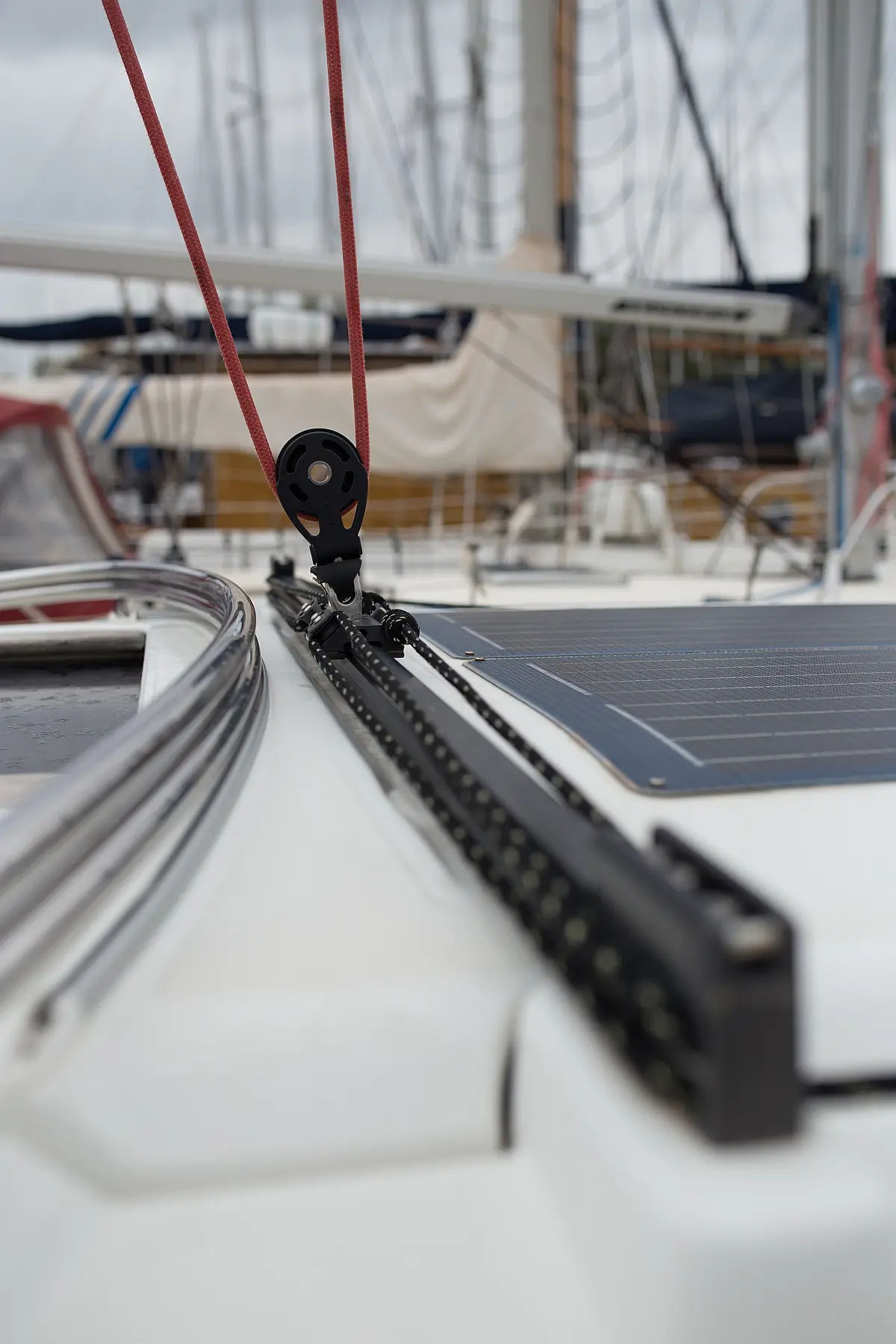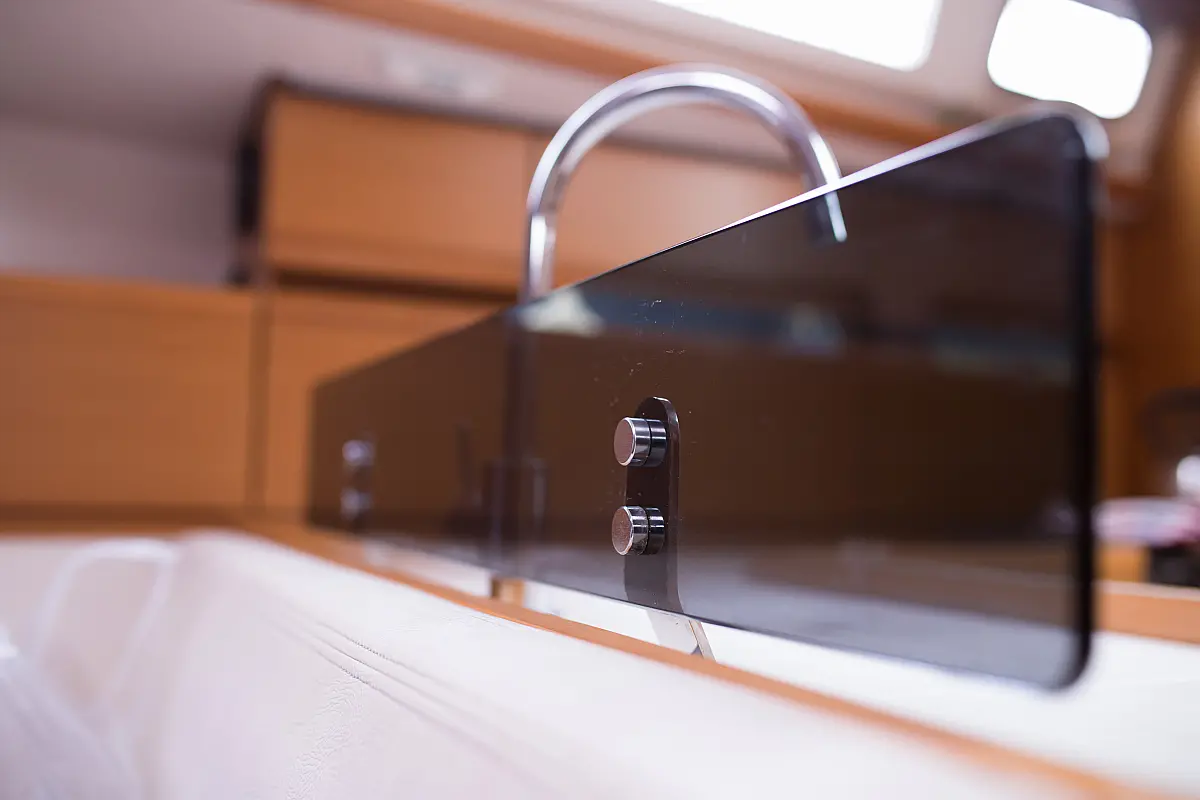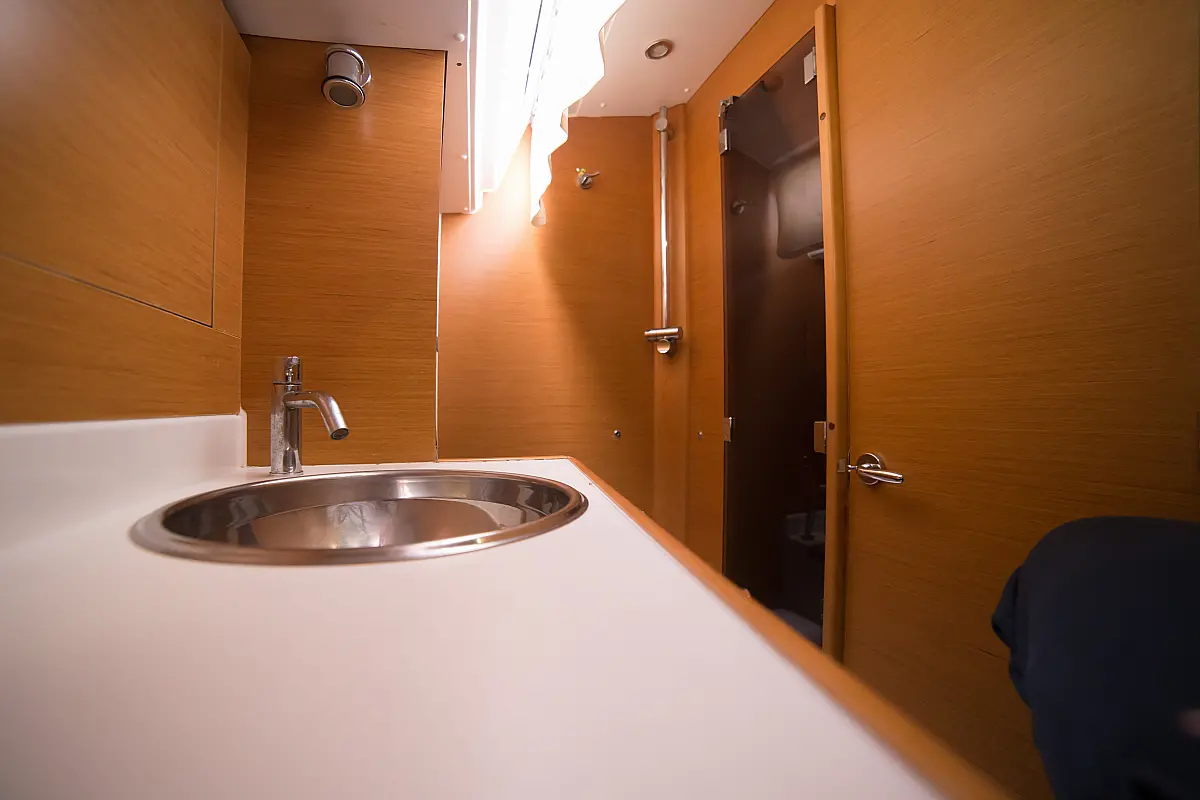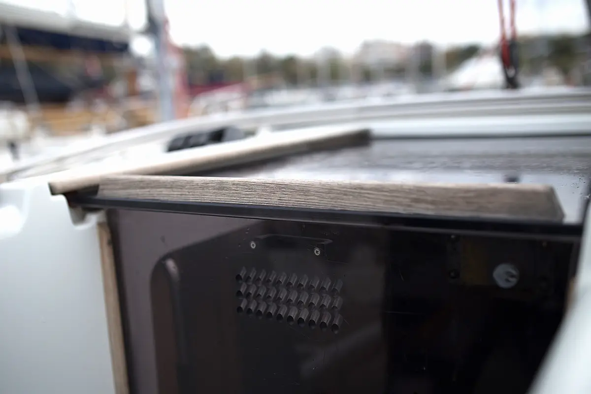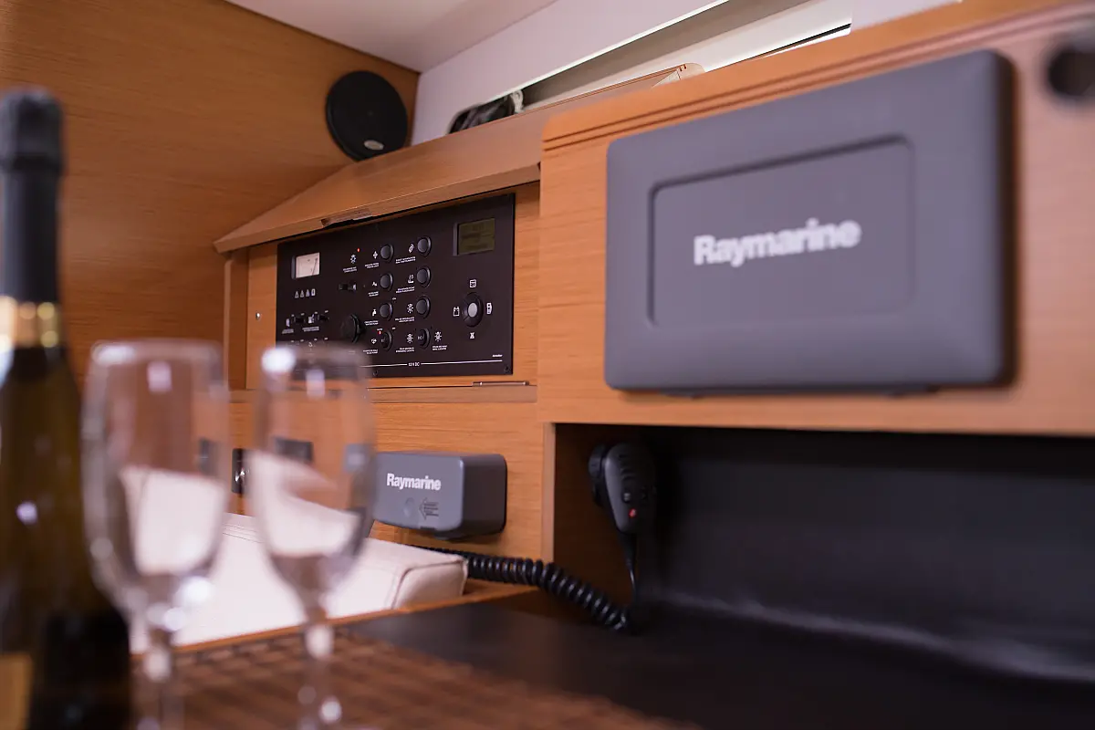 Teak paluba, Električni wc, Izvenkrmni motor, Električni vitli, Hladilnik, Sprayhood