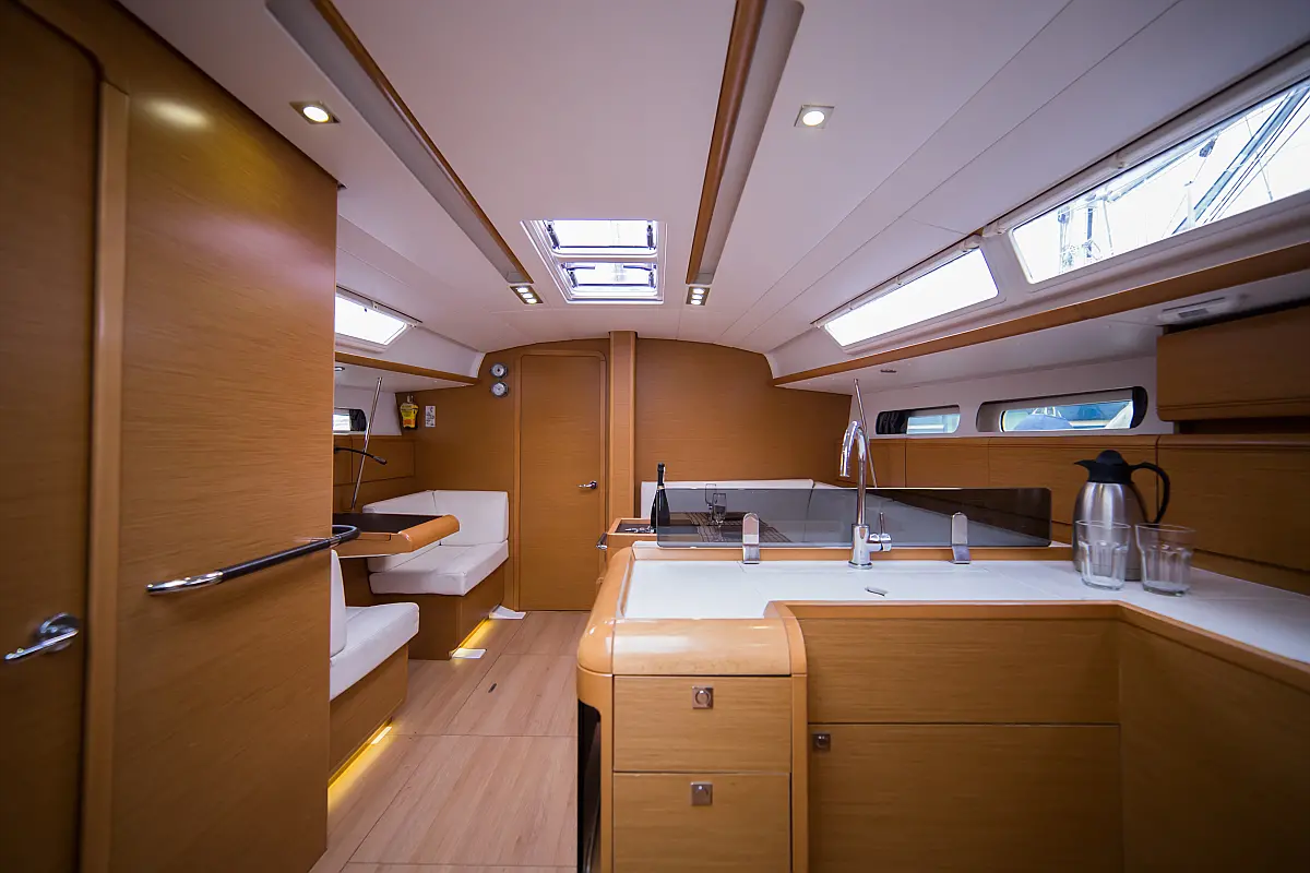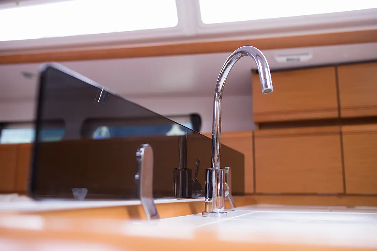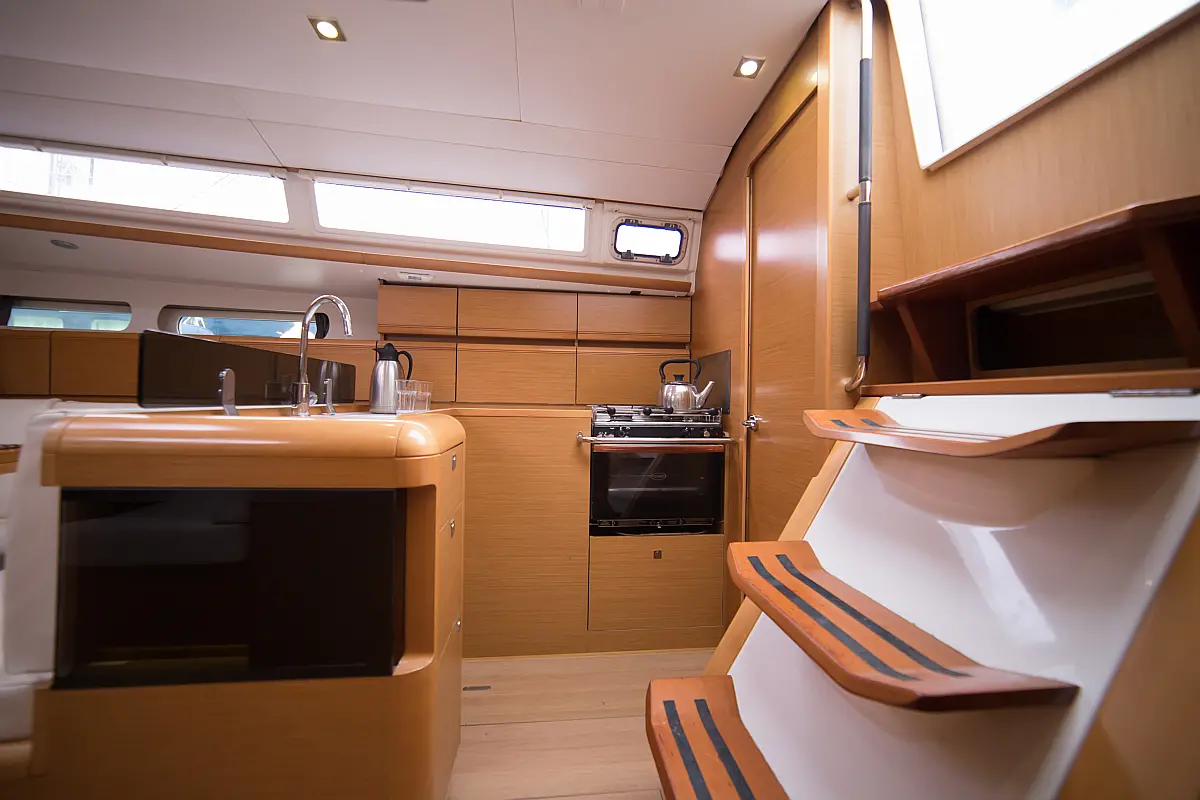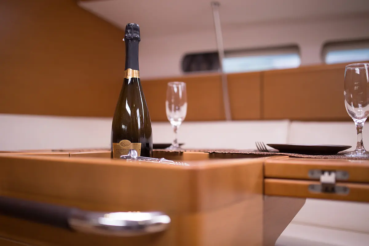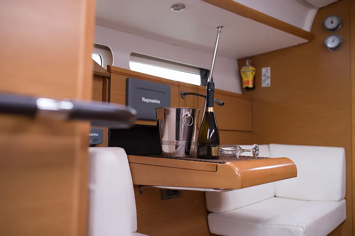 Teak paluba, Električni wc, Izvenkrmni motor, Električni vitli, Hladilnik, Sprayhood