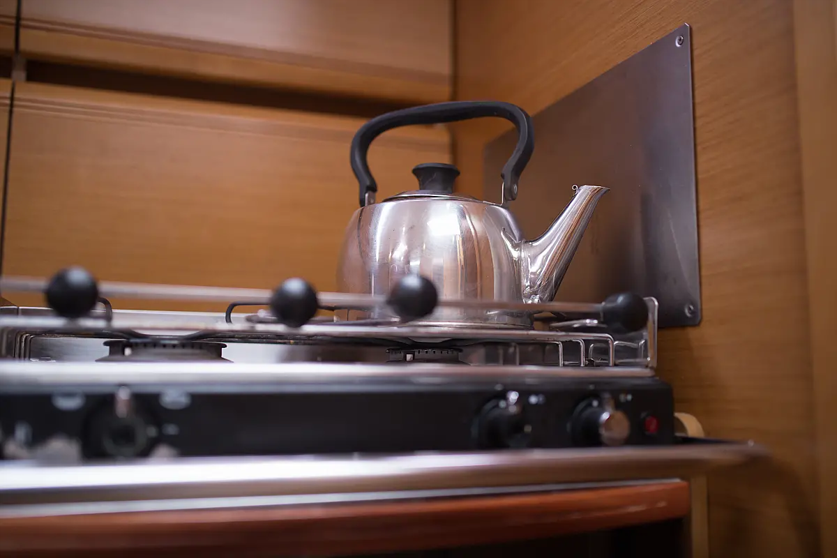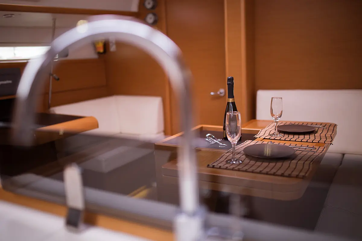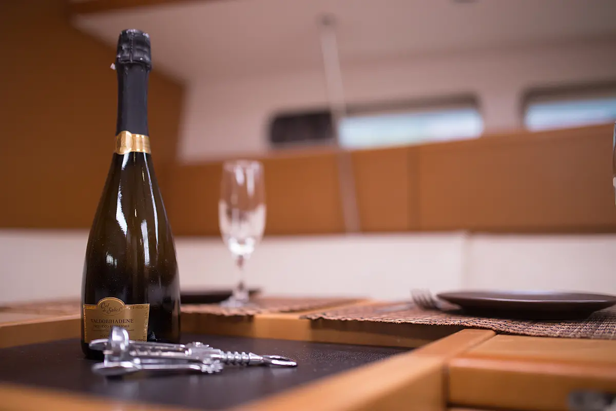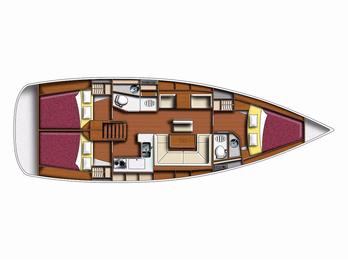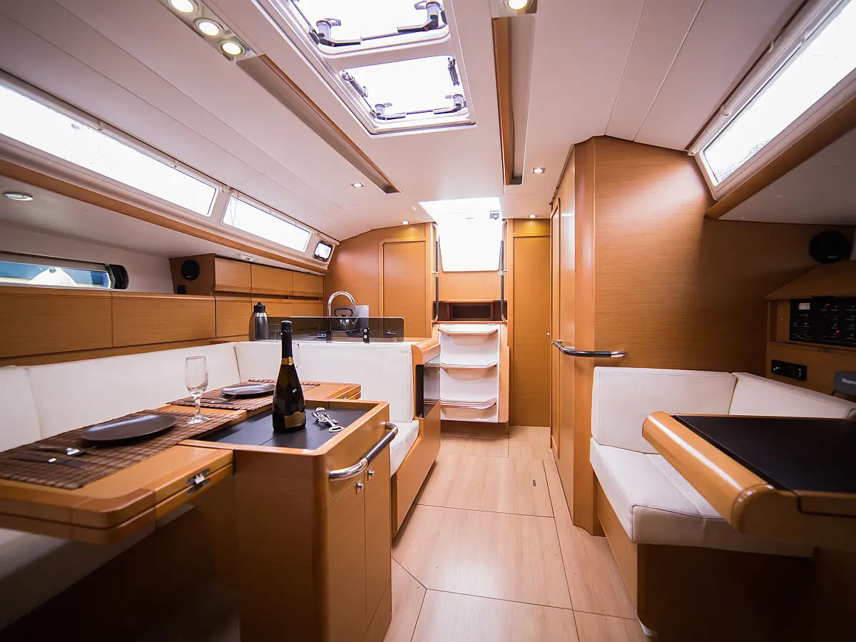 Teak paluba, Električni wc, Izvenkrmni motor, Električni vitli, Hladilnik, Sprayhood