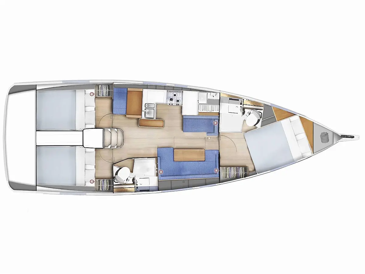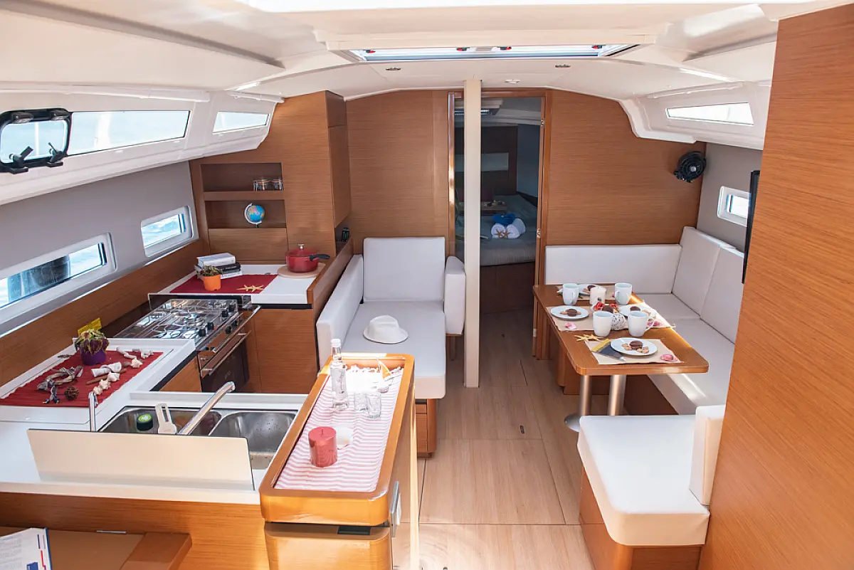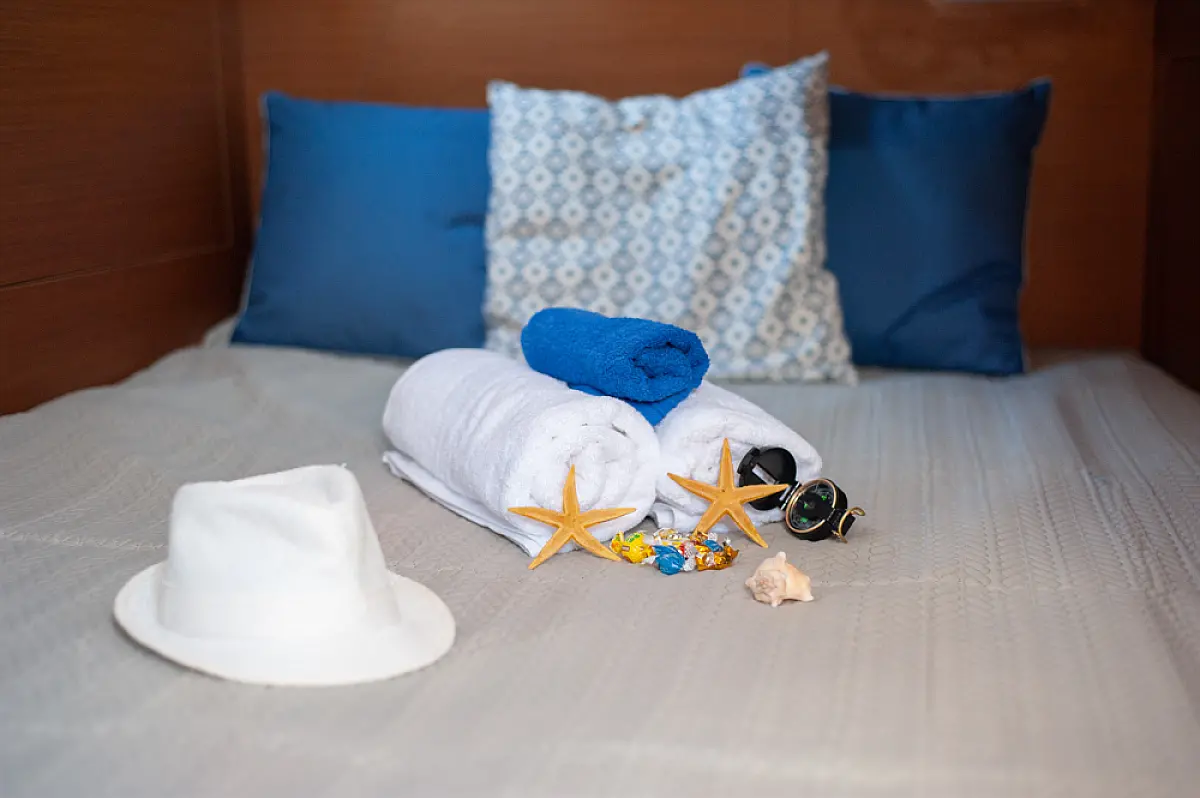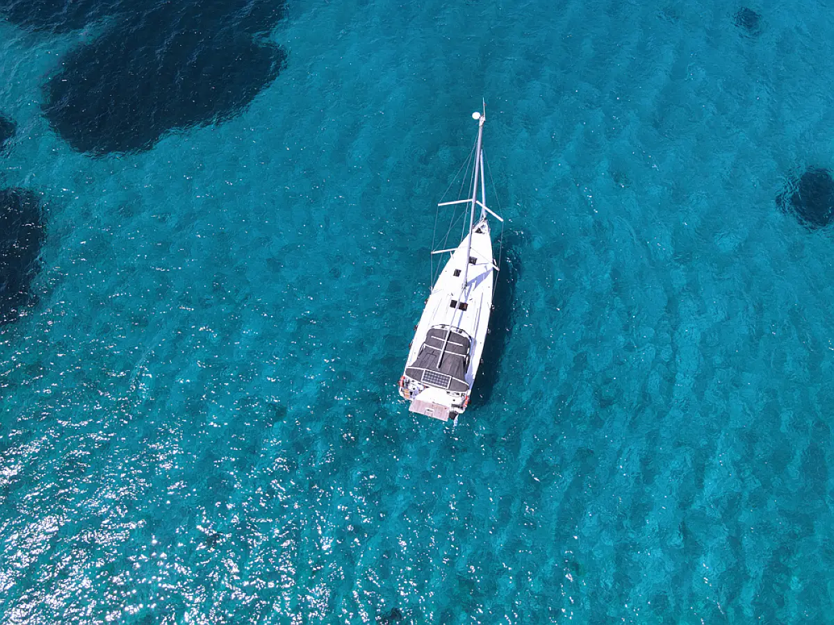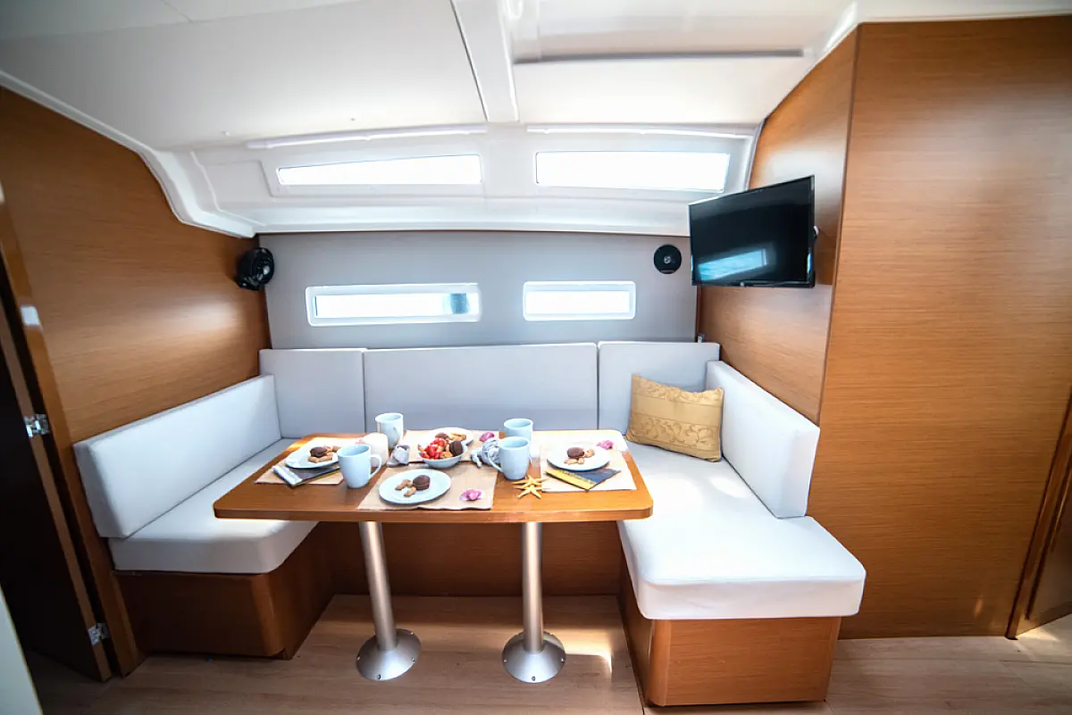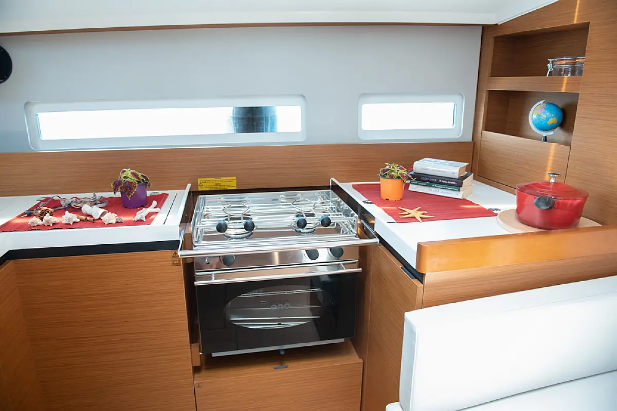 sončni kolektorji, Inverter, Izvenkrmni motor, Zvočniki v kokpitu, Bimini, Sprayhood, Blazine v kokpitu, Hladilnik