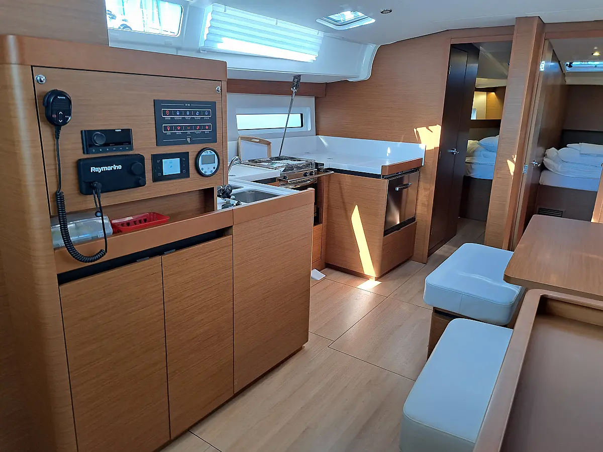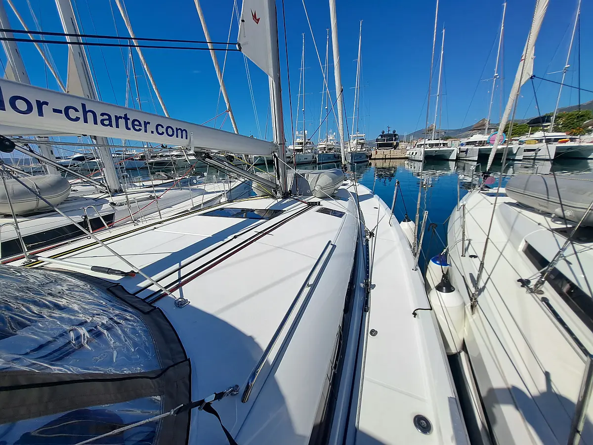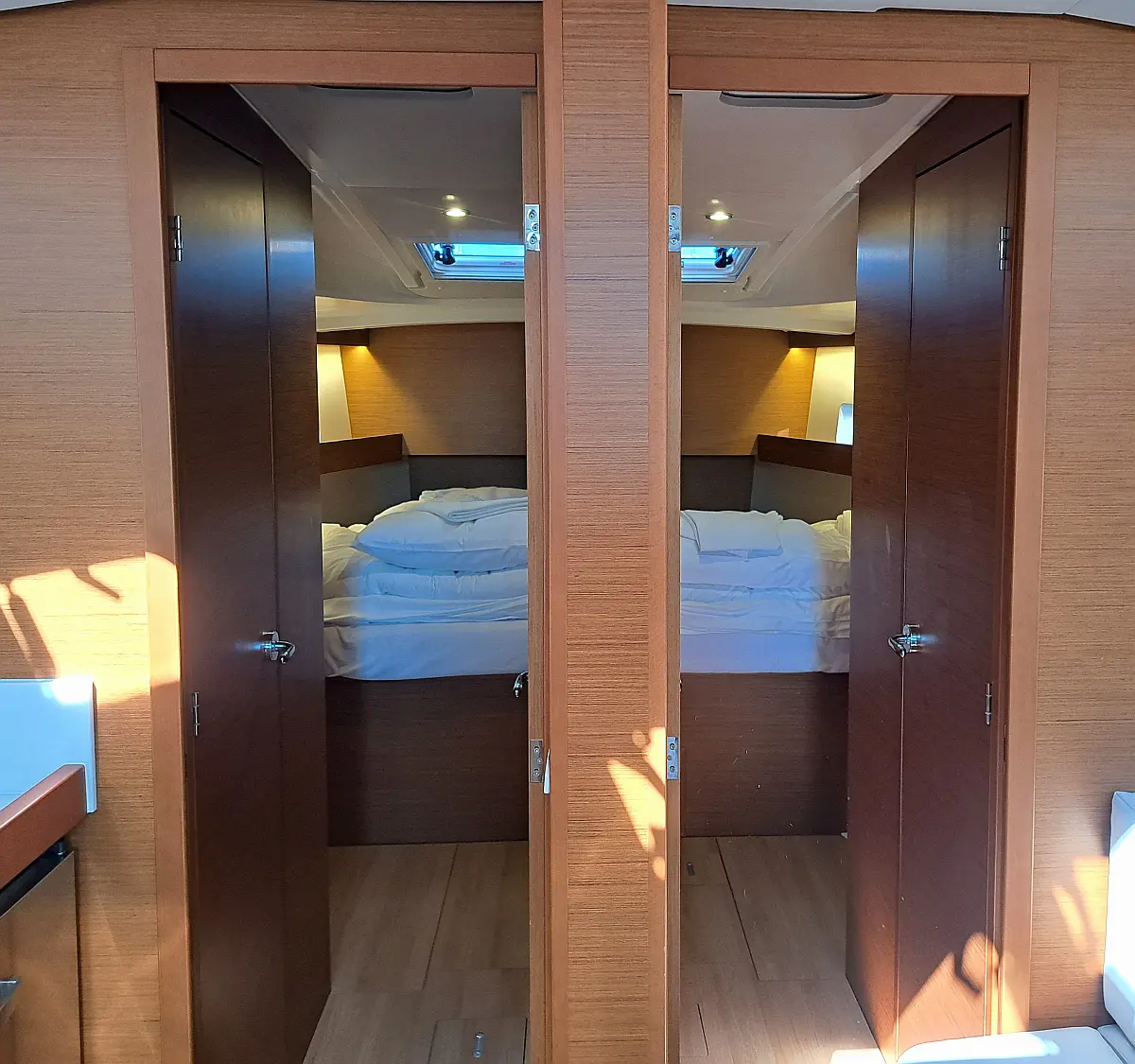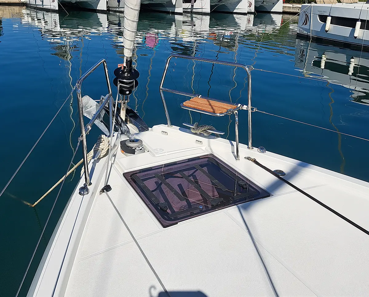 Električni vitli, Zvočniki v kokpitu, Klima, Hladilnik, Generator, Inverter, Izvenkrmni motor, Pomožni čoln, teak kokpit, Kopalna ploščad, Sprayhood, Bimini, Blazine v kokpitu