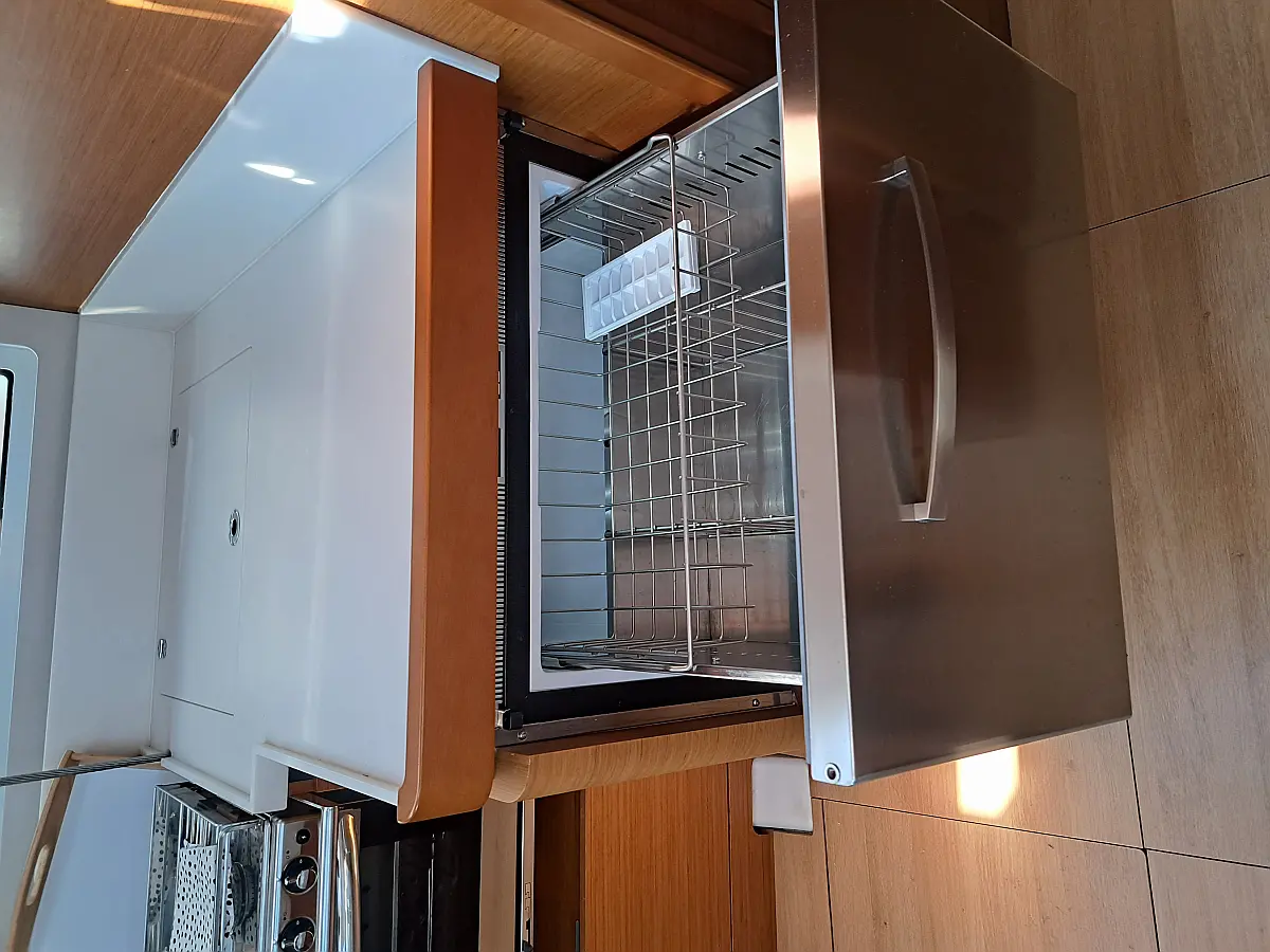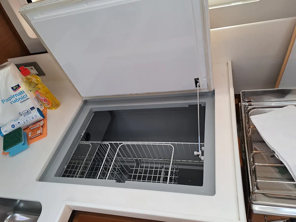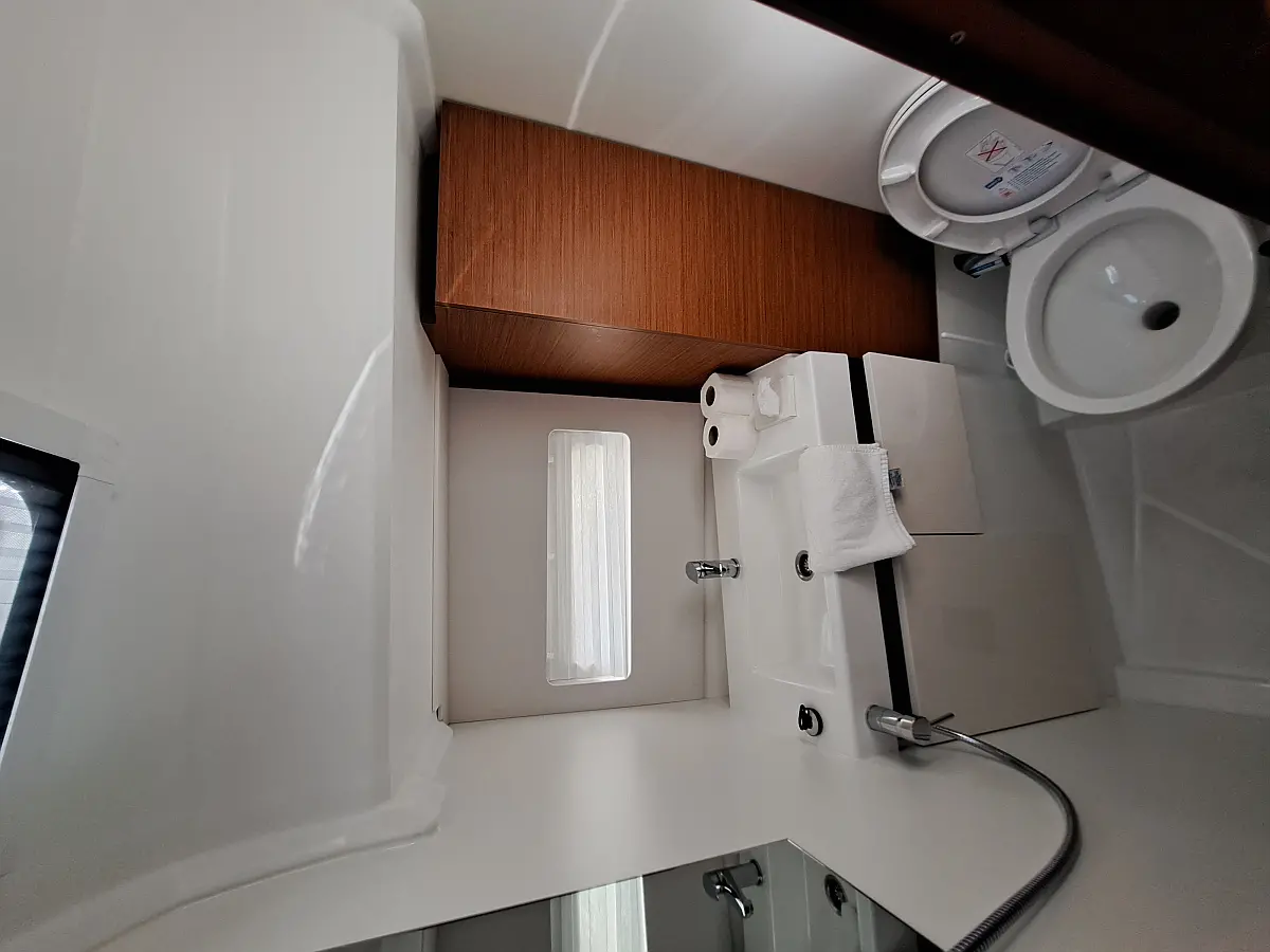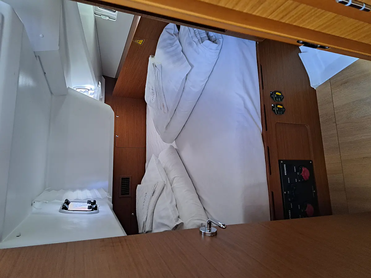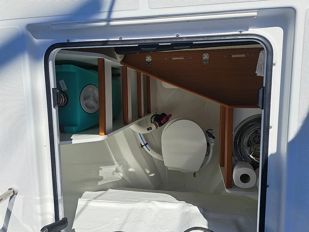 Električni vitli, Zvočniki v kokpitu, Klima, Hladilnik, Generator, Inverter, Izvenkrmni motor, Pomožni čoln, teak kokpit, Kopalna ploščad, Sprayhood, Bimini, Blazine v kokpitu